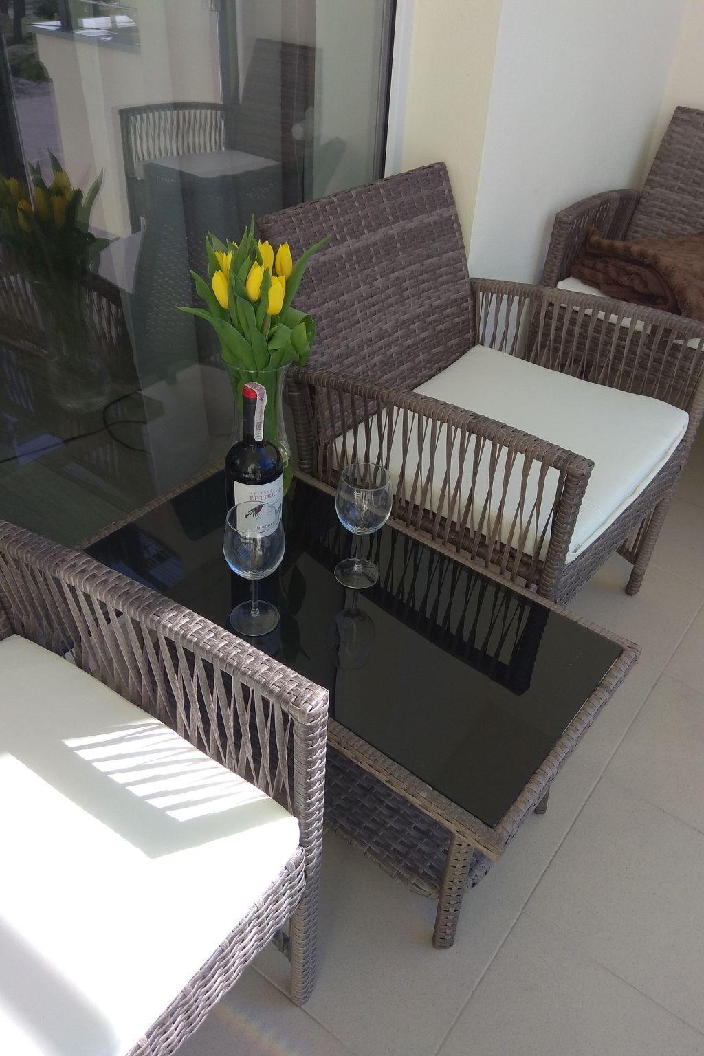 Garden furniture on the balcony.
