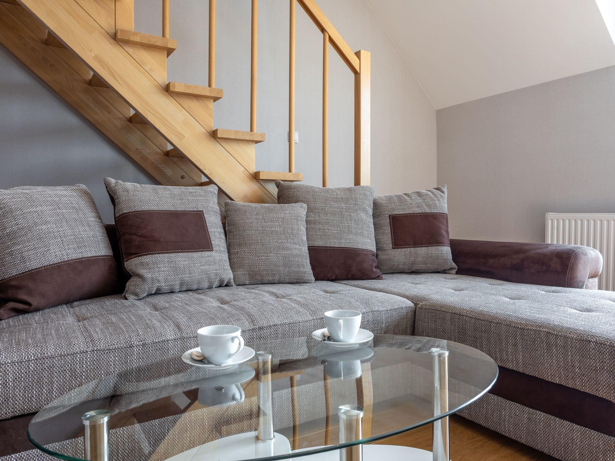 The flat "Bianco 49" is two-storey and offers space for four people. It consists of a living, dining and sleeping area, a fully equipped kitchenette and two bathrooms - its total area is 58 m2. Good facilities guarantee a pleasant stay, both for private and business purposes. The interior is extremely spacious, decorated in light colours, dominated by white, grey and beige. It is warmed by furniture and accessories made of light-coloured wood, with rustic elements that are reminiscent of the Scandinavian style and suggest a strong relationship with nature. Harmony and minimalism thus prevail in the flat and individual zones encourage different forms of leisure: from lazing in bed, to relaxing on the couch with a book or music in the headphones, to activities that create space, e.g. party games. An additional advantage is the balcony, which is a practical and functional extension of the flat and allows moments of relaxation in the fresh air. Therefore, the flat is ideal for large families, but also for friends who want to spend time together and have a private space to relax.