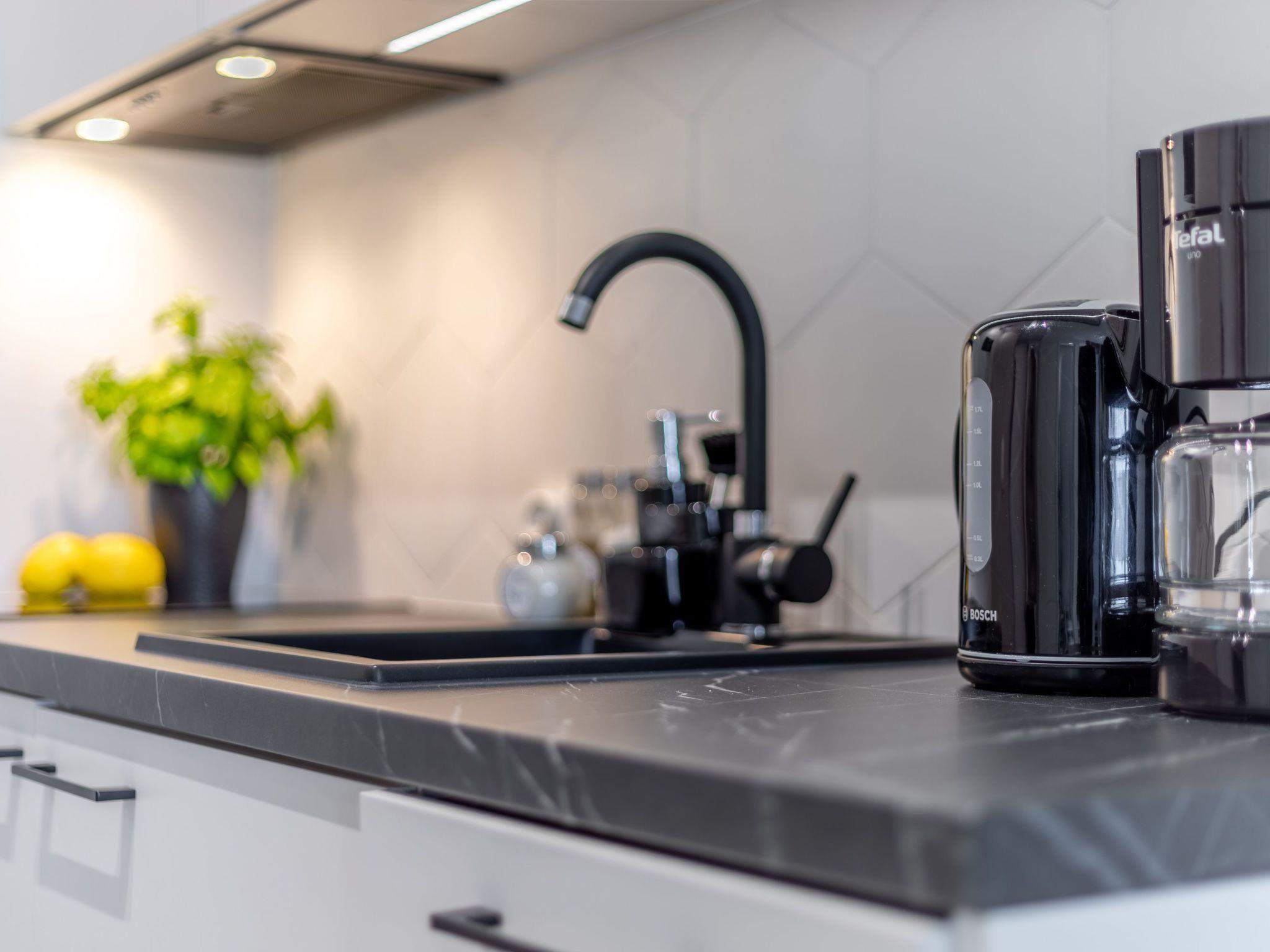 It is a flat with bedroom, living room with well-equipped kitchenette, dining area and modern bathroom with total area of 35 m2. The usable area is extended by the balcony, where you can spend pleasant moments with a cup of freshly brewed coffee or a glass of your favourite wine. Very comfortable double bed in the bedroom and sofa with sleeping function in the living area ensure a restful sleep. Comfortable furnishings guarantee a pleasant stay, both for private and business purposes. It is a very modern interior designed for the comfort of residents, where functionality plays an extraordinary role, but also a cool, sky-broken grey, which not only emphasises the unique maritime atmosphere, but also indirectly refers to minimalist style, which offers a pleasant rest after a whole day in the sun. Guests also have a private outdoor car park at their disposal - for a fee - which significantly increases the comfort of travelling and can be particularly desirable for families with children.