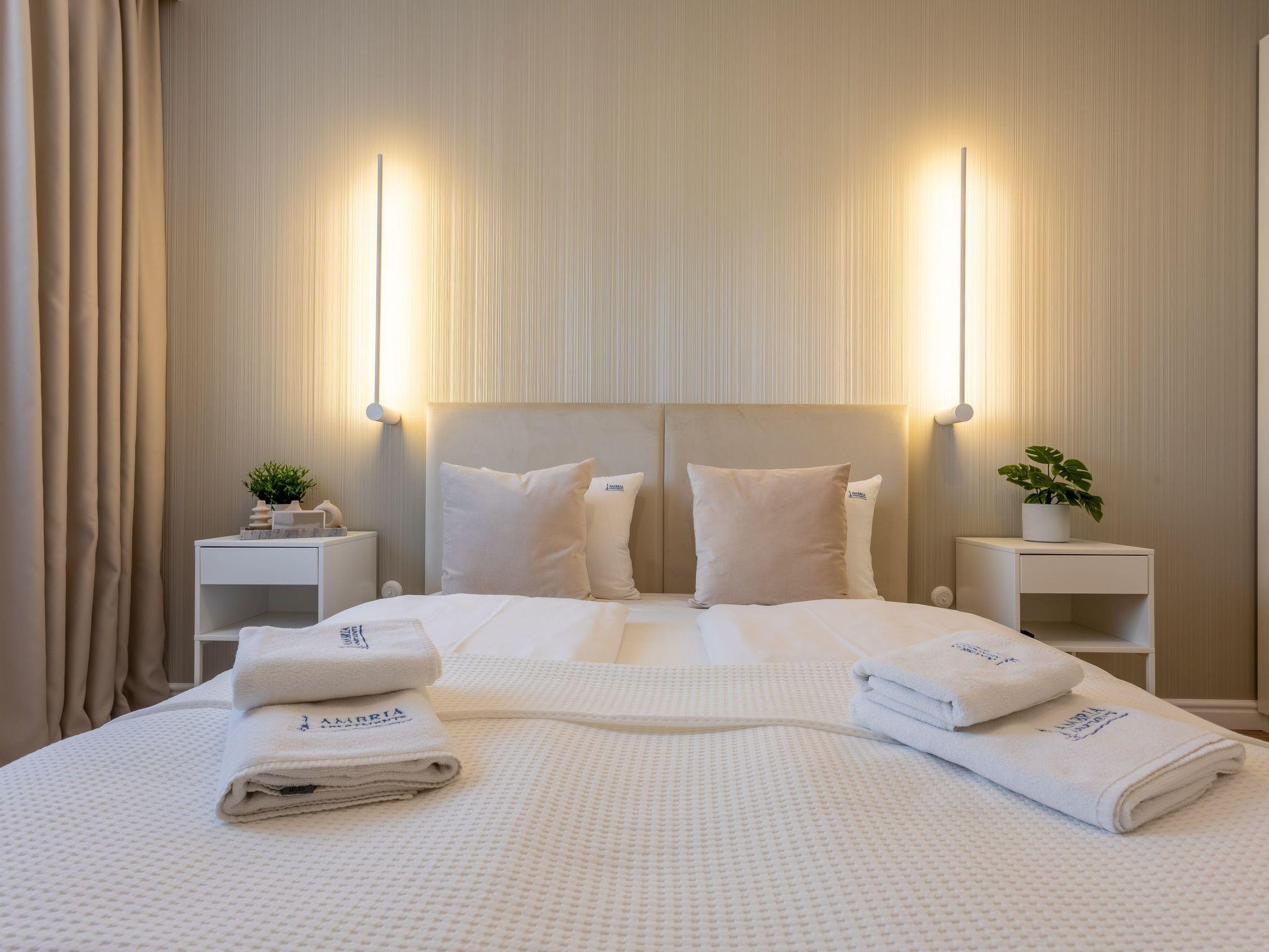 The flat is located in the closed and guarded complex Platan, which was built in 2010 in the recreational area of Swinoujscie and is surrounded by a park with planted plane trees, from which the name of the property comes. Car drivers can use an additional option: Underground car park. In the immediate vicinity of the Platan Manor complex is the largest outdoor playground in Swinoujscie, which is loved by children - a perfect place for family recreation; and in the immediate vicinity - a playroom for children with a café for parents. There are shops nearby, such as Biedronka or LIDL, as well as a rich gastronomic offer of numerous bars and restaurants. In addition, the flat is only 700 metres from the Polish-German border crossing and the nearby UBB train station allows you to move freely towards Germany.