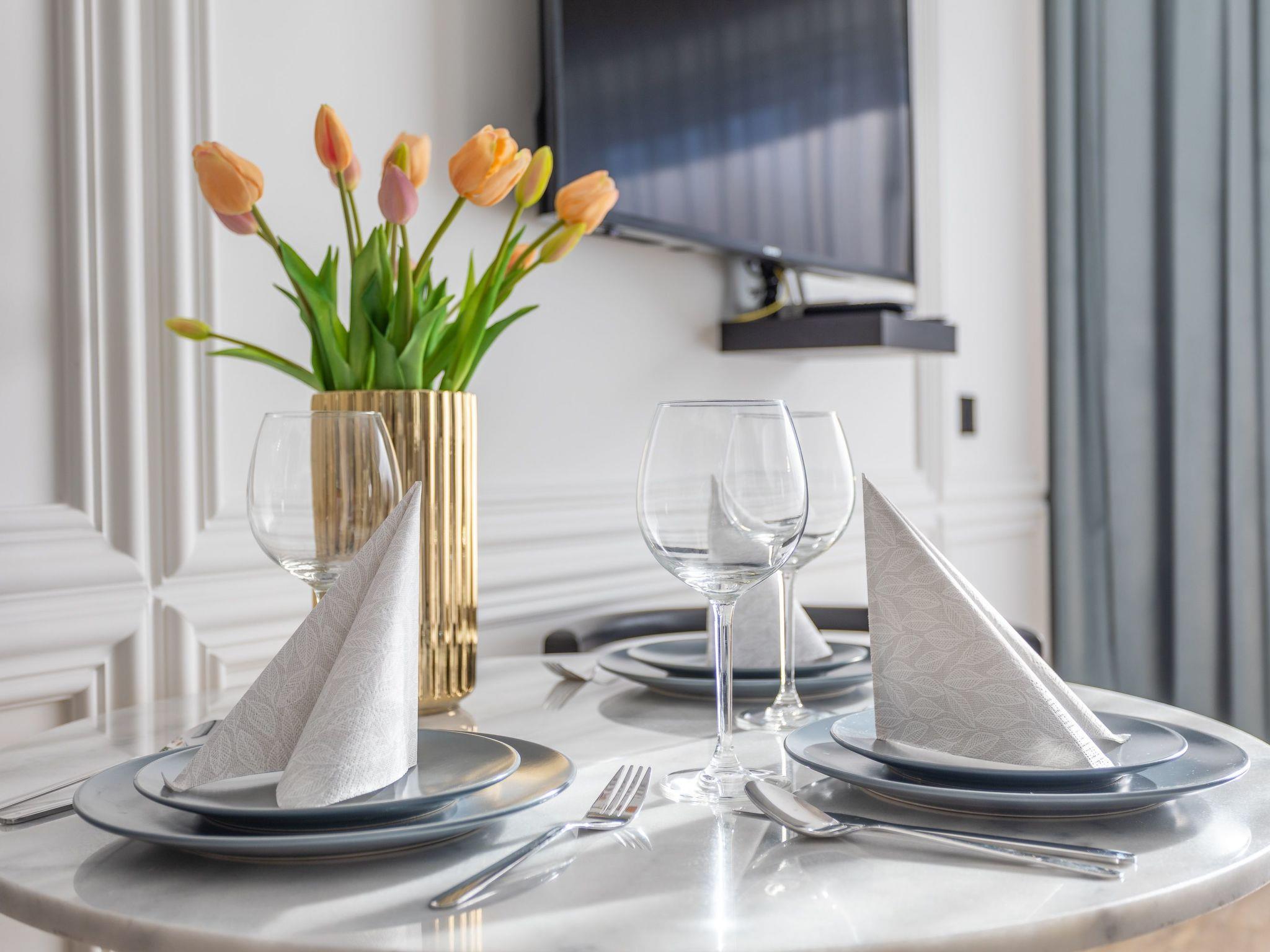 Good equipment guarantees a pleasant stay, both for private and business purposes. The interior is charming, tasteful and cosy: full of bright, warm tones that, together with modern furniture and elegant accessories, create an exquisite yet minimalist whole where you can rest and actively indulge your interests and passions. A beautiful decoration on the wall, just behind the headboard, emphasises the charm of this place and ... ignites the senses.