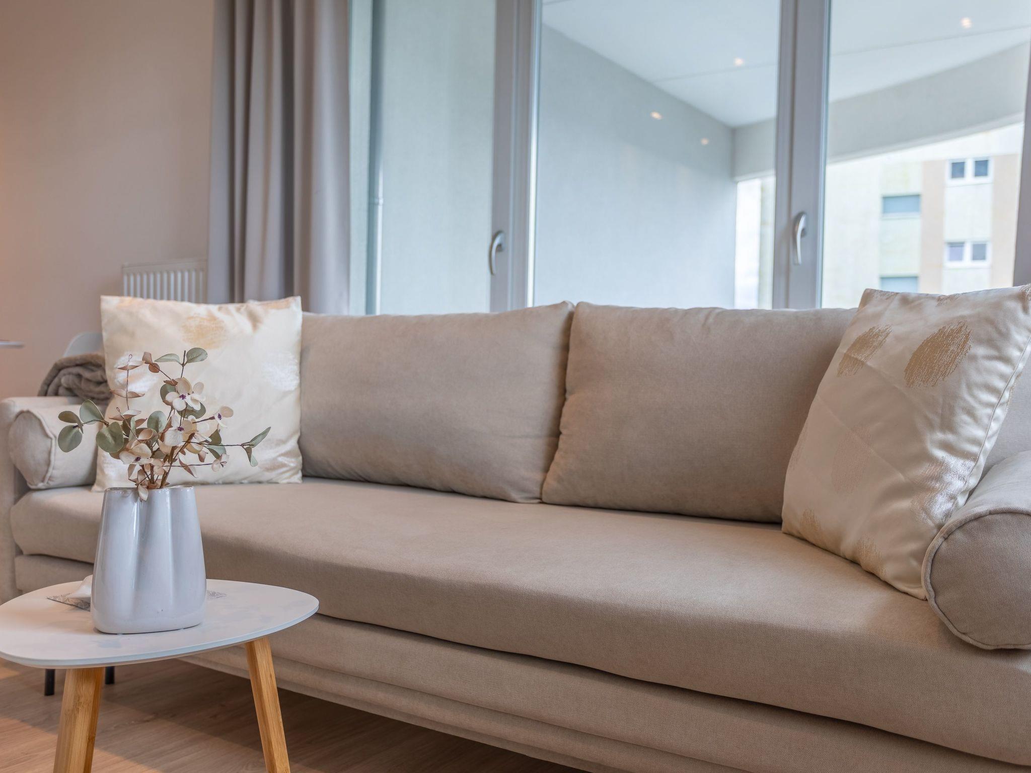 It is a studio flat with a well-equipped kitchenette and a modern bathroom with a total area of 33 m2 and a terrace where you can enjoy the moments between successive attractions. The interior is dominated by muted neutral colours - white, grey and ecru, enhanced by natural light and simple shapes that bring the mood of order and harmony as well as sublime elegance. In addition, a complete interior not only increases the functionality of the space, but also affects the comfort and true pleasure of use. It is an ideal place for people who appreciate elegance in an interior where they want to perfectly relax and return to.