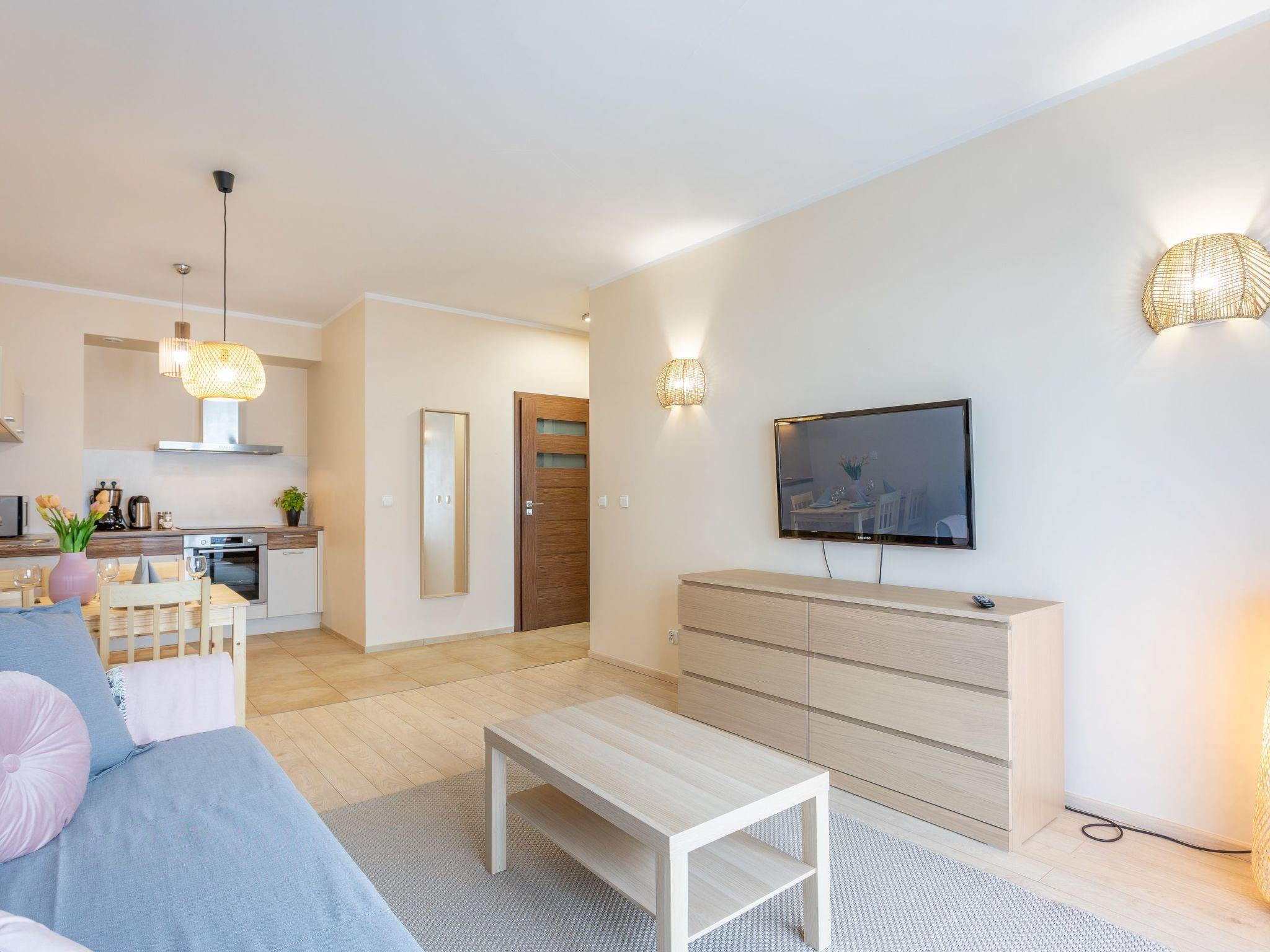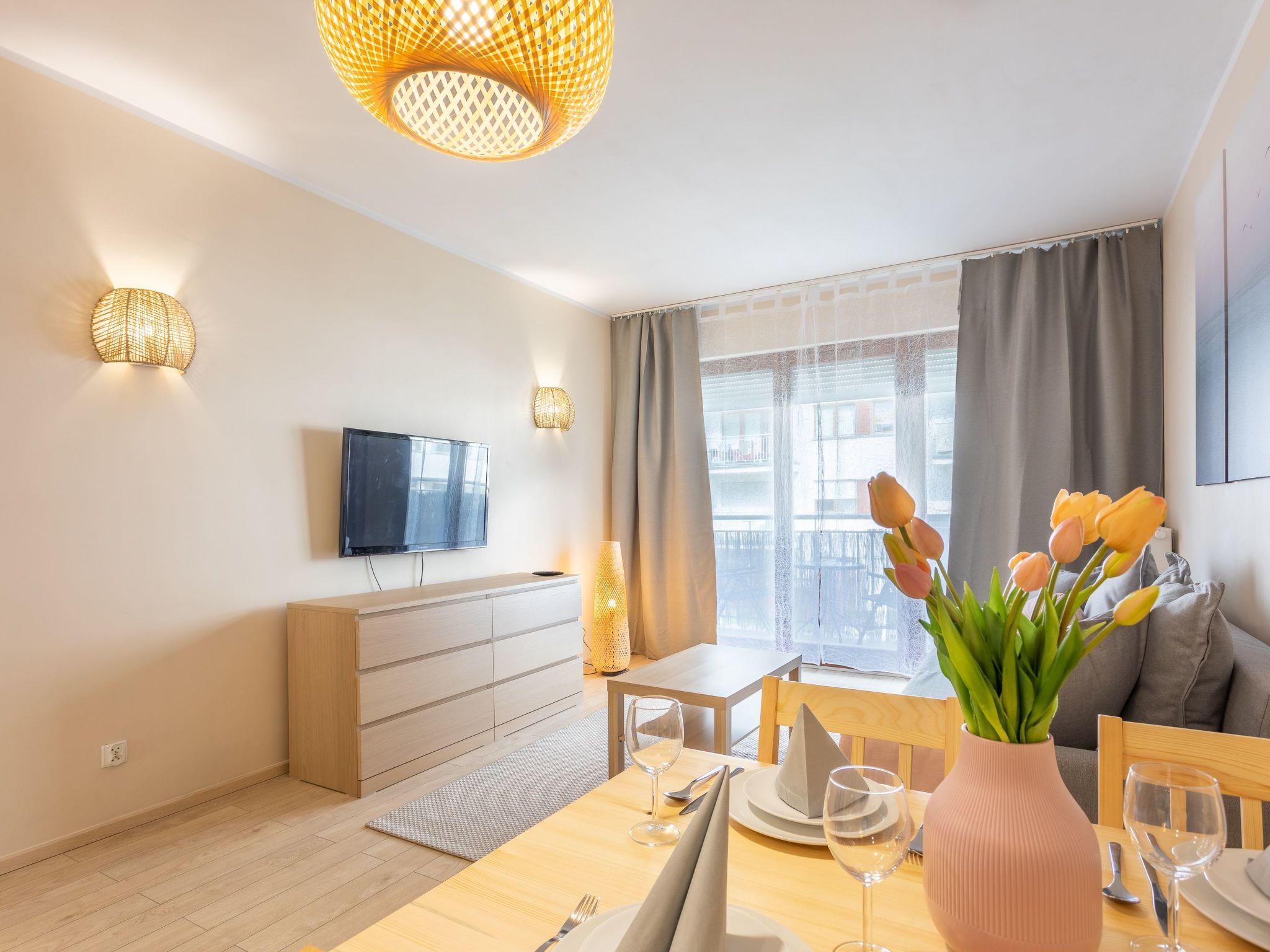 The "Sand" flat in Swinoujscie is located in a quiet neighbourhood in a modern building that was completed in 2010 and is part of the "Platan Complex" complex. In the immediate vicinity of the "Platan Complex" there is a fitness studio, a Thai massage studio and a bicycle hire centre. There are shops such as Biedronka supermarket and LIDL nearby, as well as a wide range of bars and restaurants. The flat is also just 700 metres from the German-Polish border crossing. The nearby UBB train station also makes it easy for you to travel to Germany.
