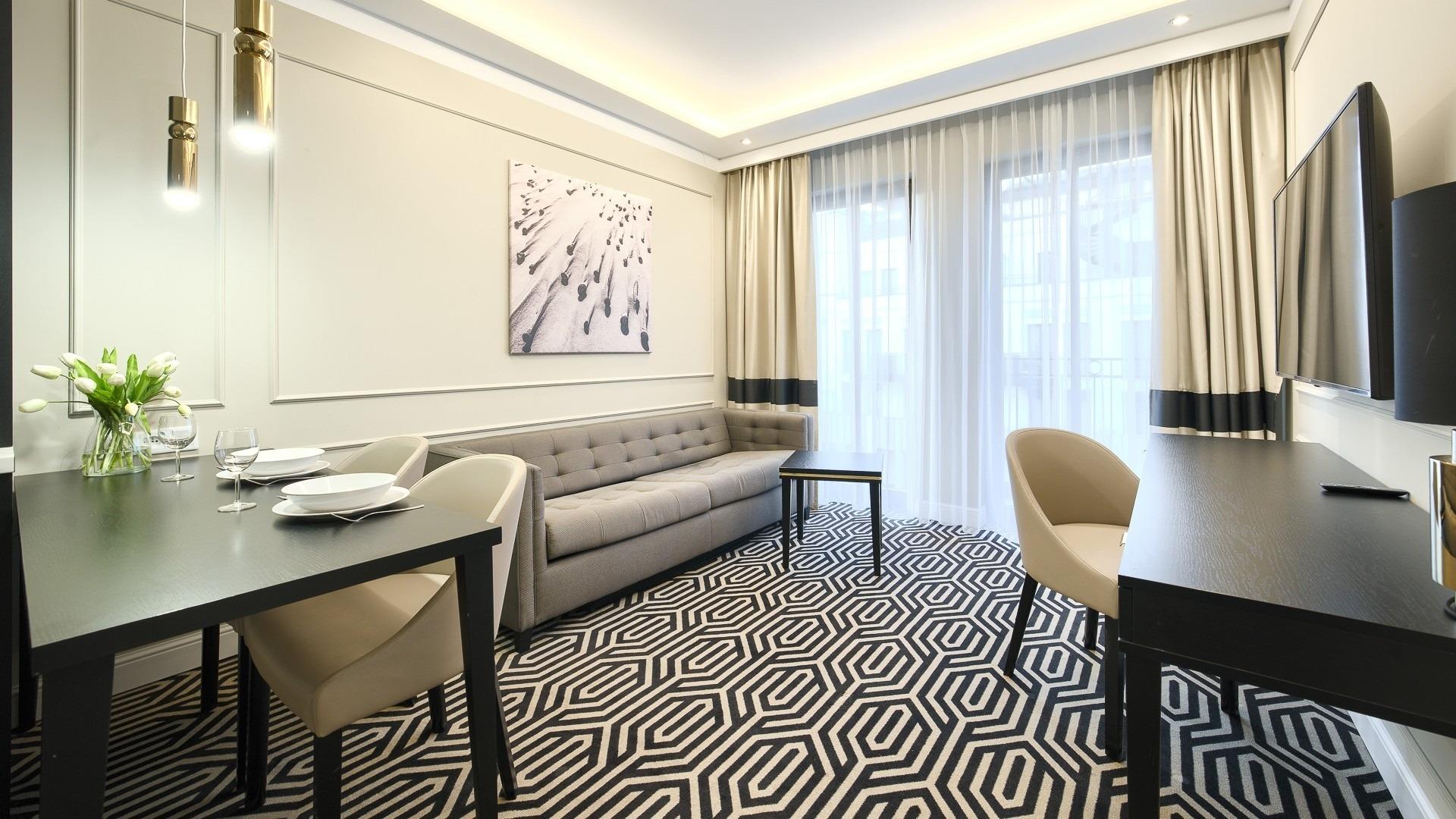 • Haustiere sind in der ausgewählten Wohnung erlaubt. Die Kosten für den Aufenthalt mit einem Haustier betragen 40 PLN pro Tag.