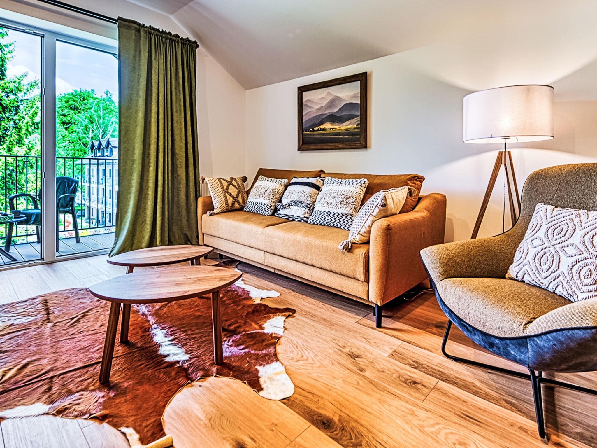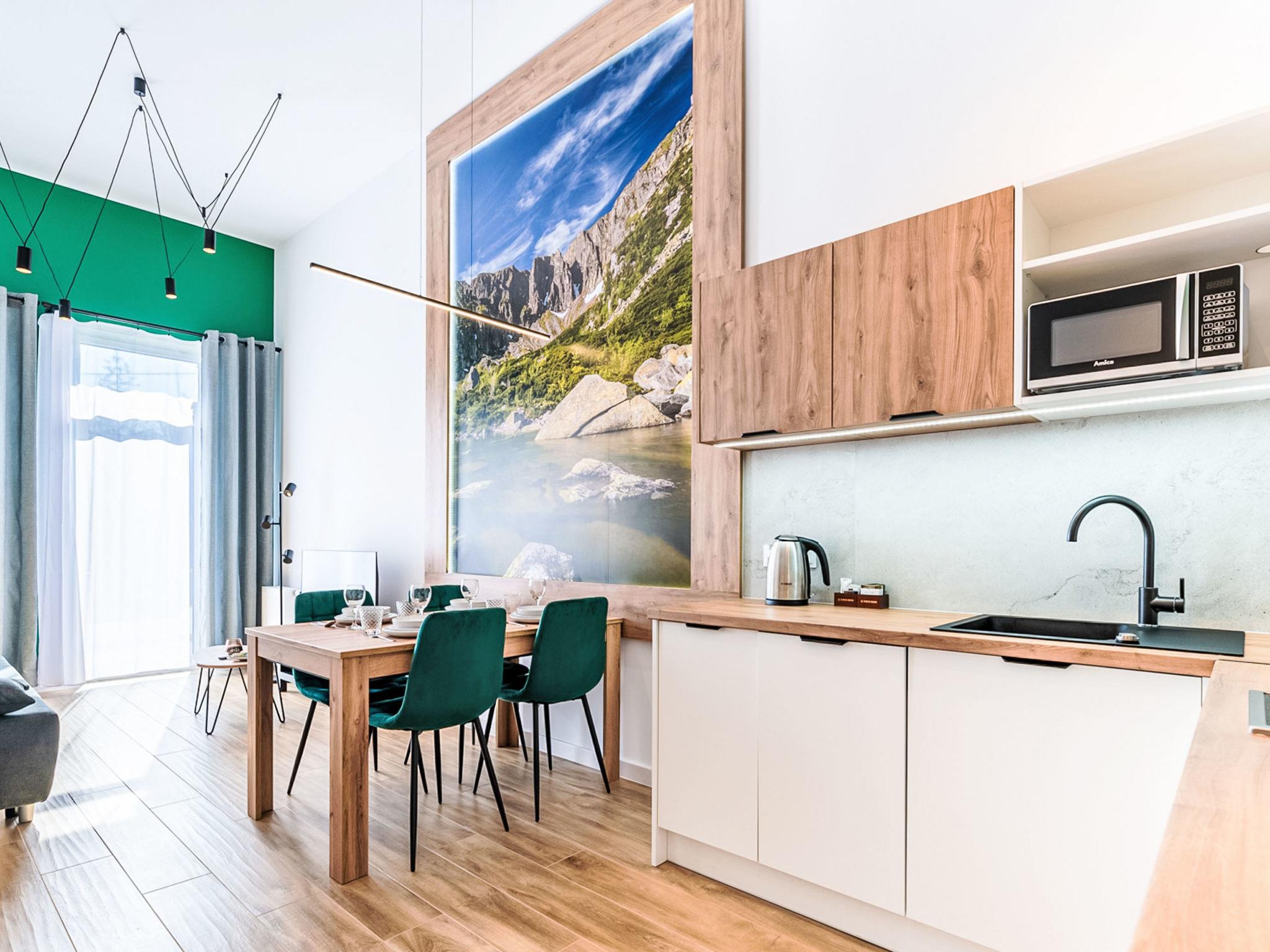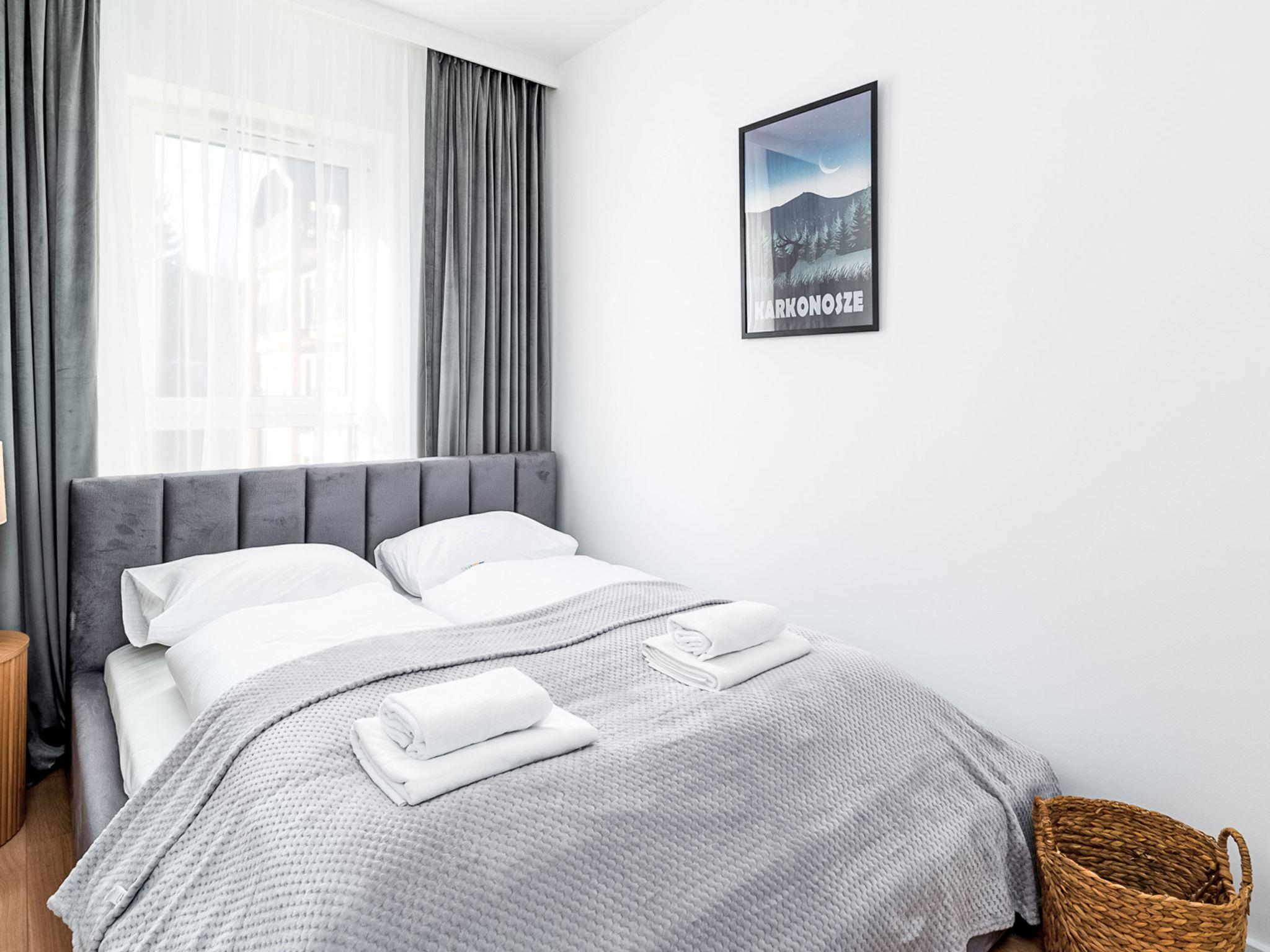 Modern, cosy apartment block "Ostoja Parku Narodowego". In the resort, in a quiet, elevated position. In the house: WiFi, sauna, relaxation room, playroom, central heating system, burglar alarm system. Grocery, restaurant 800 m, bus stop 1.3 km. Ski lift 1.5 km. Nearby attractions: Wodospad Szklarski 2.5 km, Wodospad Kamienczyk 6.5 km, Sniezne Kotly 7 km. Please note: the photograph shows a typical example. Additional accommodations can be booked. The apartment may be on the ground floor, first floor or second floor. Infant accepted over the maximum number of people - up to 3 years of age.