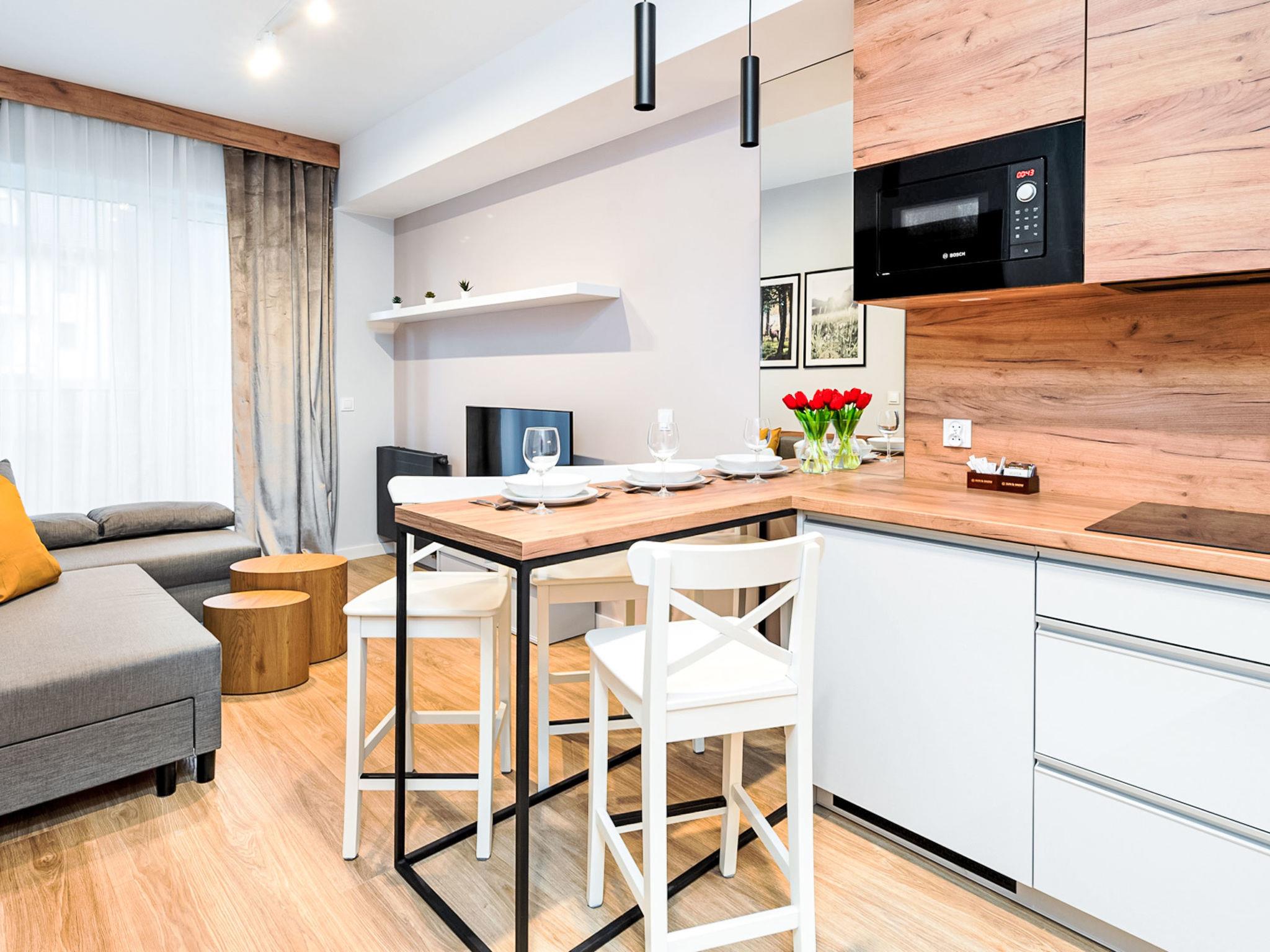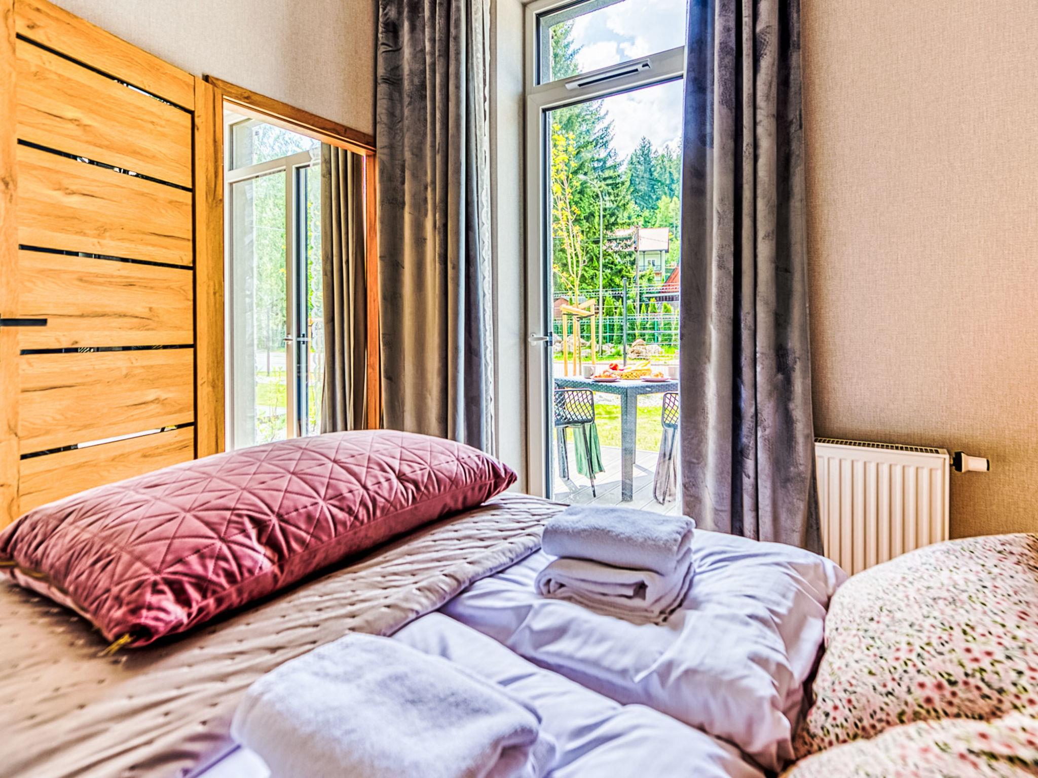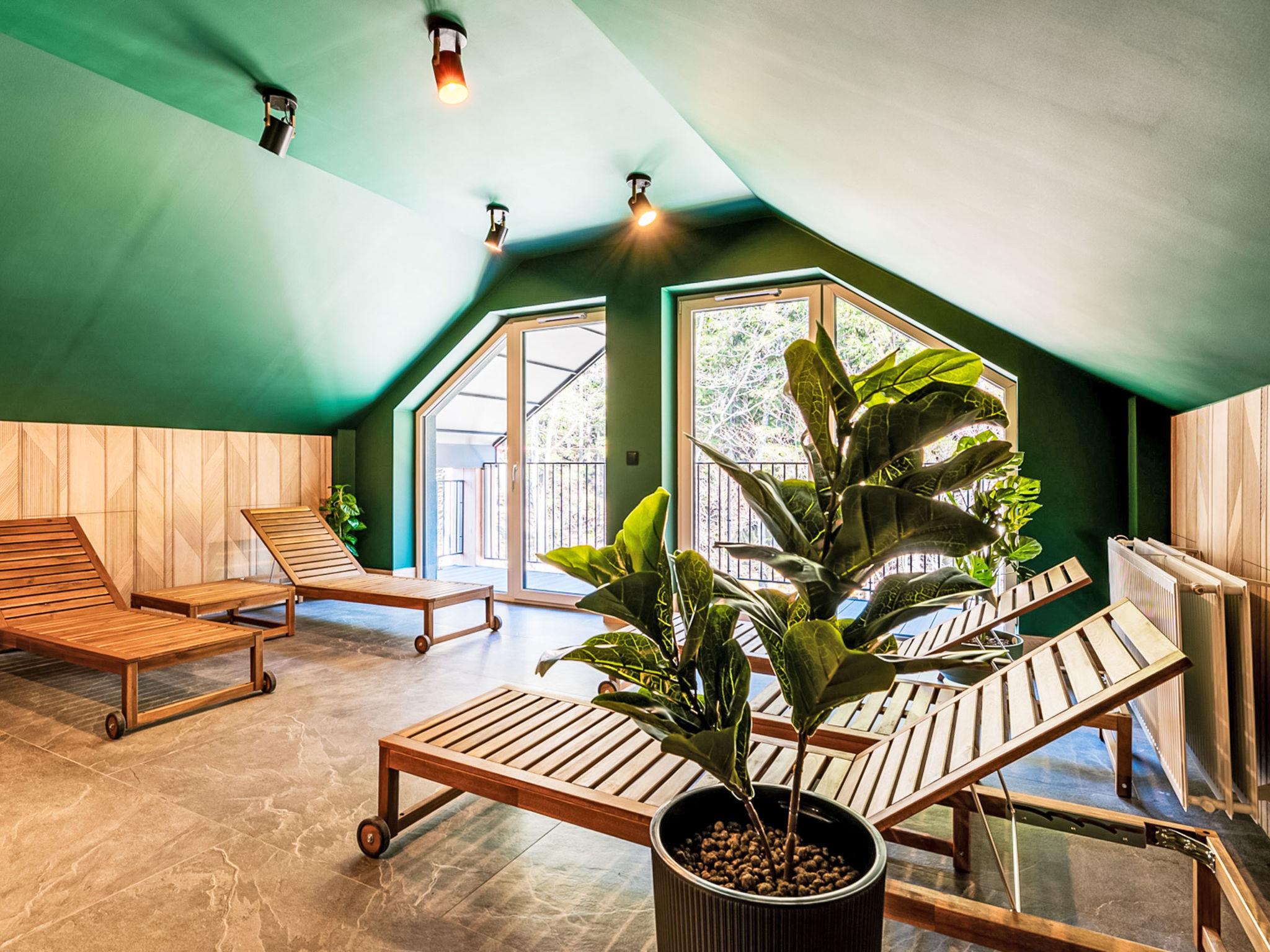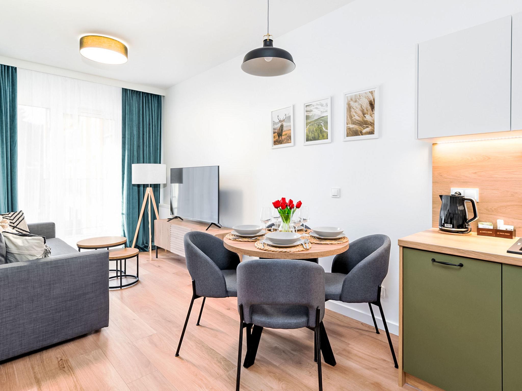 Modern, cosy apartment block "Ostoja Parku Narodowego". In the resort, in a quiet, elevated position. In the house: WiFi, sauna, relaxation room, playroom, central heating system, burglar alarm system. Grocery, restaurant 800 m, bus stop 1.3 km. Ski lift 1.5 km. Nearby attractions: Wodospad Szklarski 2.5 km, Wodospad Kamienczyk 6.5 km, Sniezne Kotly 7 km. Please note: the photograph shows a typical example. Additional accommodations can be booked. The apartment may be on the ground floor, first floor or second floor. Infant accepted over the maximum number of people - up to 3 years of age.