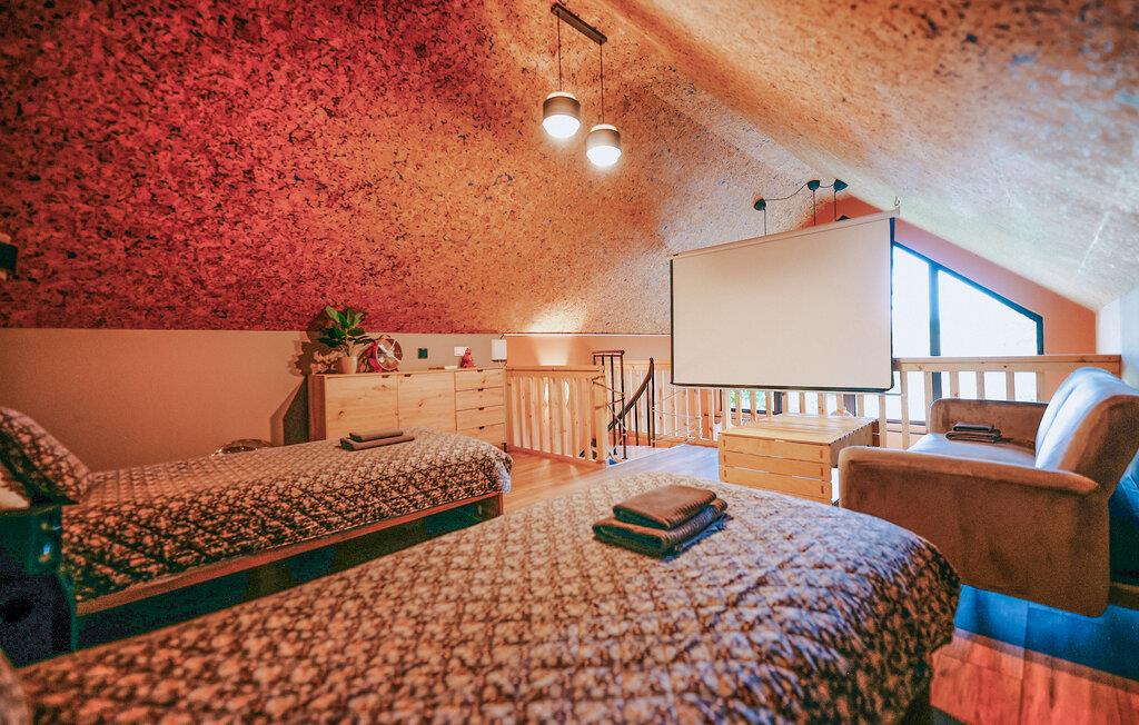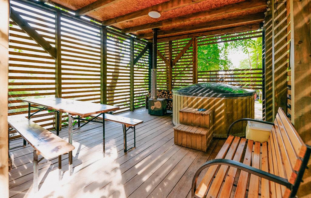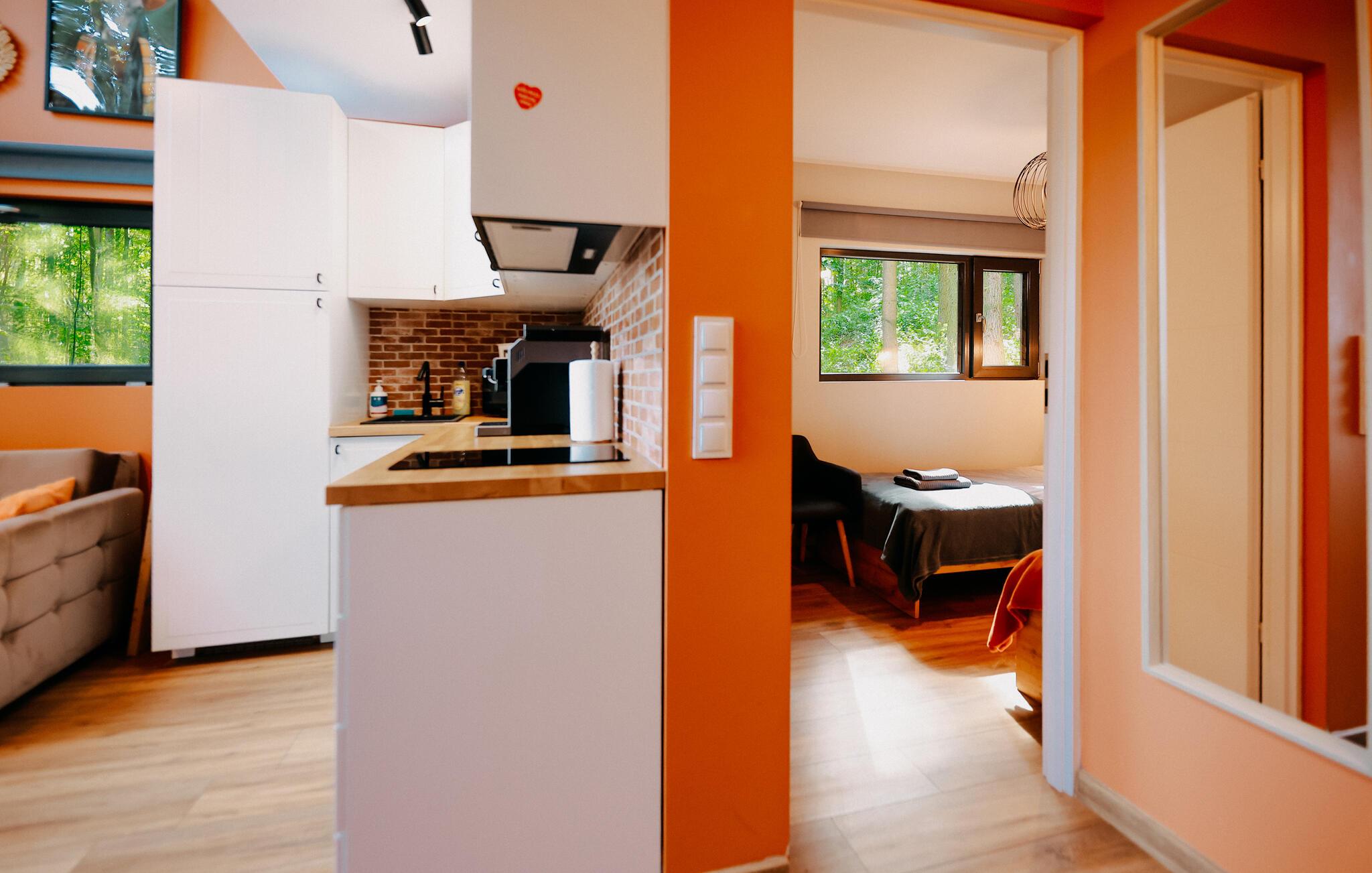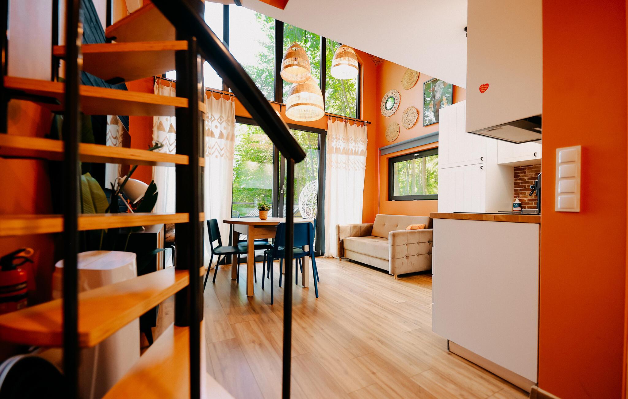 Beliggende i idylliske, skovklædte omgivelser byder dette komfortable og velindrettede feriehus jer velkommen med et lyst og moderne interiør. Glæd jer til hyggelige og luksuriøse dage med udsigt over det omkringliggende grønt, og læg hverdagen bag jer, mens I tilbereder lækre retter og nyder hyggelige måltider i en behagelig atmosfære.