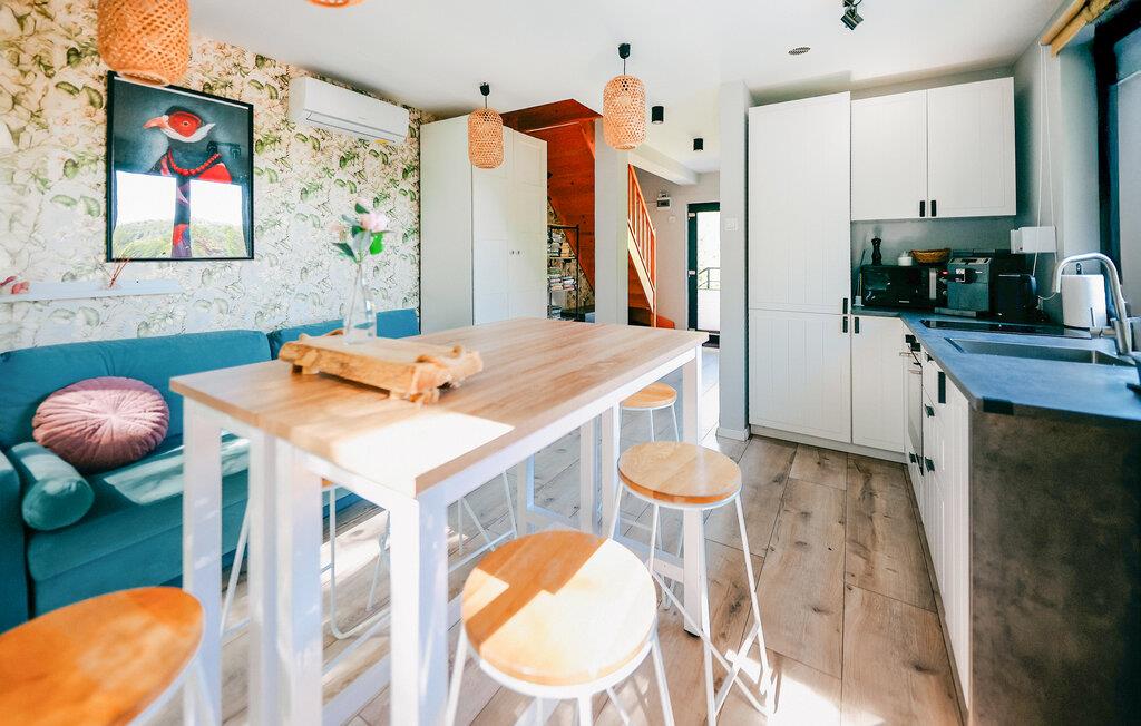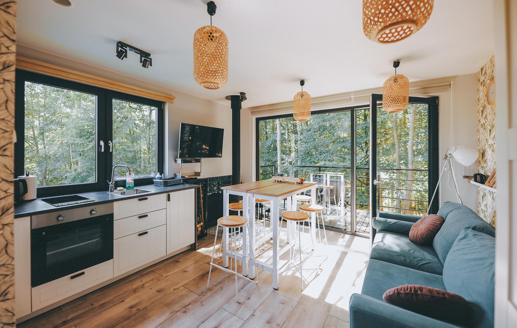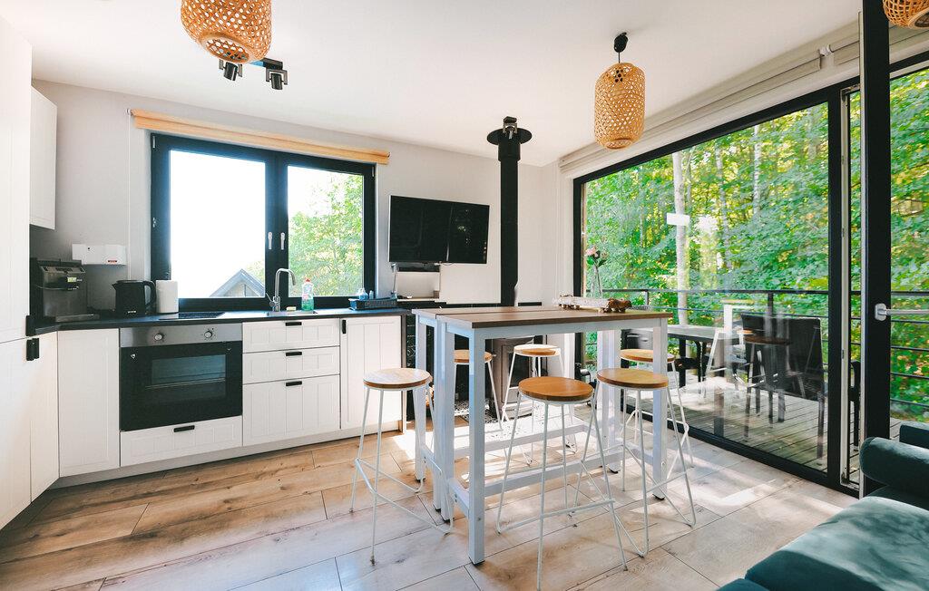 Beliggende i idylliske, skovklædte omgivelser byder dette komfortable og velindrettede feriehus jer velkommen med et lyst og moderne interiør. Glæd jer til hyggelige og luksuriøse dage med udsigt over det omkringliggende grønt, og læg hverdagen bag jer, mens I tilbereder lækre retter og nyder hyggelige måltider i en behagelig atmosfære.