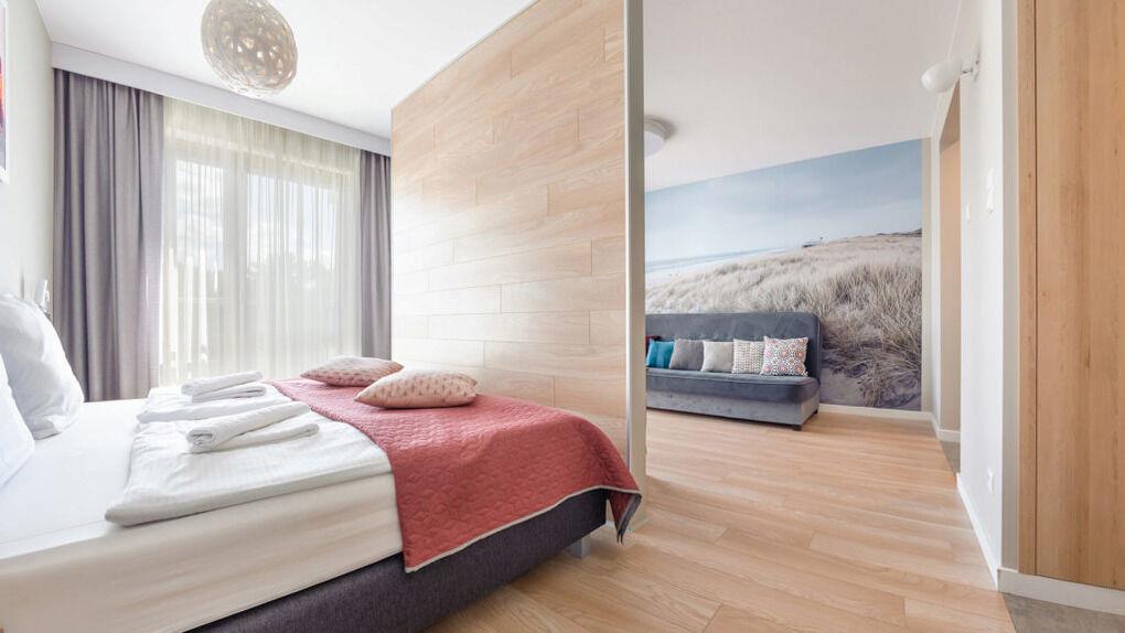 Zu den gewählten Apartments darf man mit dem Hund ankommen. Die zusätzlichen Kosten des Aufenthalts mit einem vierbeinigen Freund betragen 100 PLN (Einzelgebühr). Die Gäste, die den Aufenthalt mit dem Hund planen, bitten wir um eine frühere Kontaktaufnahme mit unserem Service im lokalen Büro.