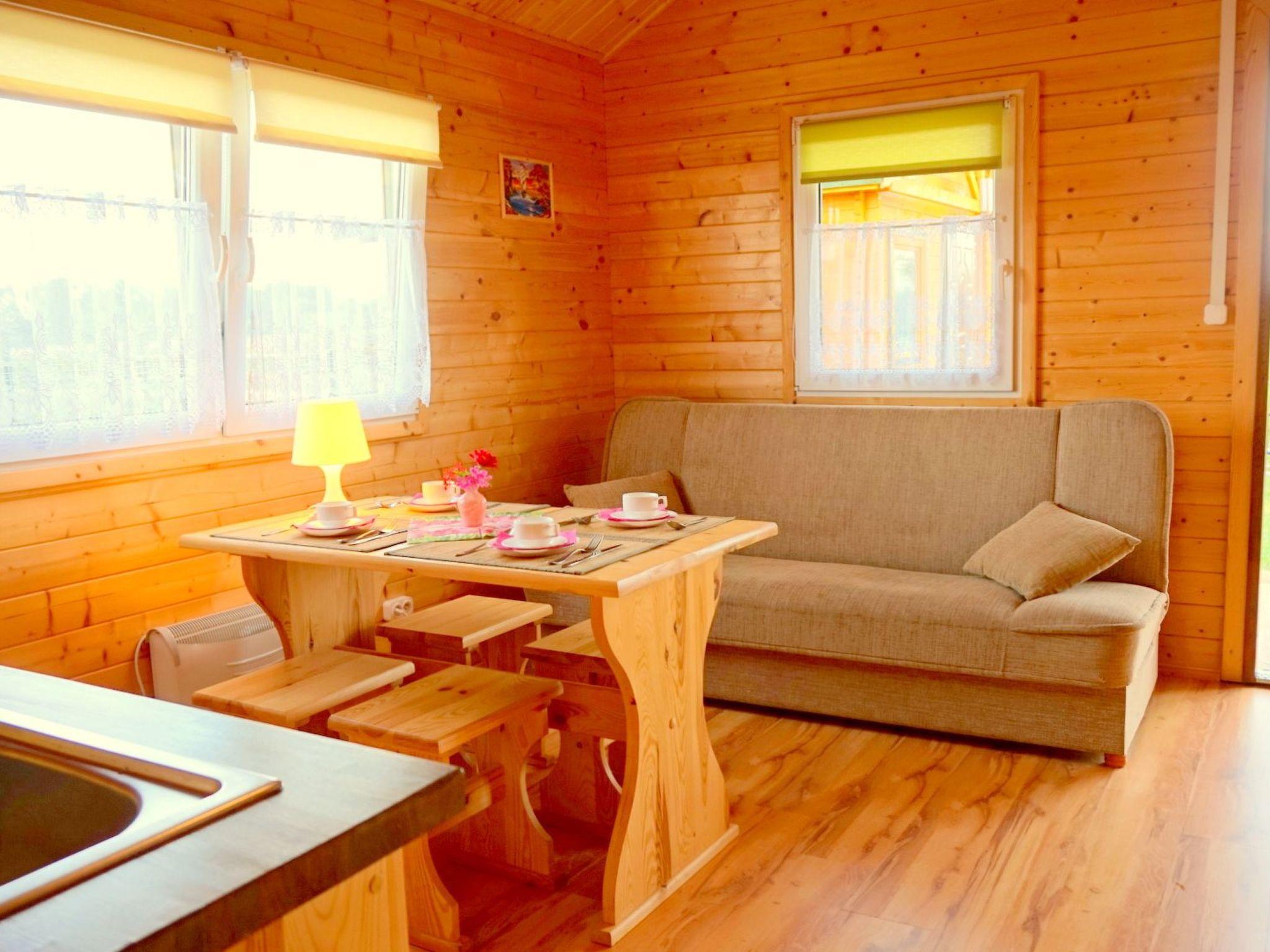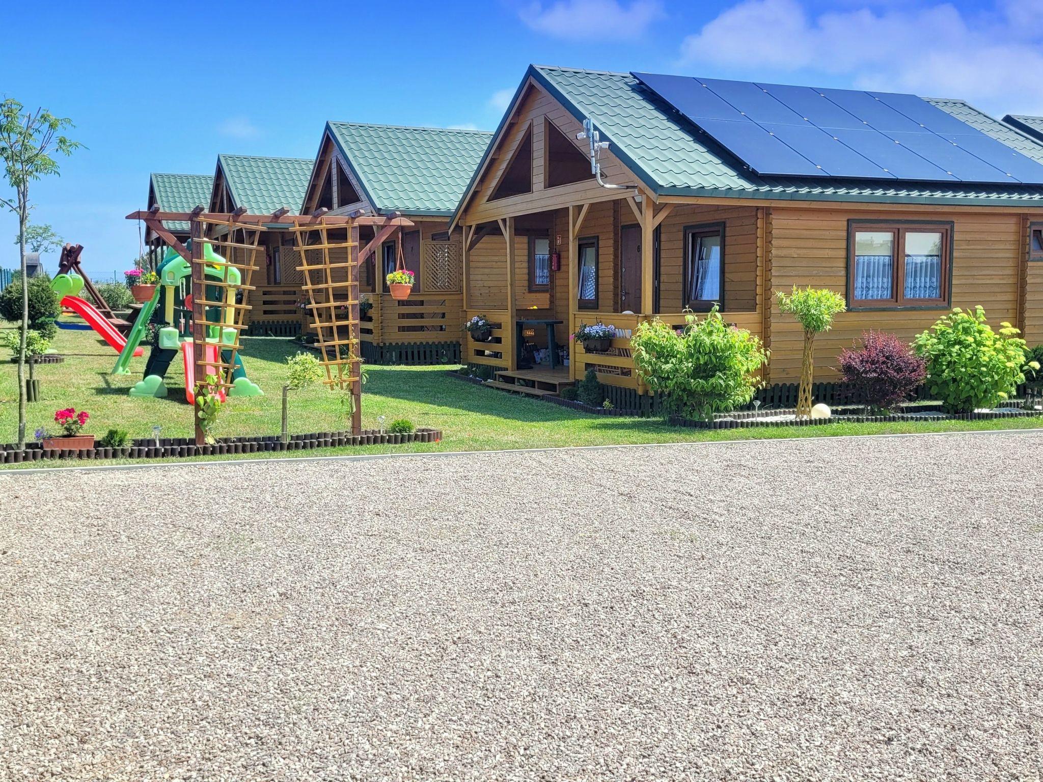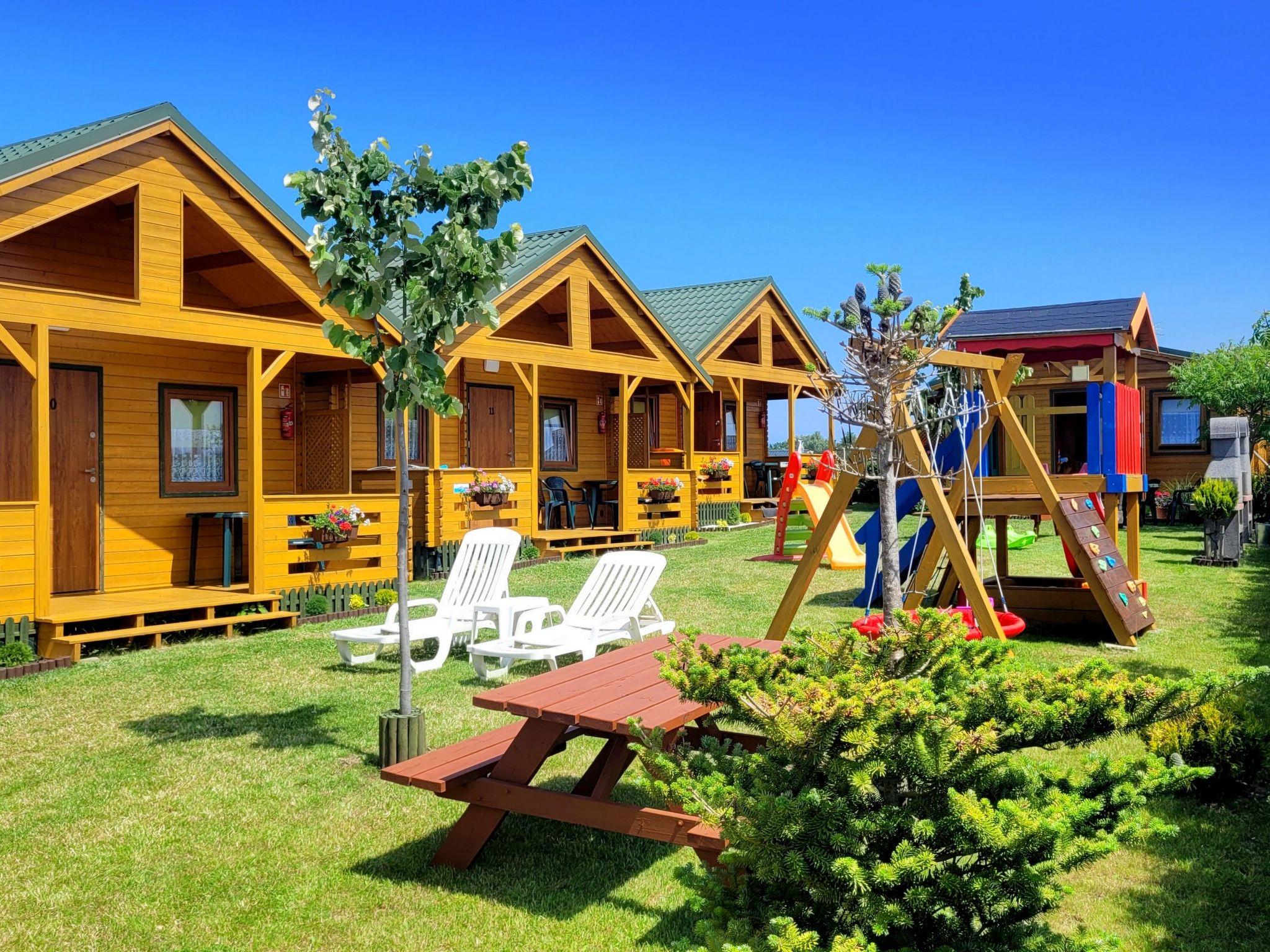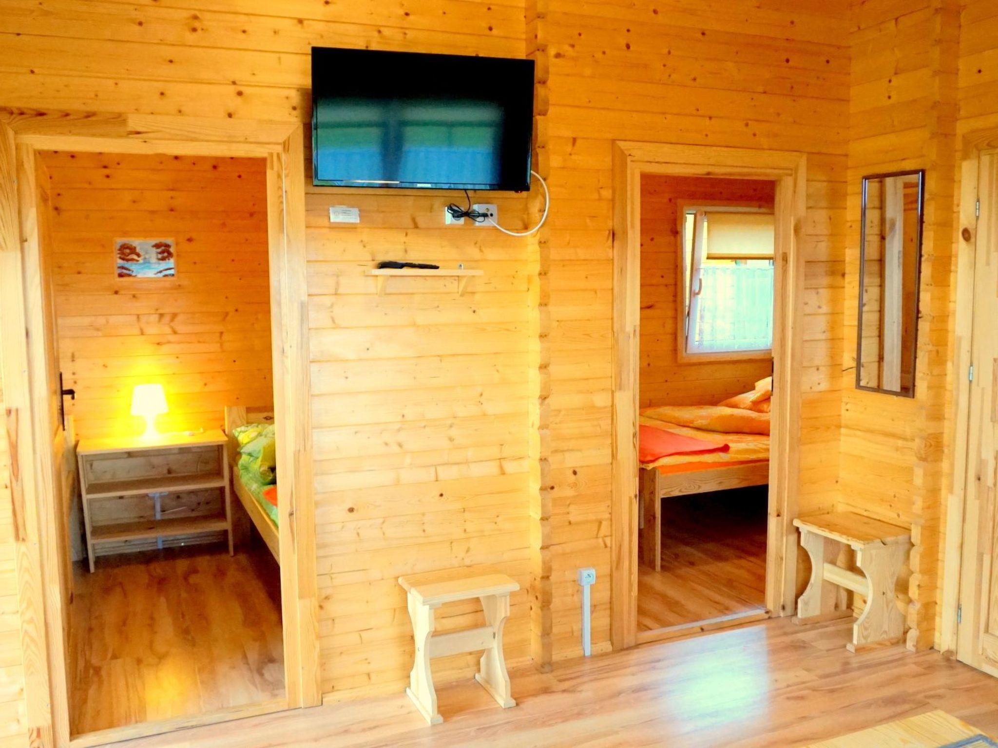 We offer you comfortable, insulated wooden cottages, built in 2015, with an area of 45 m2. We have 8 cottages in our small complex. Each house consists of 3 rooms + bathroom and terrace.- Living room with double sofa bed. Table with 4 chairs, LED32 TV. For cold days there is a wall-mounted electric heater in the living room.- Kitchenette in the living room with basic equipment including coffee and dinner service, glasses, cutlery, pots, cutting boards, pans, 2-burner electric kettle and fridge with small freezer. Basic essential kitchen equipment.- Two bedrooms, a larger one with a double bed (140 cm wide) and a smaller one with two single beds (2 x 80 cm wide). Bed linen available in the bedroom.- Bathroom with shower, sink, toilet. (Bath and beach towels are not provided).- Terrace. Each cottage has a large, cosy, covered terrace (1.7 x 6 m) with table and 4 chairs, beach equipment and clothes dryer.