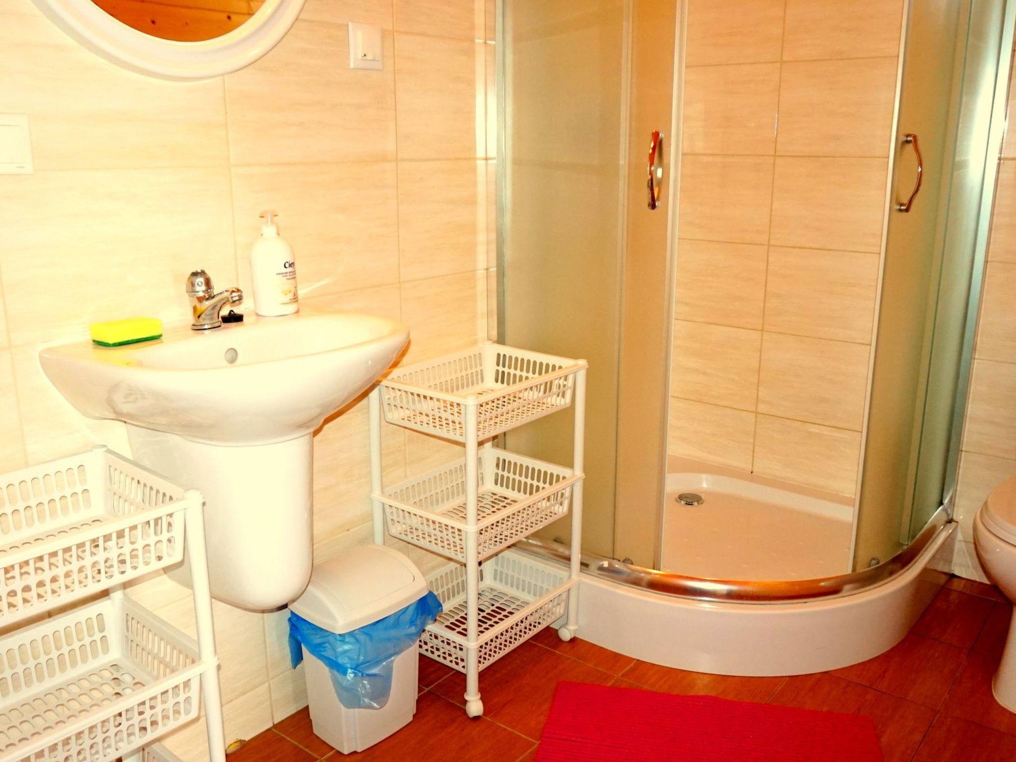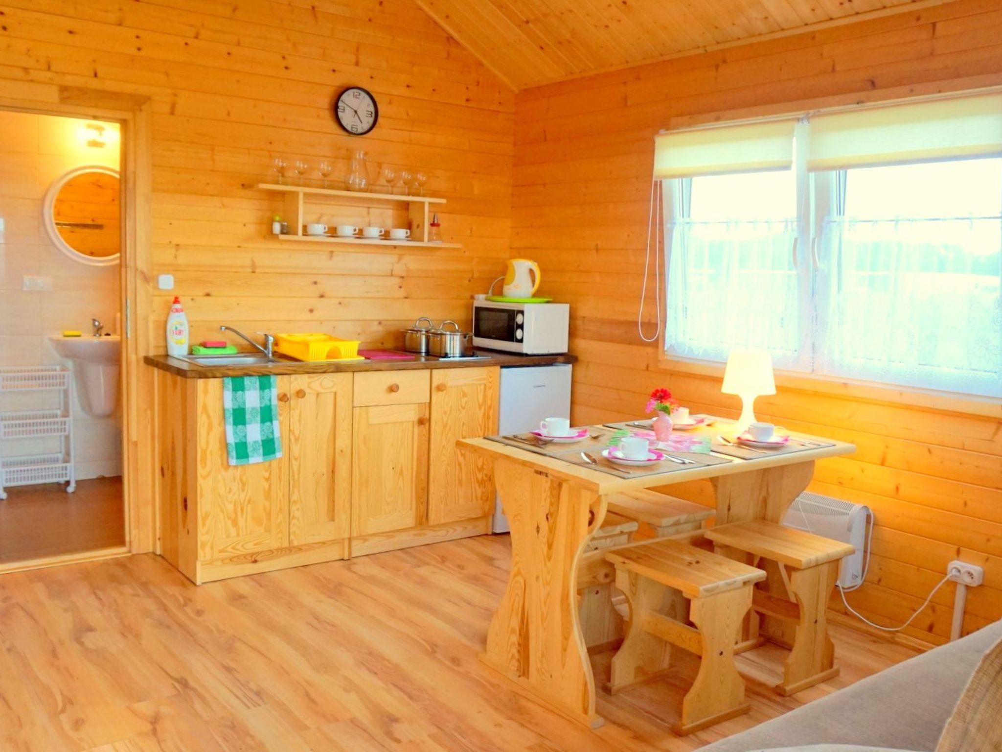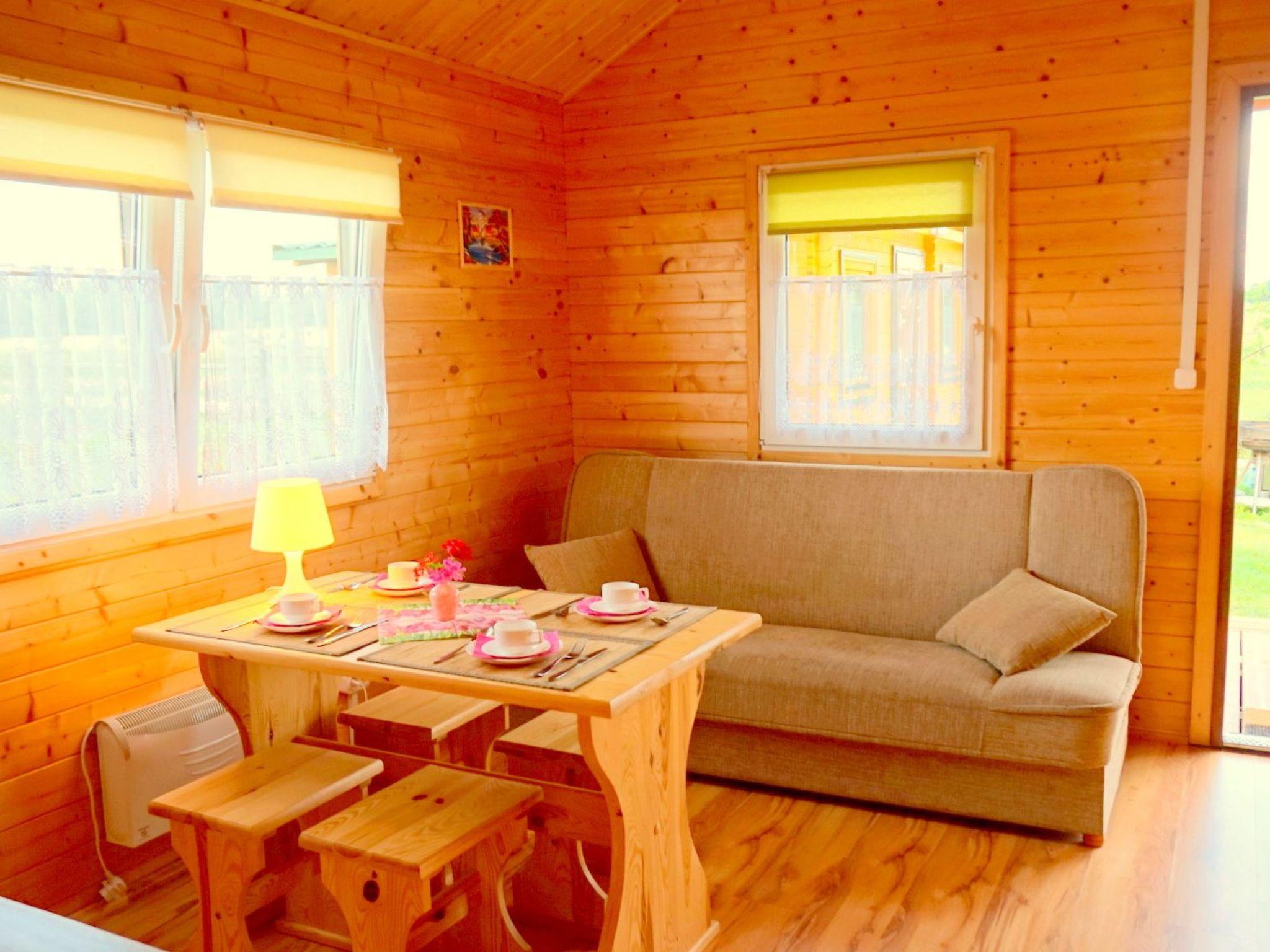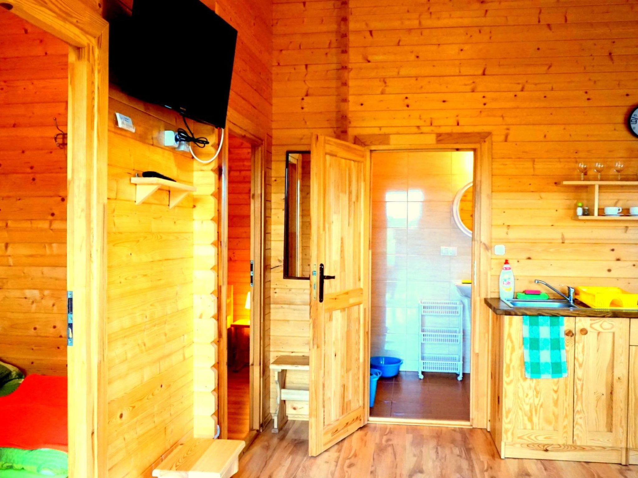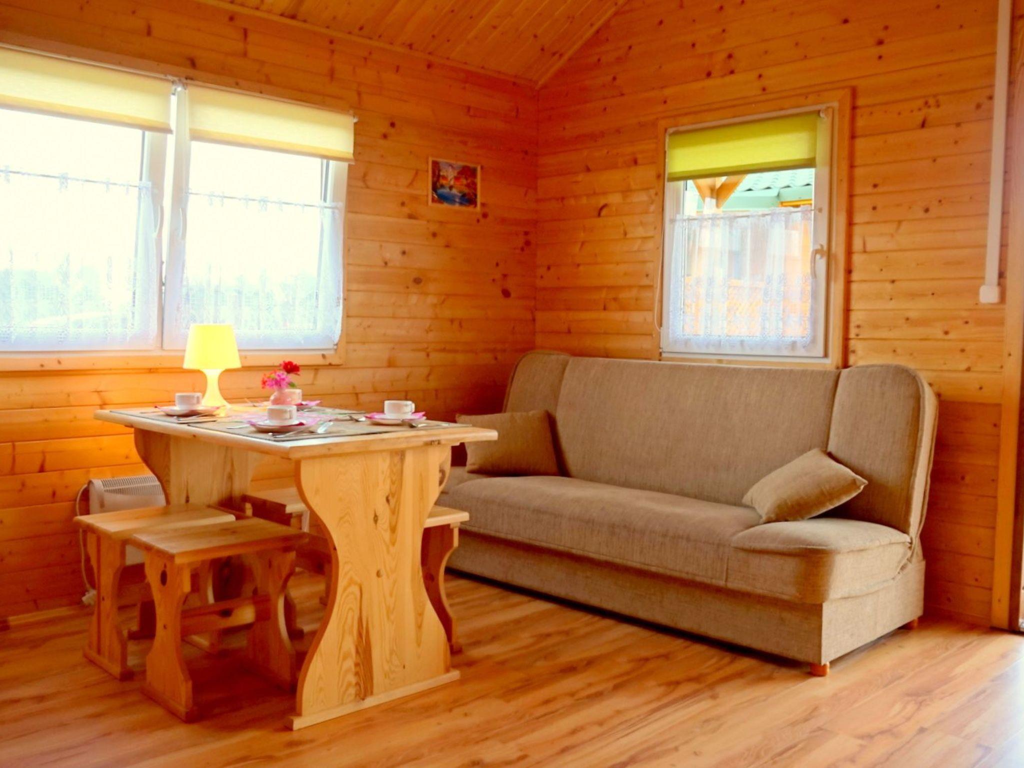 We offer you comfortable, insulated wooden cottages, built in 2015, with an area of 45 m2. We have 8 cottages in our small complex. Each house consists of 3 rooms + bathroom and terrace.- Living room with double sofa bed. Table with 4 chairs, LED32 TV. For cold days there is a wall-mounted electric heater in the living room.- Kitchenette in the living room with basic equipment including coffee and dinner service, glasses, cutlery, pots, cutting boards, pans, 2-burner electric kettle and fridge with small freezer. Basic essential kitchen equipment.- Two bedrooms, a larger one with a double bed (140 cm wide) and a smaller one with two single beds (2 x 80 cm wide). Bed linen available in the bedroom.- Bathroom with shower, sink, toilet. (Bath and beach towels are not provided).- Terrace. Each cottage has a large, cosy, covered terrace (1.7 x 6 m) with table and 4 chairs, beach equipment and clothes dryer.