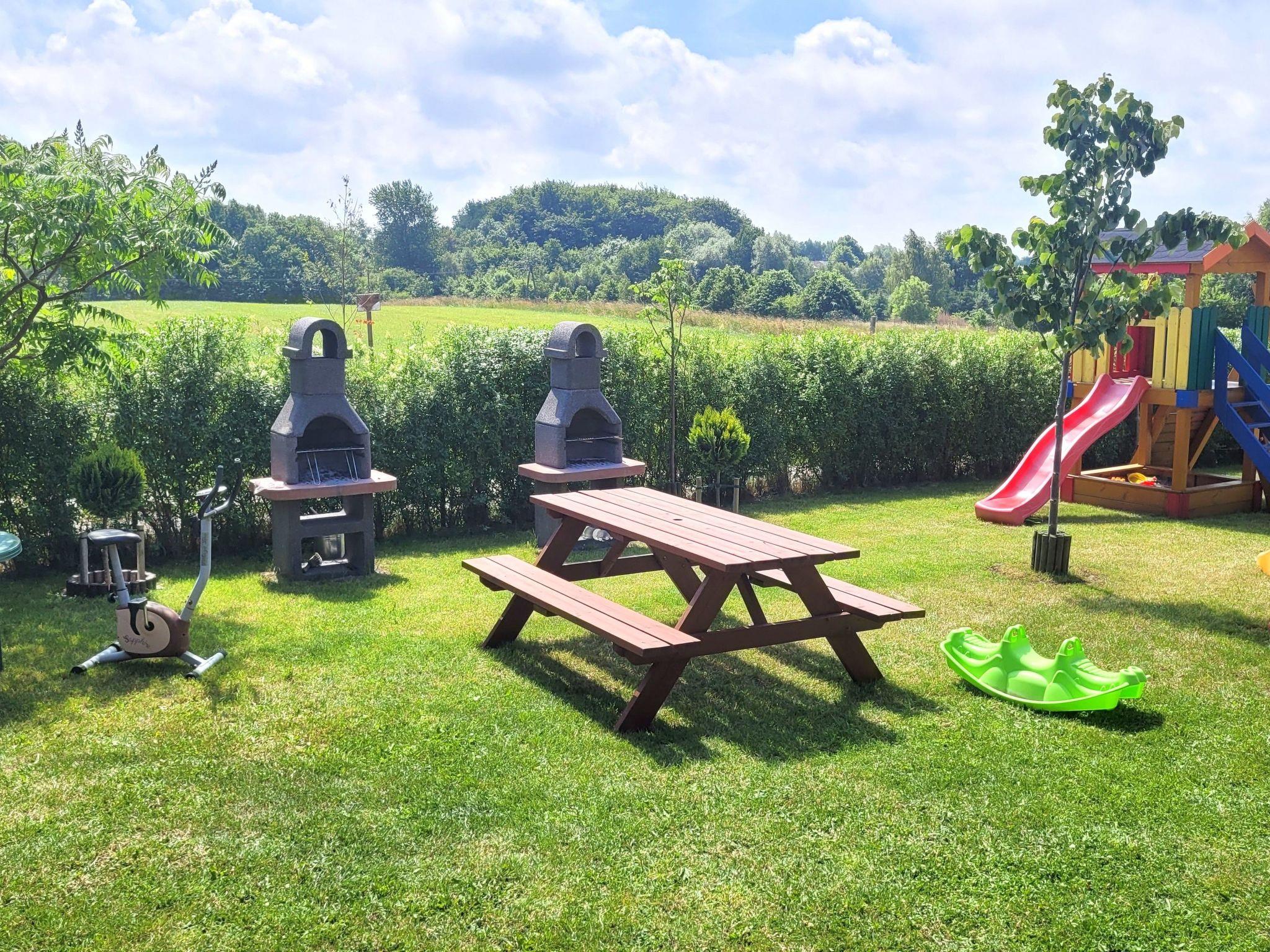 Outside on the fenced property.Large recreational area with playground, barbecue area, small and large bicycles available (limited number).Free WI-FI internet access on the premises.Free parking (1 parking space per bungalow), fenced, monitored and locked at night. Barbecue area and banquet tables.Nearby.- Approximately 500 m. indoor swimming pool, outdoor gym, bicycle paths, horse farm.We can accommodate a maximum of 5 adults in the cottage (fifth person on the sofa bed in the living room) or 4 adults + 2 children (children on the sofa bed in the living room).