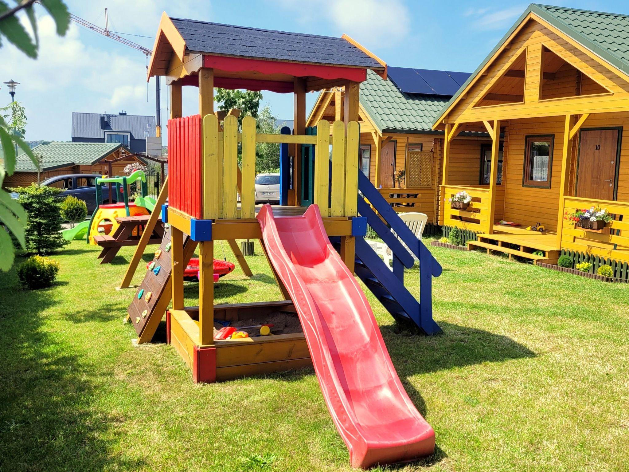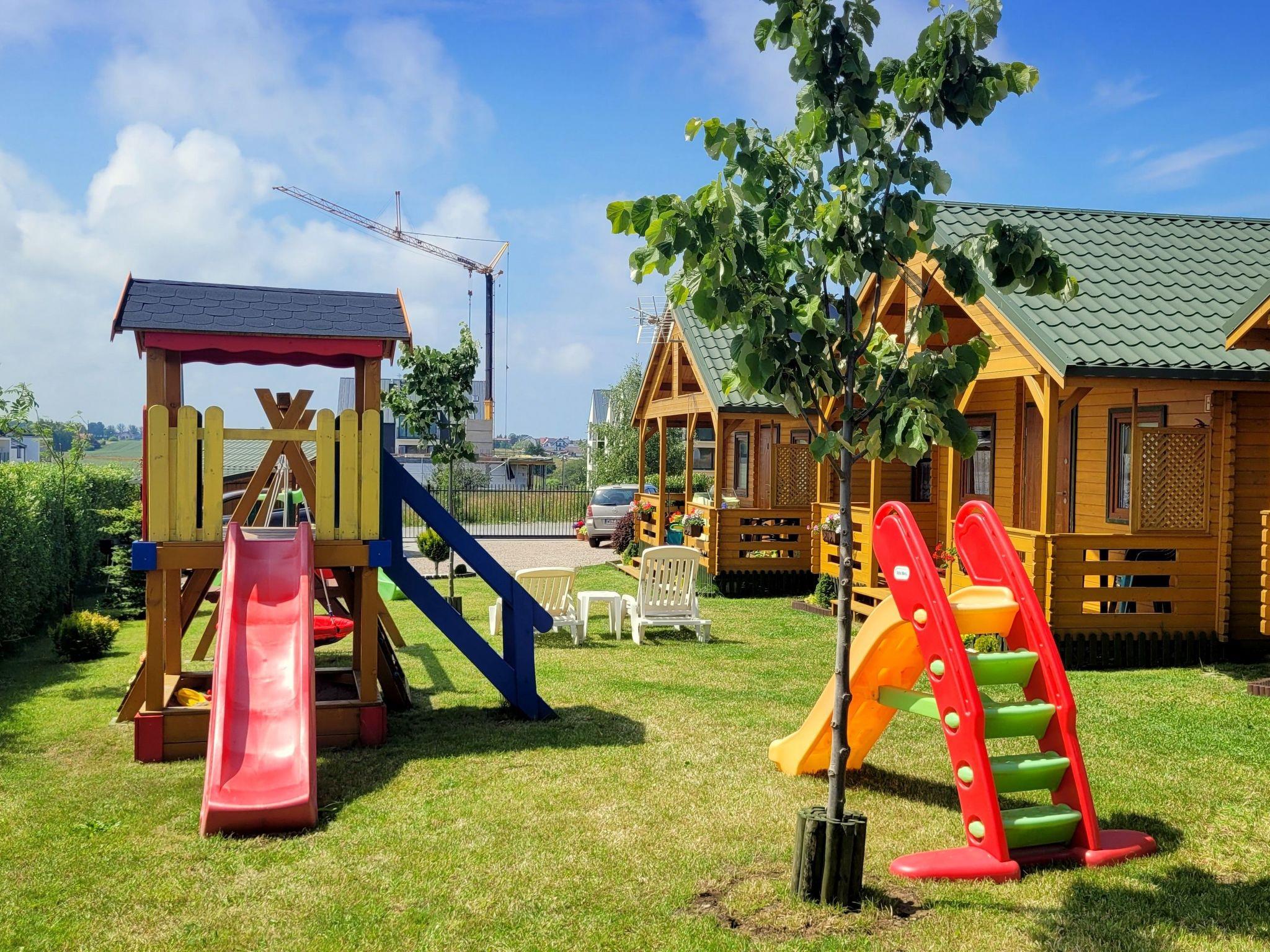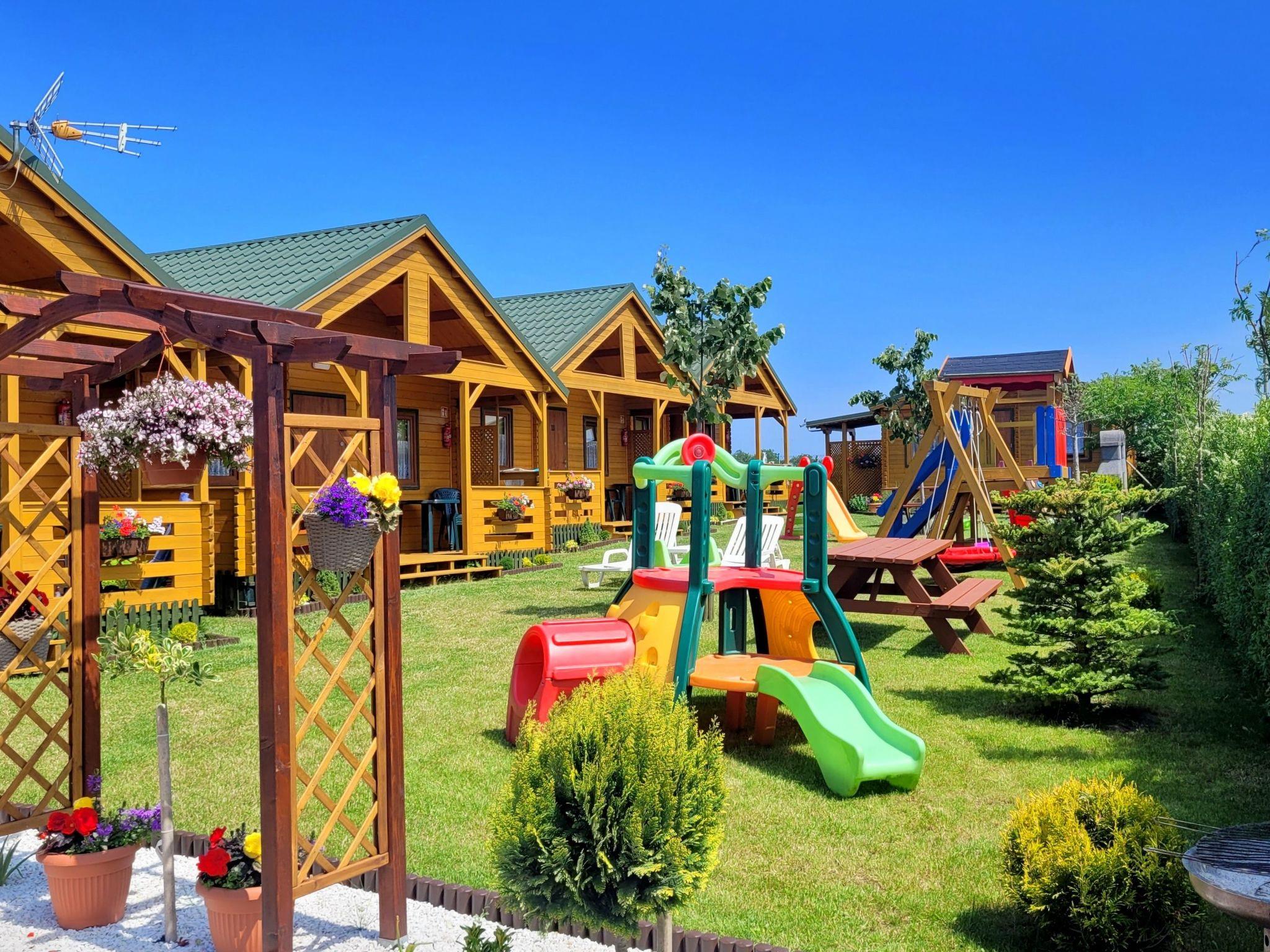 We recommend a complex of 8 cottages, about 20 minutes walk from the sea, about 950 m. (that is far from the city centre), on an area of 1500 m2, in a quiet area, where you can escape from the crowds of tourists and rest comfortably, listen to the morning birds singing and communicate with nature. There is a horse farm next to our resort, so our guests can watch the grazing horses coming up to our fence. This is a great attraction, especially for children.Nearby (approx. 500 m) there is a swimming pool - aquapark, where you can actively relax even on cloudy days with water entertainment, saunas, pools, slides inside and outside the facility. In Ustronie Morskie there are several recreation complexes, sports facilities, a newly built Eurofield, outdoor gyms, bicycle paths allowing you to explore the entire nearby coastline, even along the beach to Kolobrzeg or Mielno. There is also a fishing port in Ustronie Morskie. In the vicinity of our resort there are a number of catering facilities where you can buy full board. Nearby there are chain shops and a supermarket.