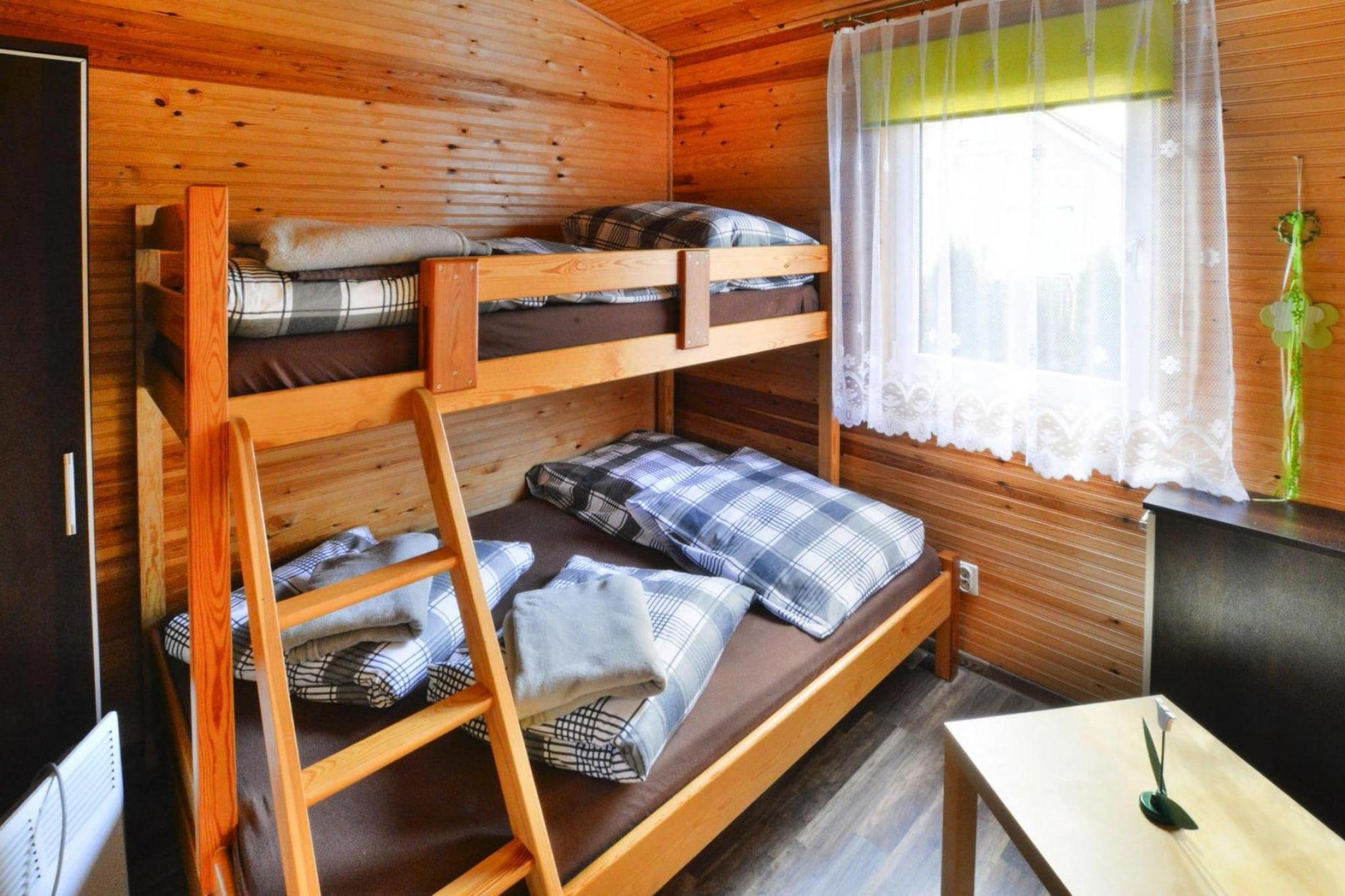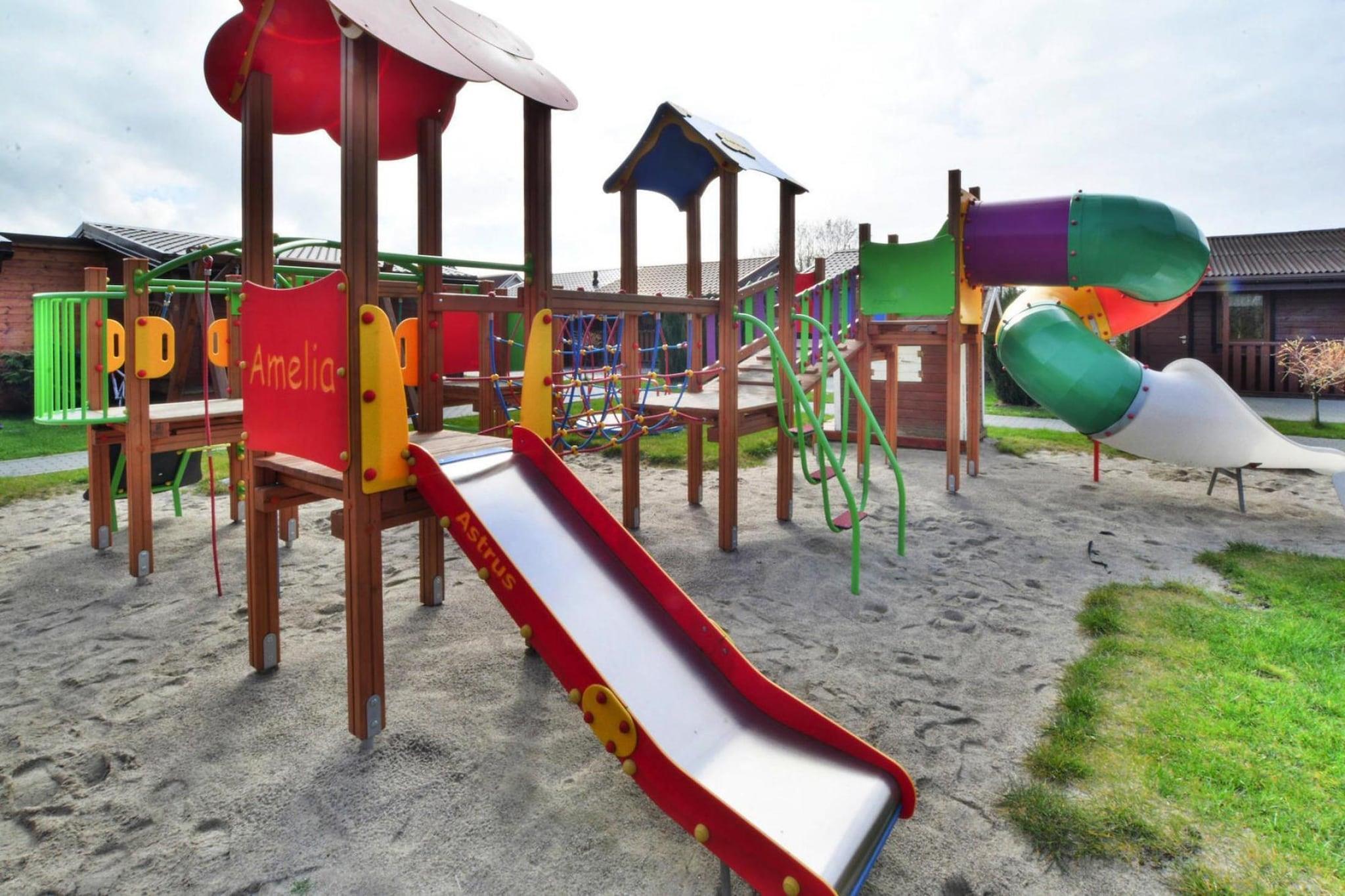 Stueetage: (åbent køkken(kogeplade(Komfur med to kogeplader, gas), elkedel, kaffemaskine, køle-fryseskab), stue / spisestue(dobbeltsovesofa, Fjernsyn(fladskærm, parabol, Tyske TV-kanaler), spisebord(4 personer)), soveværelse(3-etage-køjeseng), badeværelse(bruser, håndvask, toilet)) Reception, Internetadgang, Legeområde, Græsplæne, varme(elektrisk), terrasse(overdækket), have(deles med andre gæster, indhegnet, 2100 m2), havemøbler, solstole, grill(trækul), parkering, trampolin(deles med andre gæster), sandkasse(deles med andre gæster), legeredskaber(deles med andre gæster), rutsjebane(deles med andre gæster), bordtennisbord(deles med andre gæster), bordfodbold(deles med andre gæster), barnestol, Gyngestativ, baby crib(free)