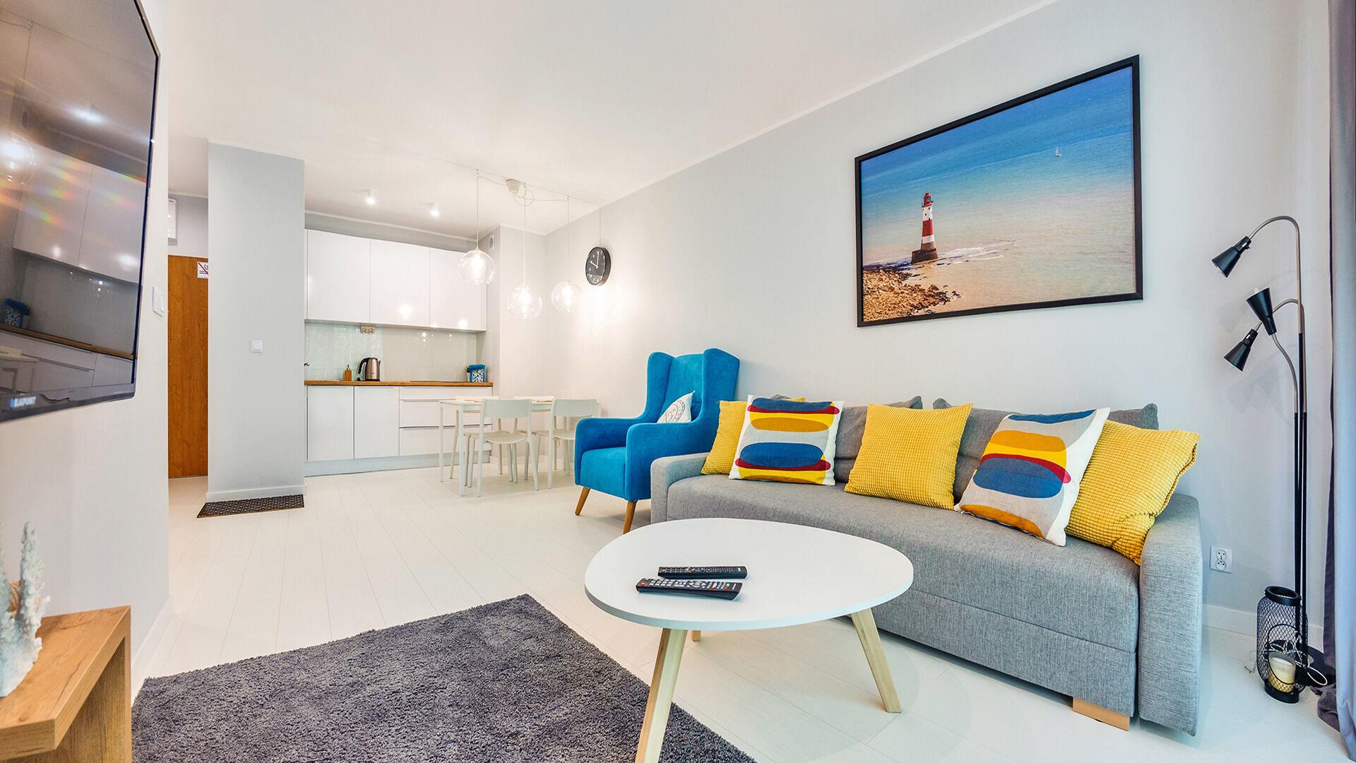 Die Apartments fügen sich harmonisch in die Küstenumgebung ein. Eine große Grünfläche rund um die Anlage, Ruheplätze und ein großzügiger Kinderspielplatz schaffen eine einzigartige Atmosphäre und bilden eine Oase für Kinder. Auch aktive Menschen und Senioren finden hier einen ruhigen Rückzugsort und einen gemütlichen Ort zum Ausruhen.