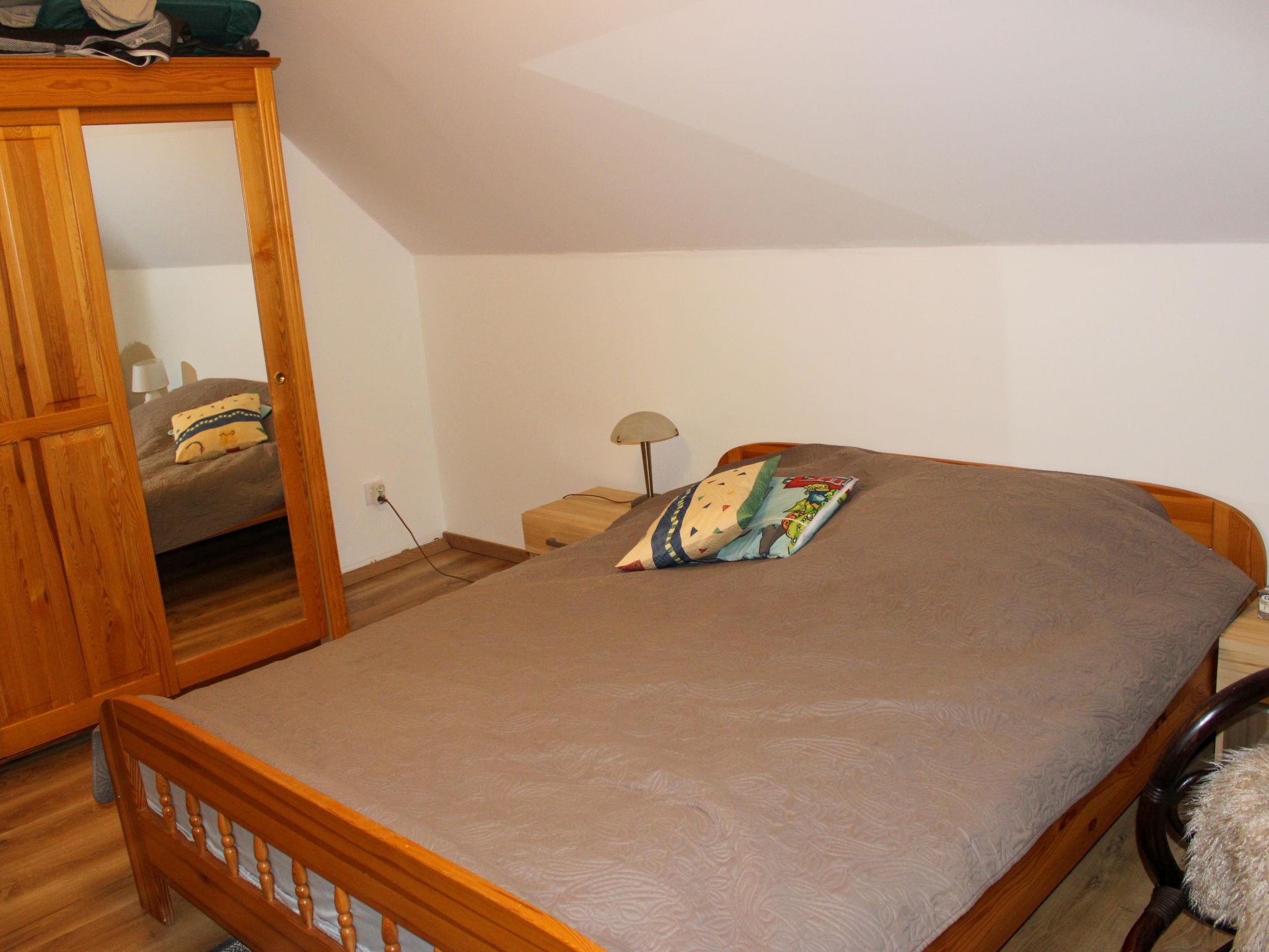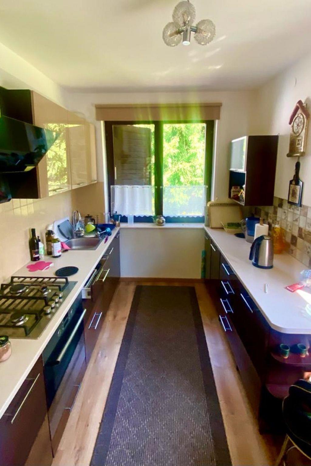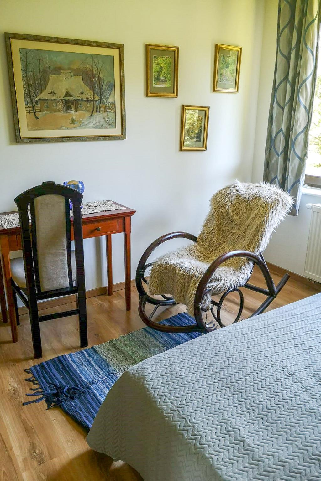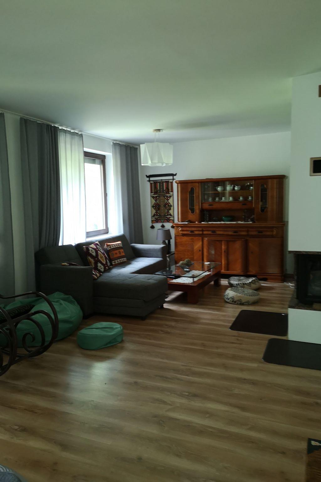 "Walpusz", 4-room house 130 m2. Comfortable and cosy furnishings: living/dining room with 1 folding bed, open-hearth fireplace and satellite TV. Exit to the garden, to the terrace. Kitchen (oven, dishwasher, 4 gas rings, microwave, freezer). Shower/WC. Electric heating. Upper floor: 1 room with 1 double bed. 1 room with 1 double bed. 1 room with 2 beds. Shower/bidet/WC. Electric heating. Terrace 8 m2, large garden 500 m2. Terrace furniture, deck chairs (2). View of the garden and the forest. Facilities: washing machine. Internet (WiFi). Garage. Maximum 1 pet/ dog allowed. 1 wardrobe in the living room is locked and reserved for owners. The bed (extra bed on request) is a corner sofa in the living room.