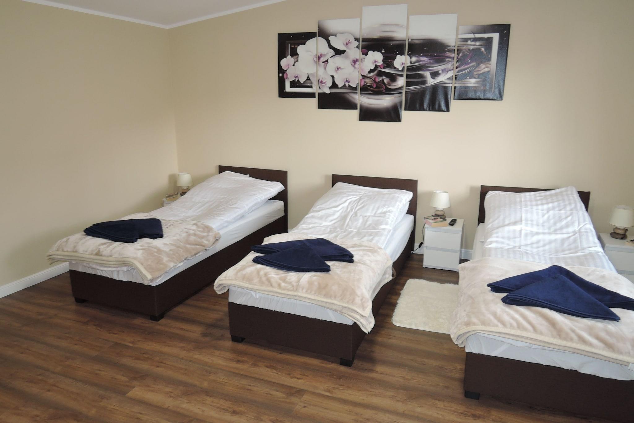Wapnica er en lille by i det vest-nordlige Polen. Wapnica er berømt på grund af den smukke Emerald Lake. Der er restauranter på søen, der serverer frisk fisk. Fra Wapnica er der kun omkring 8 km til Miedzyzdroje, et larmende feriested med en smuk strand og mange restauranter, caféer og diskoteker. Feriehuset er et hyggeligt dobbelthus til 5 personer. Dette er et godt valg for familier at have en dejlig ferie. Der er mange smukke cykelstier omkring Wapnica, som ikke kun gør børnene glade.