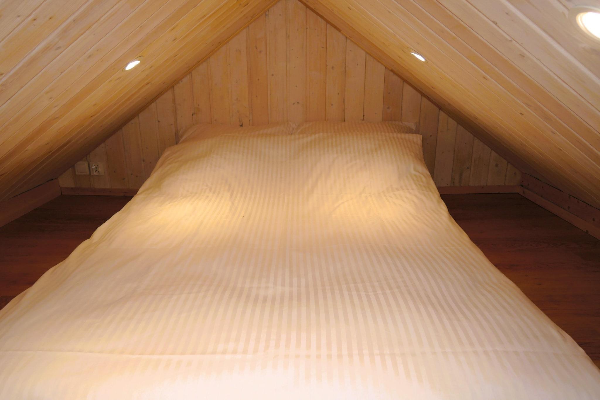 Stueetage: (åbent køkken(elkedel, cooker, komfur(Komfur med to kogeplader, elektrisk), køleskab), Stue/soveværelse(dobbeltsovesofa, Fjernsyn, spisebord, sofahjørne), soveværelse(dobbeltseng), badeværelse(bruser, håndvask, toilet)) På 1. etage: (svalegang soveværelse(dobbeltseng)) have(deles med andre gæster, indhegnet, anlagt have), havemøbler, solstole, parkering, swimmingpool(deles med andre gæster, udendørs, 10 x 5 m., opened from May upto and including Sep), sandkasse, legeredskaber, rutsjebane, fodboldmål, barnestol, Haveskur