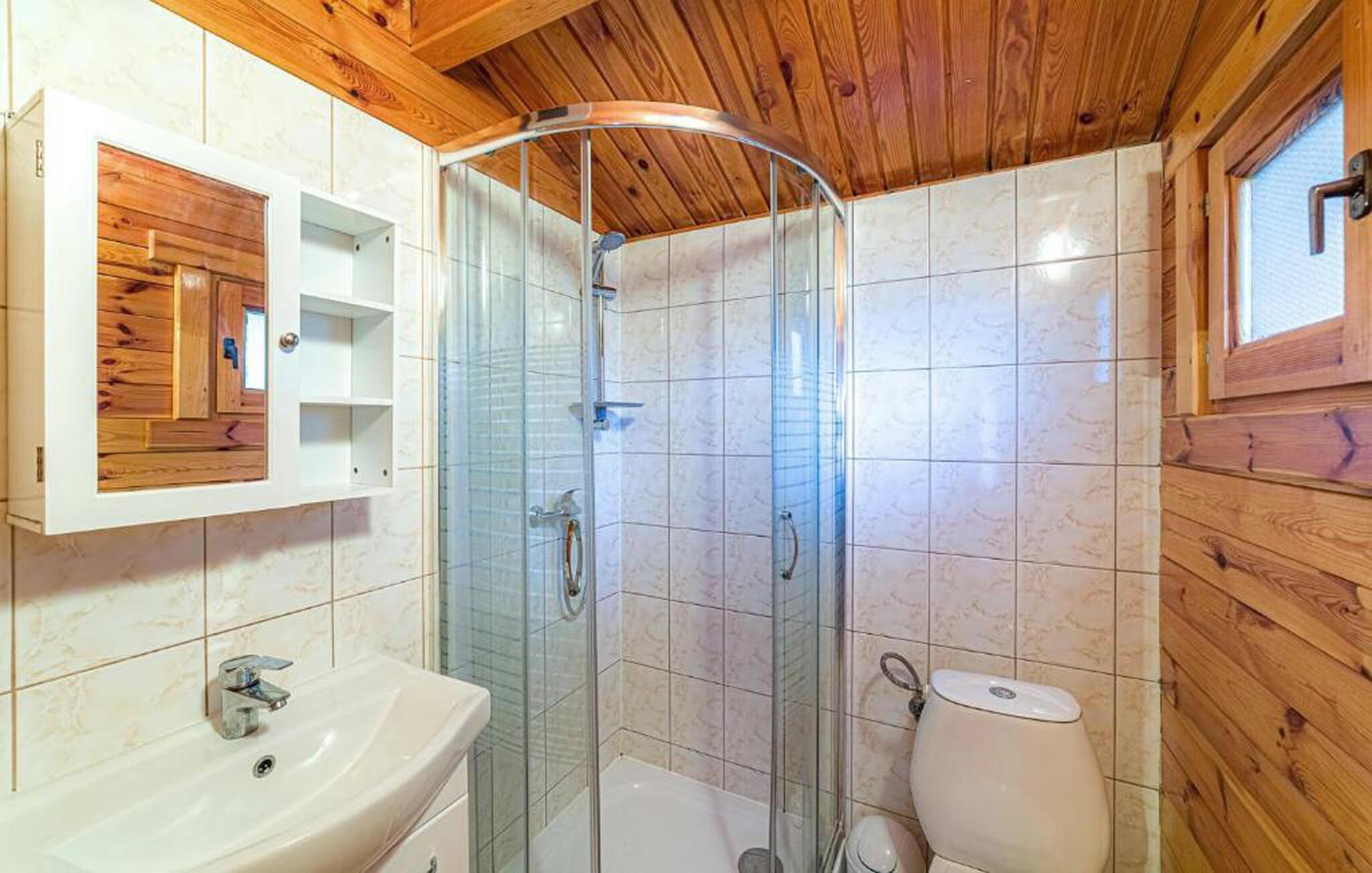 Nyd strandnærhed og afslapning i dette hyggelige træhus i en familievenlig feriepark.