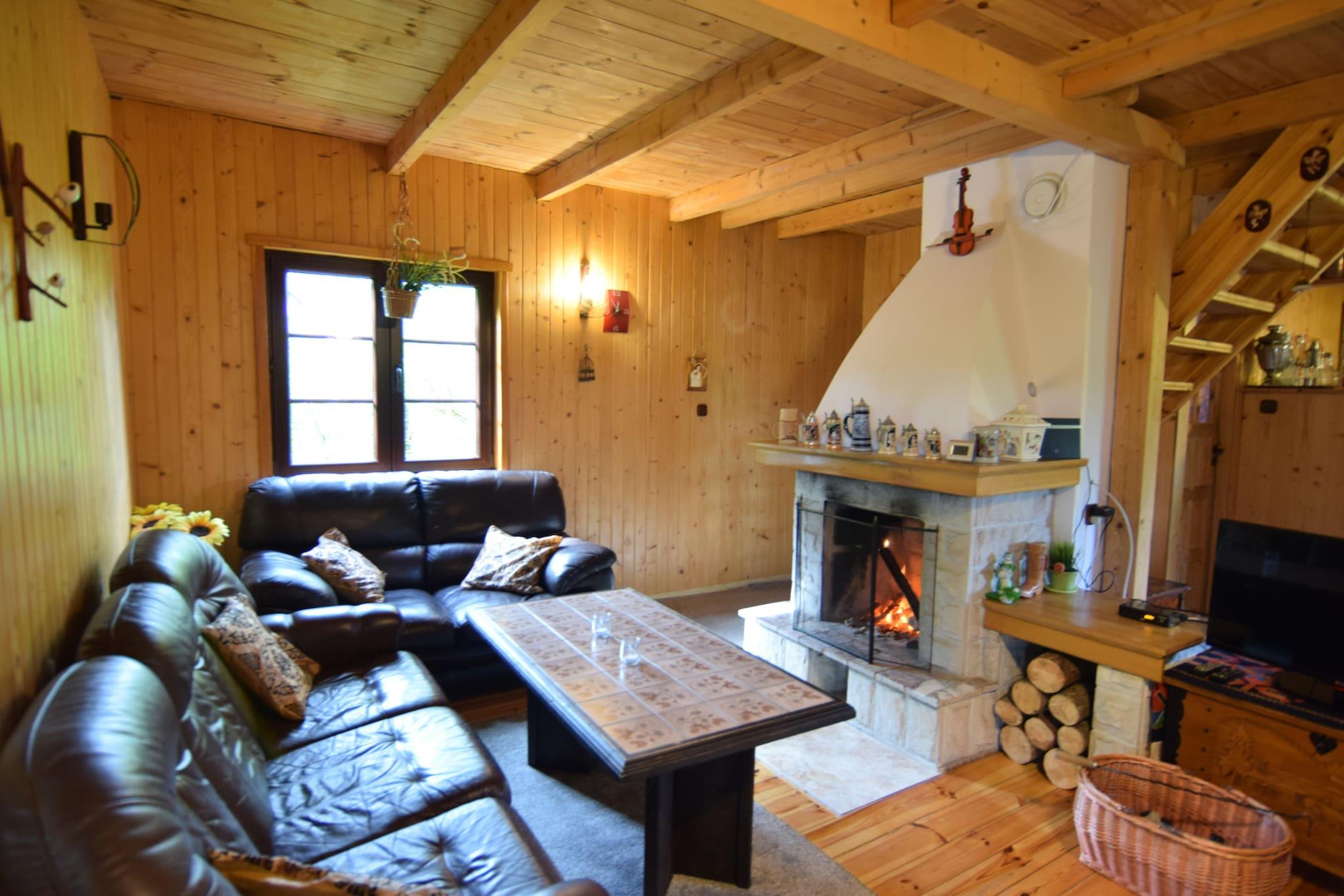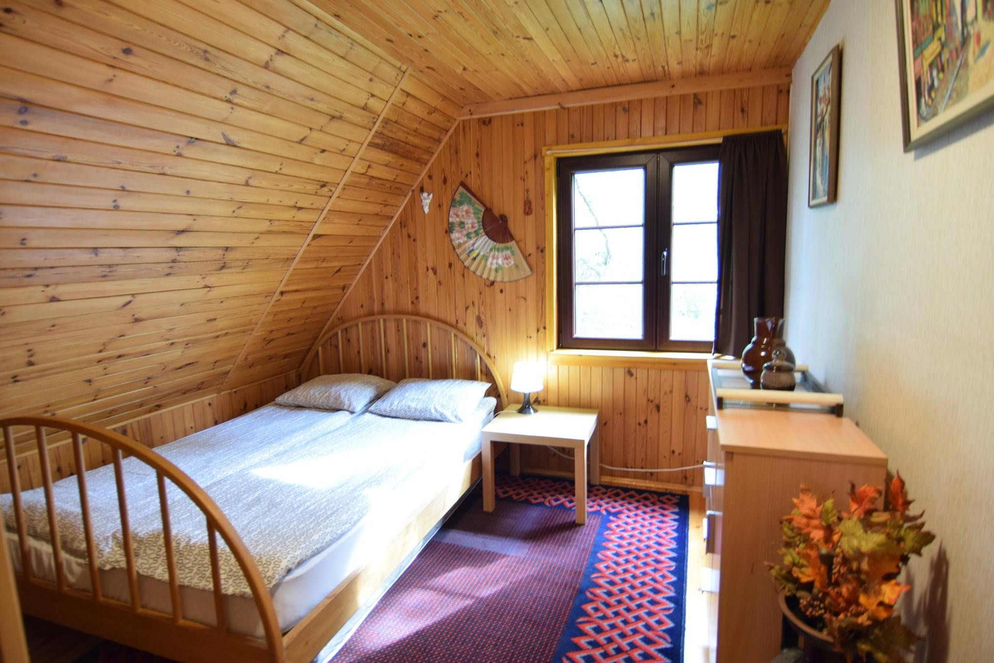 Omgivet af grønne skove og maleriske marker ligger dette feriehus med en privat, indhegnet grund, kun få skridt fra Radunskie-søen (150 meter). Dette rummelige og komfortable feriehus har to etager. I stueetagen finder du en stor stue (med tv og pejs), et veludstyret køkken med spiseplads og et badeværelse med bruser. Ovenpå finder du fire separate soveværelser. Huset har en overdækket terrasse med havemøbler (inklusive liggestole). Der er grillfaciliteter. Der er elektrisk opvarmning og pejs. Trådløst internet er tilgængeligt. Den indhegnede, velholdte grund tilbyder sikker parkering og rigelig plads til afslapning og endeløse familiespil. Gæsterne har adgang til en stor jolle, en kajak og tre cykler (gratis). Prisen inkluderer: sengelinned, vand, internet, parkering, jolle, kajak, tre cykler og slutrengøring. Feriehuset ligger i den lille kasjubiske bygd Zuromino. Området kan prale af adskillige naturlige badesteder ved Radunskie-søen. Søen kan prale af klart vand og er en favorit blandt sommerbadere og lystfiskere (heltling, brasen og gedde). Den større by Stezyca ligger cirka 2,5 km væk og tilbyder butikker, restauranter, barer samt udlejning af robåde og sejlbåde. Der er også en charmerende promenade langs søen, som kan udforskes på cykel eller på en af de mange interessante vandreture i området. Husets beliggenhed er en fremragende base for at udforske den kasjubiske Schweiz-region. En tur til Szymbark med "Huset på hovedet" eller til det højeste bjerg i det nordlige Polen, Wiezyca, er et besøg værd.