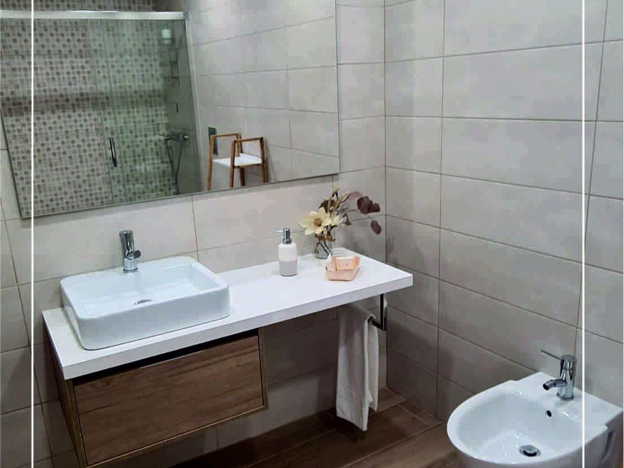 The interior of the flat is designed to make your stay as comfortable as possible. The two bedrooms, equipped with double beds and televisions with internet access, invite you to rest and relax after a day exploring or on the beach. The kitchen is modern and functional, with everything you need to prepare your meals: electric hob, microwave, dishwasher and a spacious fridge. The bathroom is adapted and spacious, with a practical shower for all users.