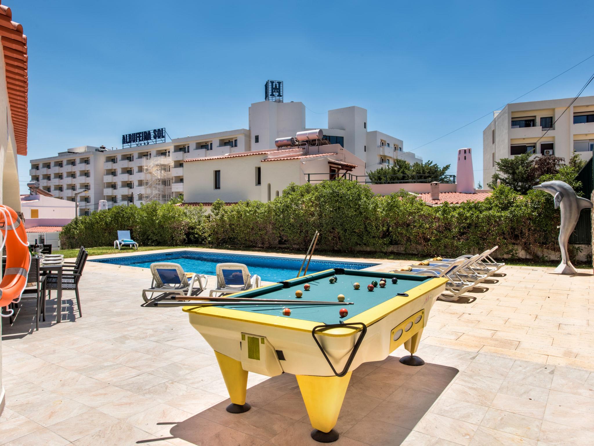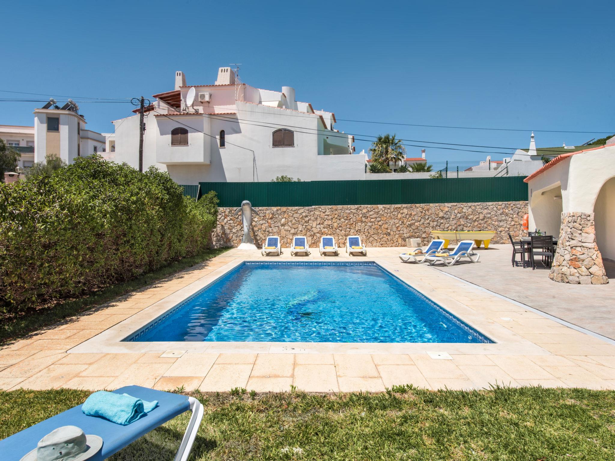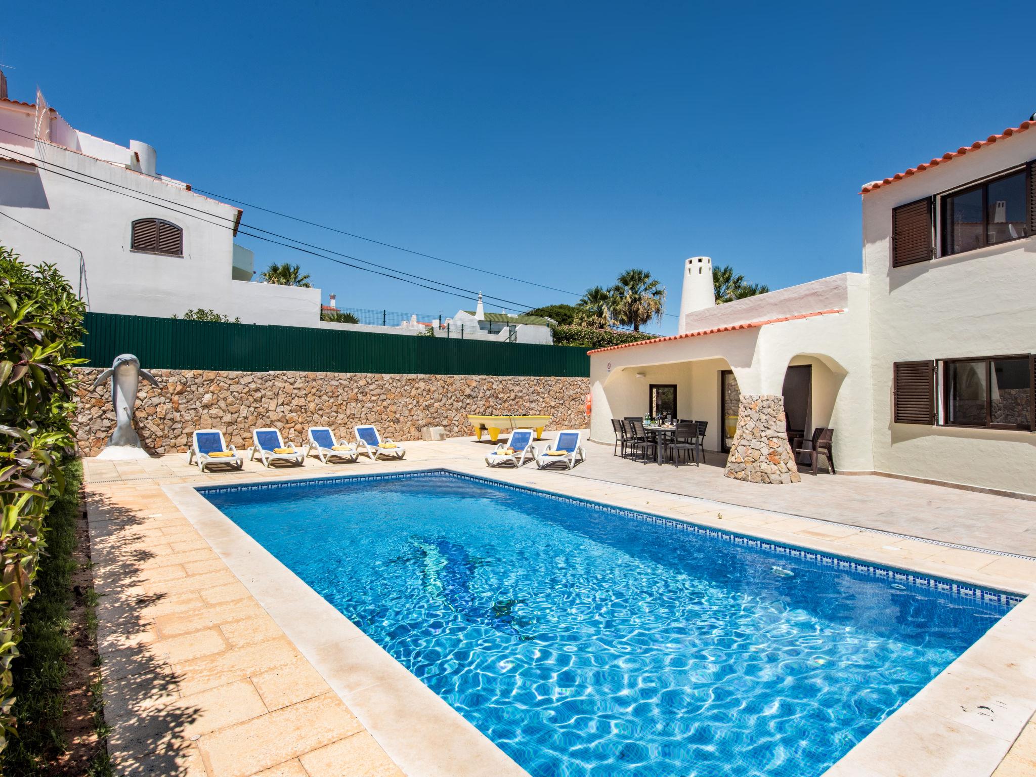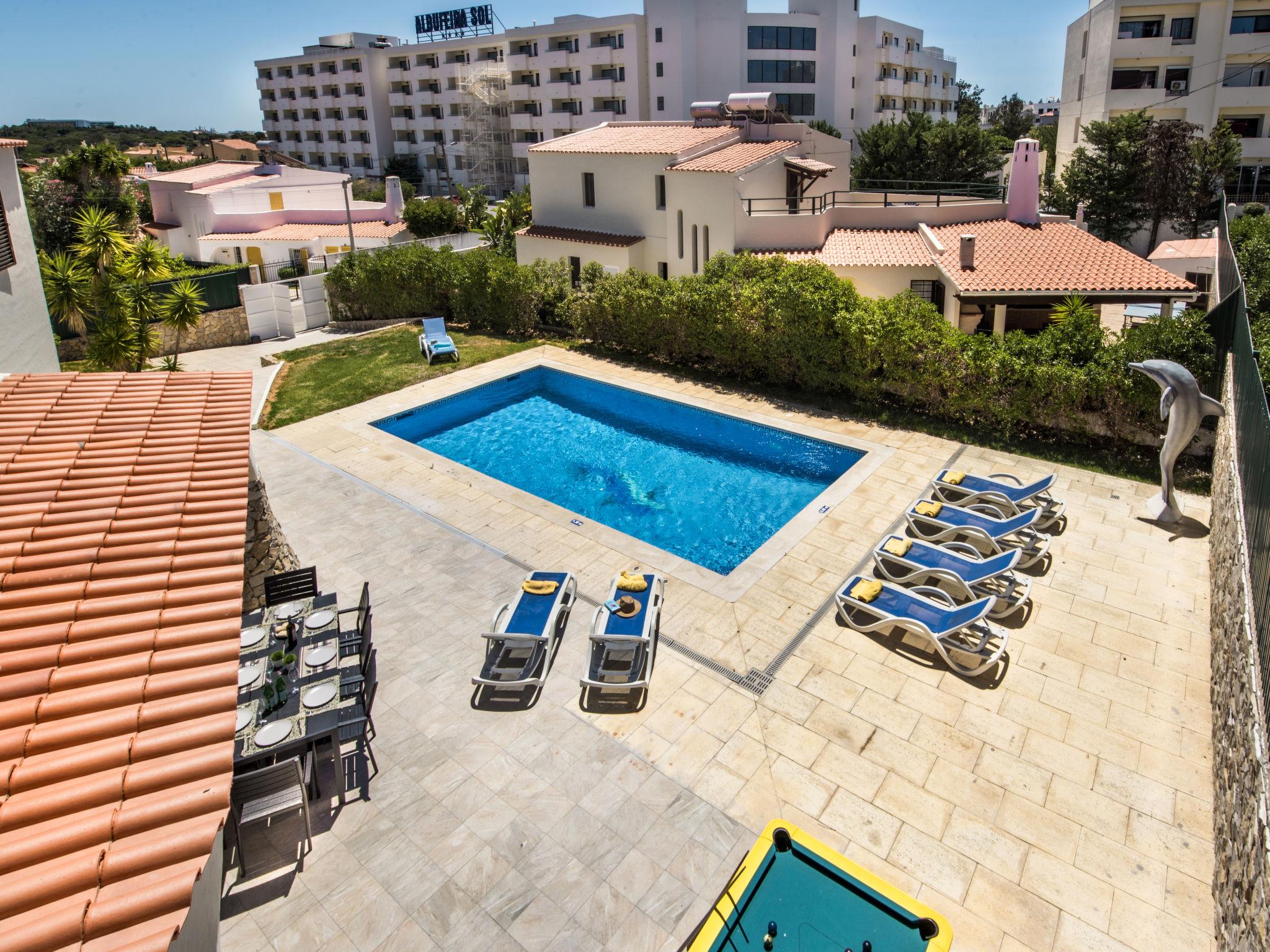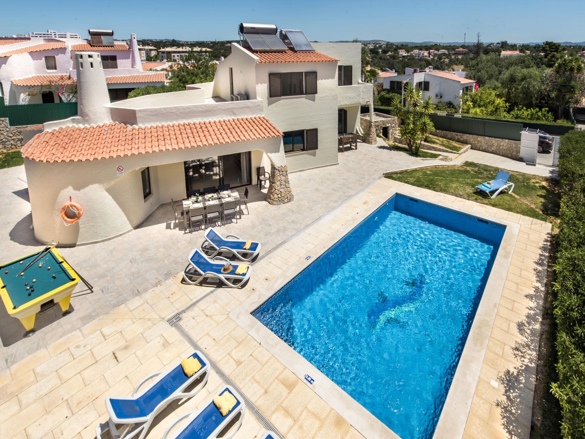 Very cosy, comfortable villa "Corcovada V4 VIP Properties". In the resort 2.8 km from the centre of Old Town of Albufeira, 1.2 km from the sea. Private: swimming pool angular, heated (4 x 8 m, depth 90 - 200 cm, seasonal availability: 01.Jan. - 31.Dec.). Outdoor shower. In the house: WiFi, billiard table, table football, air conditioning, washing machine. Parking at the house. Shop 800 m, grocery 400 m, supermarket 200 m, shopping centre 1.9 km, restaurant 190 m, bar 700 m, bakery, café 400 m, bicycle rental 3.4 km, bus stop 290 m, railway station 5.6 km, sandy beach "Praia da Oura" 1.4 km, diving center 6.2 km. Marina 5.3 km, golf course (18 hole) 2.2 km, surf school 10.8 km, sailing school 16 km, minigolf 1.6 km, riding stable 11.1 km, children's playground 2 km. Nearby attractions: Adventure Mini Golf Park 1.6 km, Zebra Safari Tours 1 km, Electric Karting Albufeira Marina Albuf 6.3 km, Algarve Shopping in Guia 10.2 km, Zoomarine 11.7 km, Faro Airport 39 km. Well-known lakes can easily be reached: Lagoa dos Salgados 14.1 km. Young groups under 25 y.o. will be charged an extra deposit per person on spot. The pool heating service (20ºC-22ºC) must be informed to the KH one week before of your arrival.
