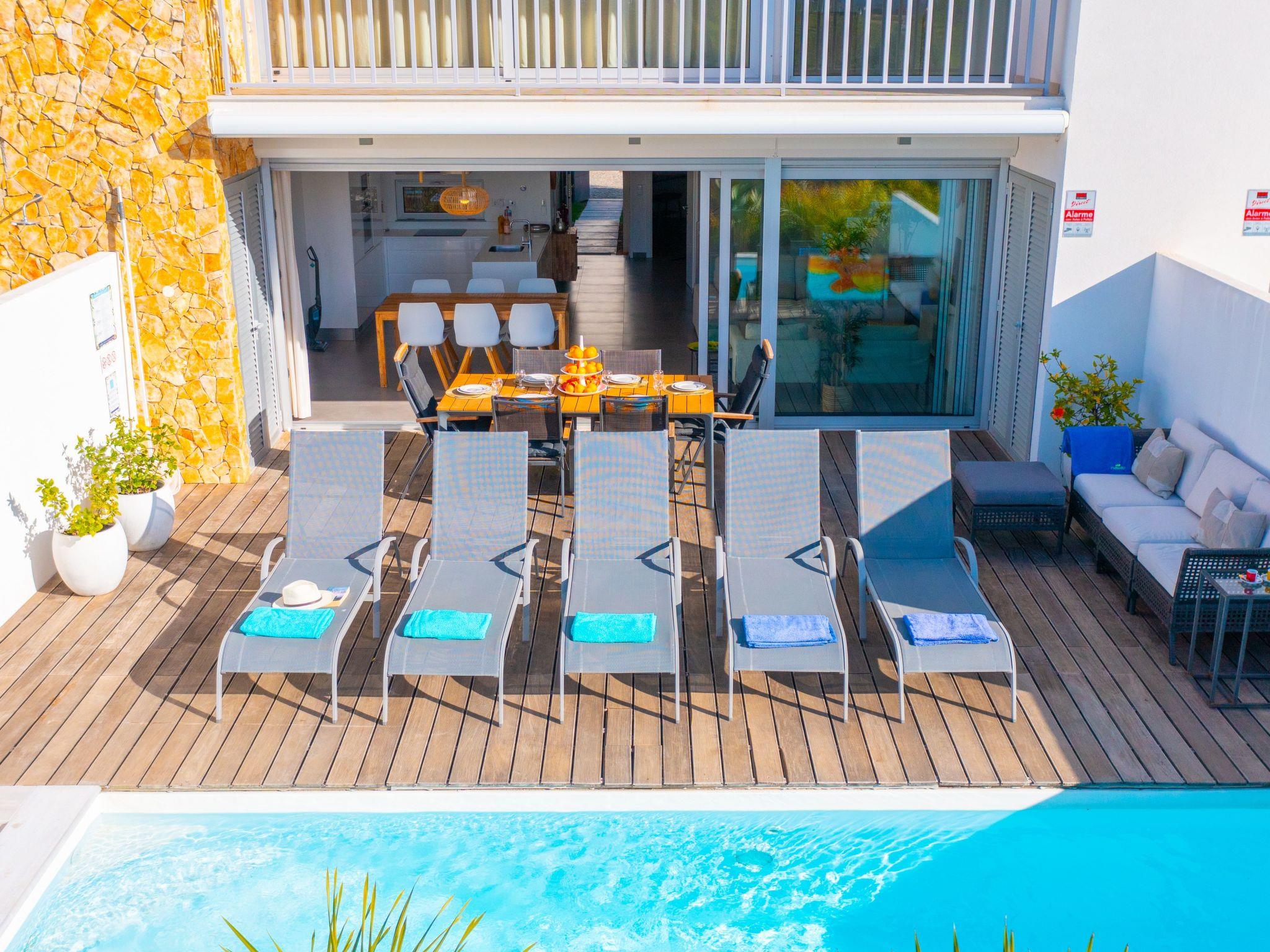 Vila Ray Design presents a contemporary townhouse villa featuring a private heatable pool, catering specifically to families with up to six individuals. Conveniently situated in the heart of Albufeira, this residence is located in a tranquil residential area, providing easy access to the beach, supermarkets, restaurants, and various amenities within a 10-minute radius.