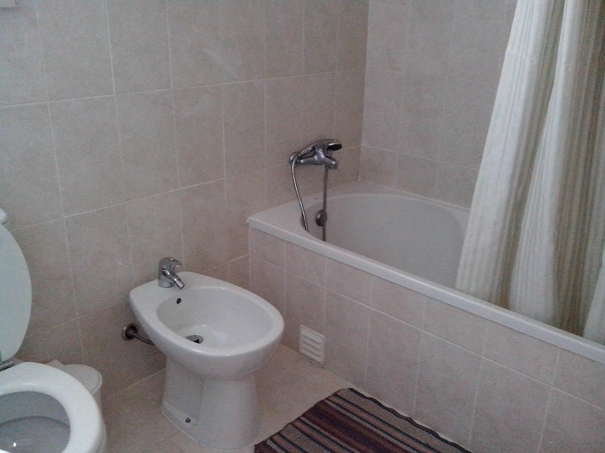 Your apartment is on the ground floor and is suitable for up to four people. It has a bedroom with a wardrobe and two single beds (90 x 200cm) that can be joined together. The kitchen is fully-equipped and includes a fridge, stove, oven, coffee machine, toaster and kettle. The kitchen also has both a washing machine and a dishwasher. The living room provides a sofa suite, including a sofa bed for up to two people (140 x 200cm) and a TV (Portuguese channels). You can sit at the dining table. Two children’s beds can be provided at a supplementary charge. The bathroom comprises a toilet, washbasin, shower and bath.