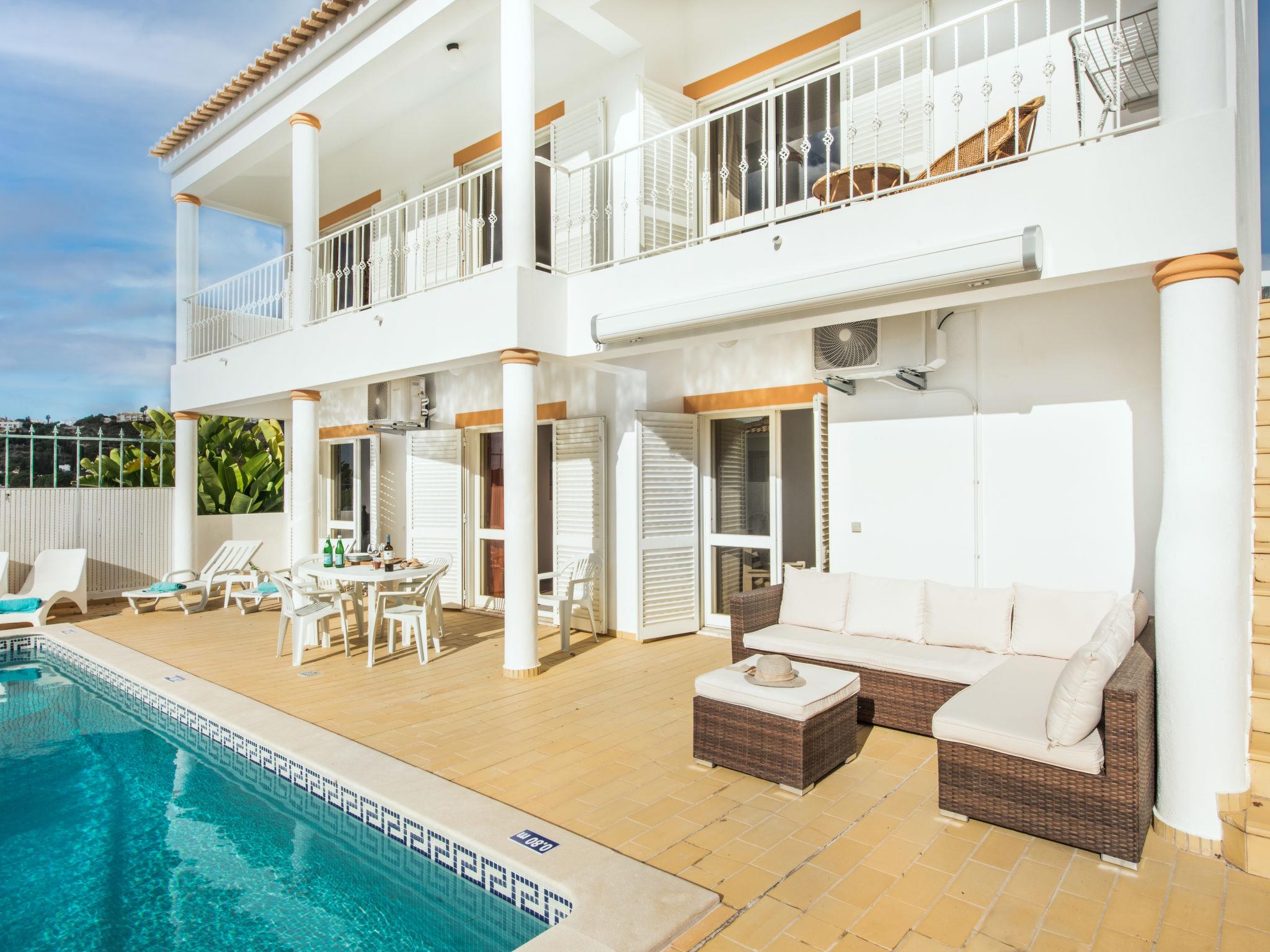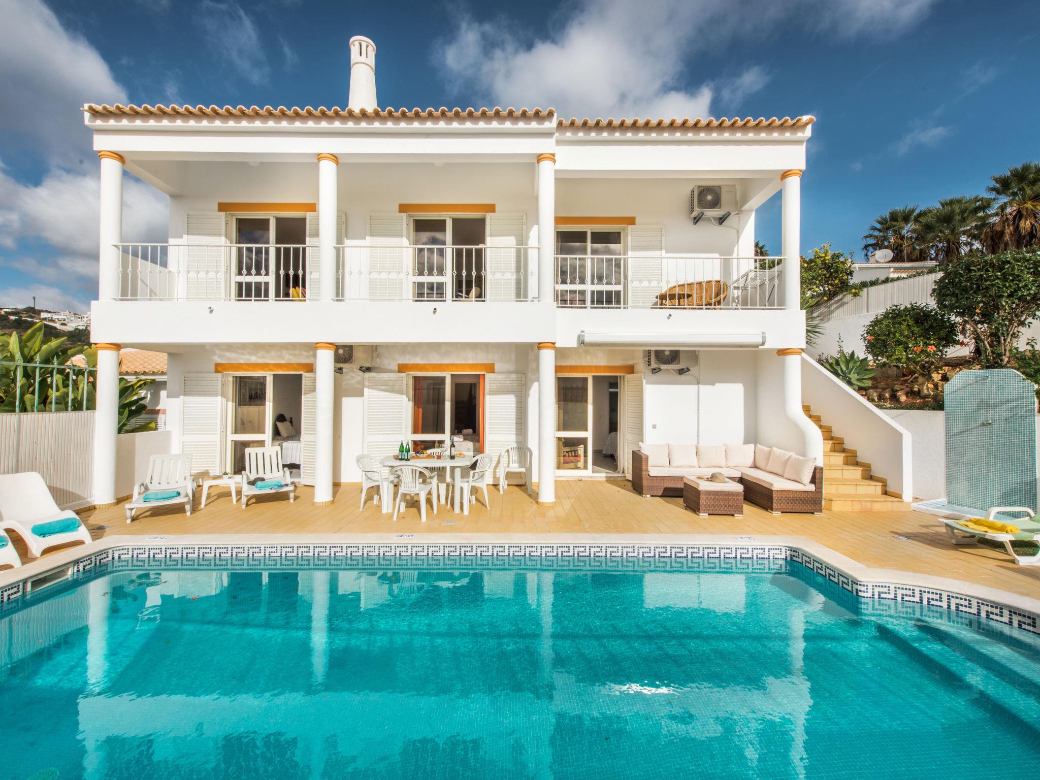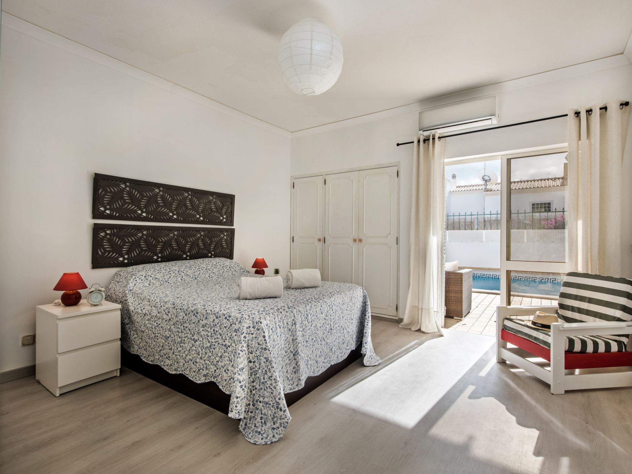 Very cosy house "Marina". Outside the resort, 1.8 km from the centre of Albufeira, residential area (villas), 1.5 km from the sea. Private: swimming pool angular (4 x 8 m, depth 80 - 225 cm, seasonal availability: 01.Jan. - 31.Dec.). In the house: WiFi, air conditioning, washing machine, drying room. Parking at the house. Grocery, supermarket 800 m, shopping centre 1.9 km, restaurant 700 m, bar 850 m, bakery, café 800 m, pedestrian zone 1.5 km, bicycle rental 2.1 km, bus stop 800 m, sandy beach "Praia do Peneco" 1.4 km. Marina 4 km, golf course (18 hole) 9 km, surf school 1.8 km, tennis 3.3 km, riding stable 14.3 km. Nearby attractions: Zomarine 10 km, Aqualand 17 km, Krazy World 17 km, Sand City 25 km, Algarve Shopping 8 km, Faro Airport 42 km. Hiking paths: Lagoa dos Salgados 12 km. Please note: car recommended. Suitable for families. The owner does not accept any youth groups. Loading and unloading of baggage is possible at the holiday house. Young groups under 25 y.o. will be charged an extra deposit per person on spot.
