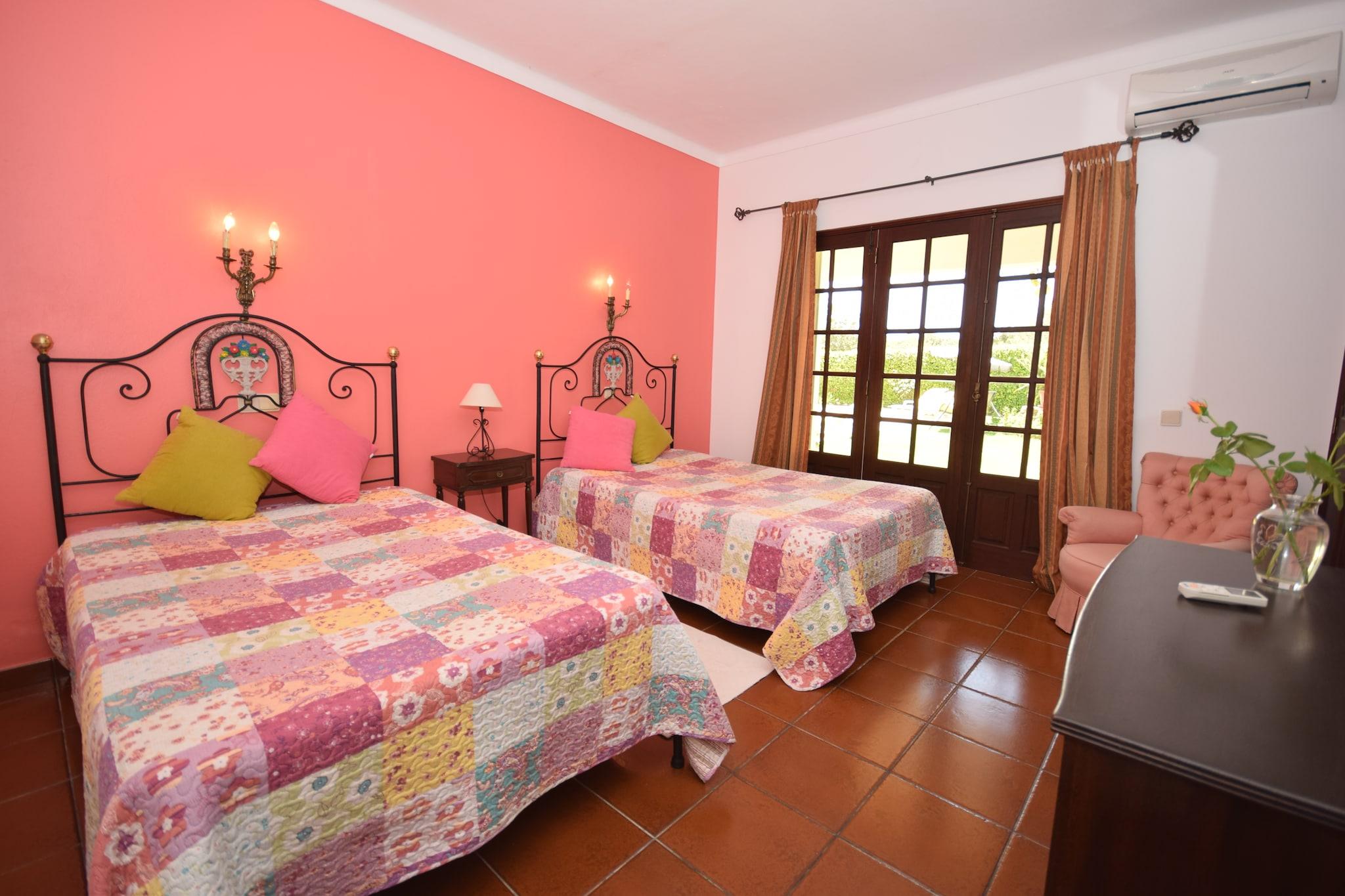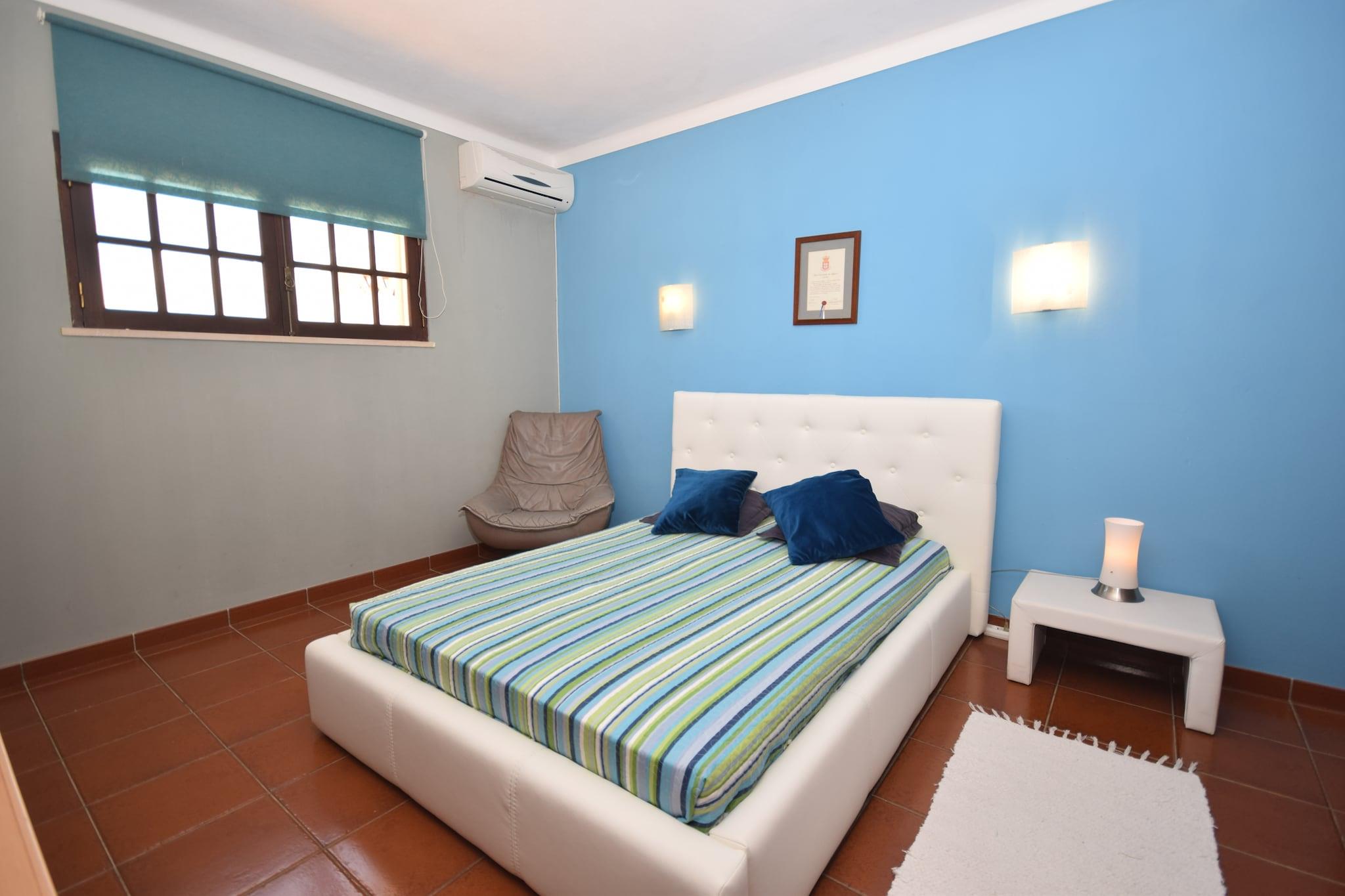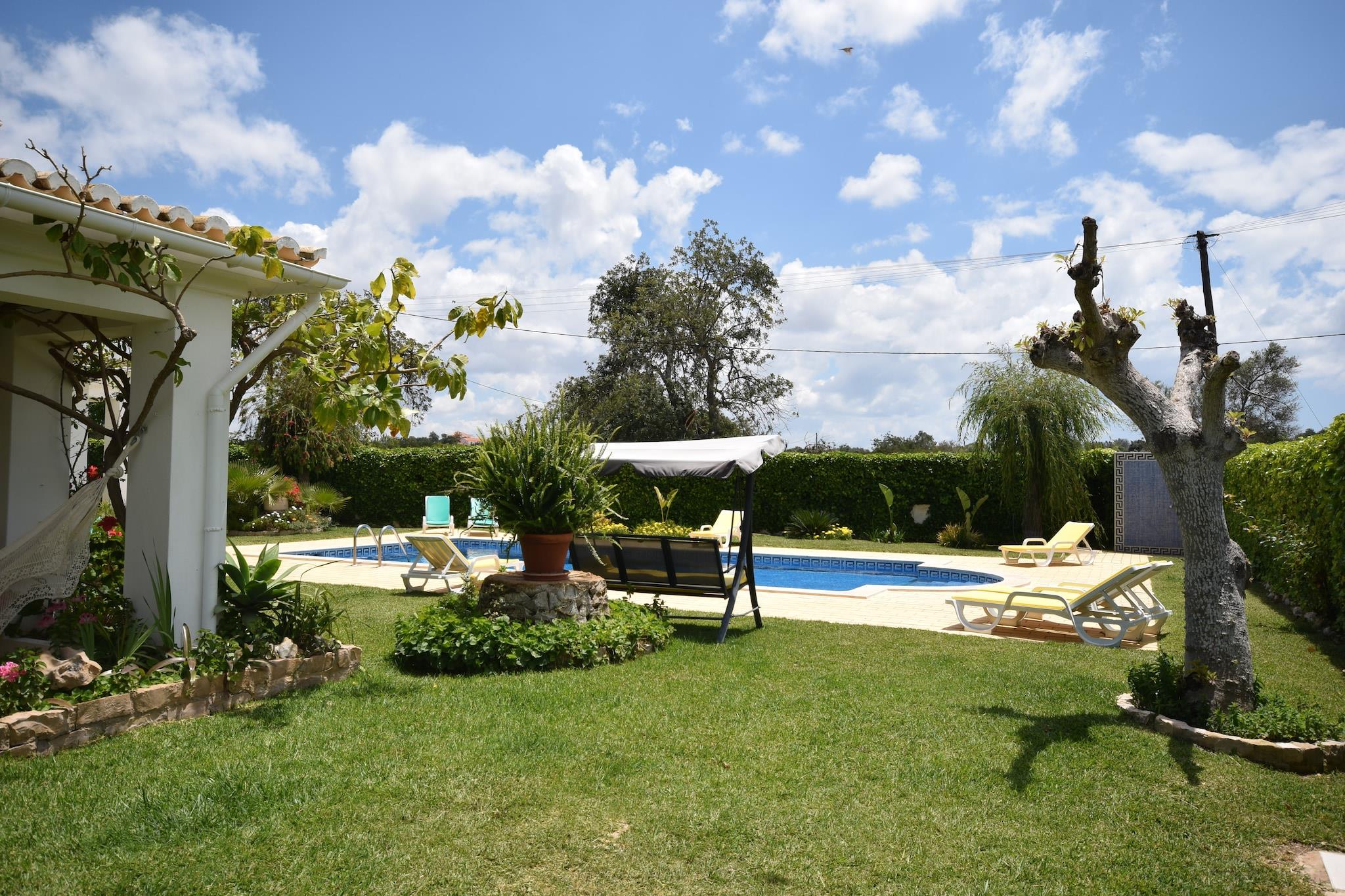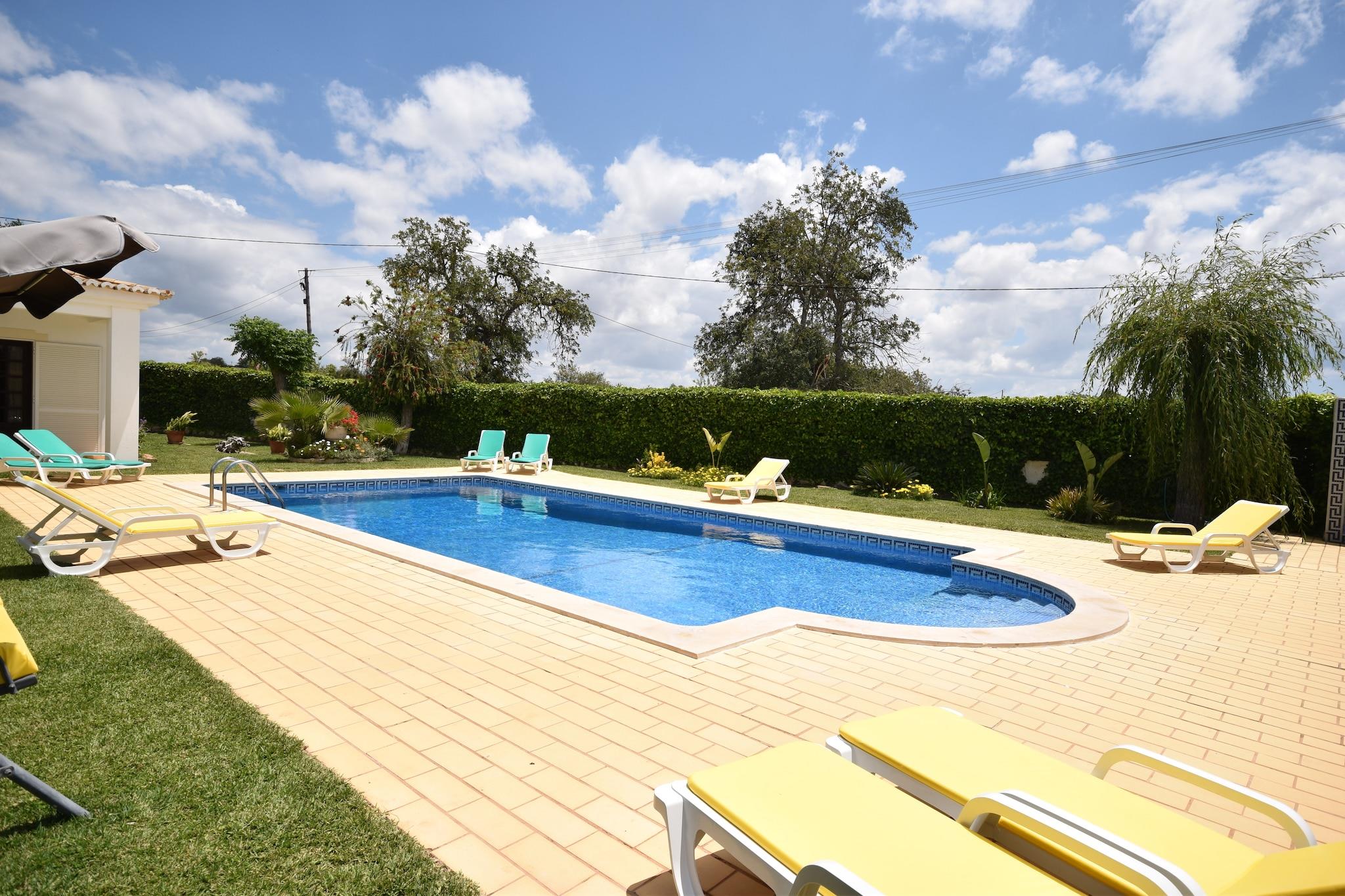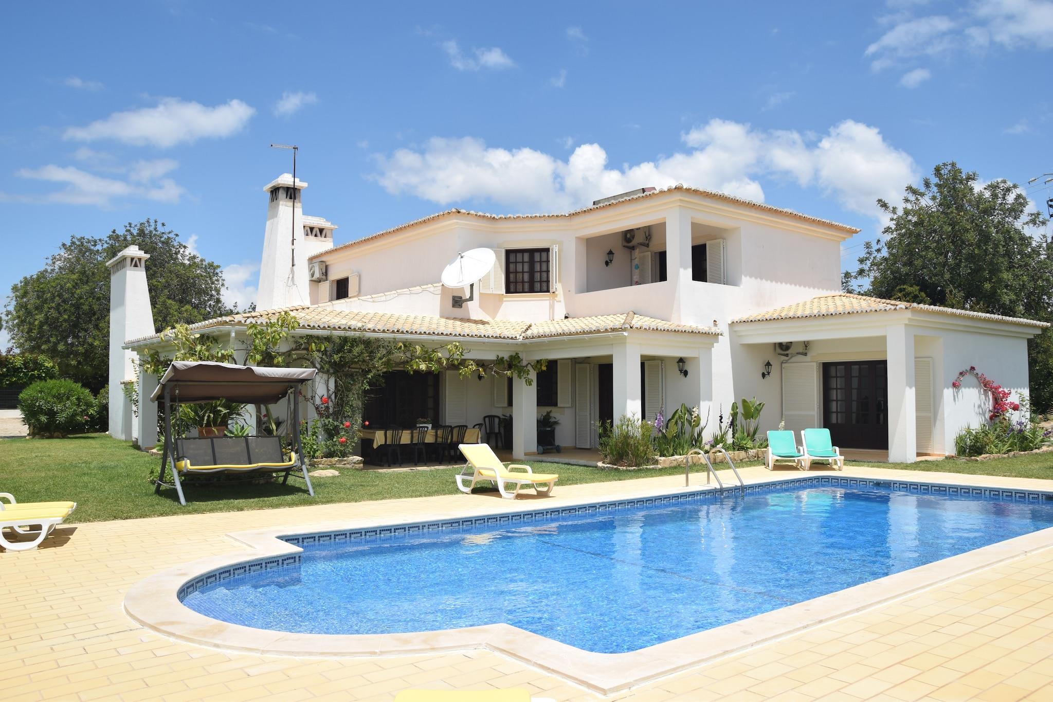 Vivenda Ferreiras er en smuk traditionel villa med 5 soveværelser beliggende i et roligt landområde. Villaen er omgivet af en smukt anlagt have og har et fuldt udstyret udendørs køkken med en stor indbygget grill og originalbrændeovn. Villaen er ideel til familier med børn eller for kun nogen på udkig efter en kvalitetsferie, hvor du kan skifte alle slags aktiviteter med rolige, dovne dage ved den smukke pool. Udover villaen er en rideskole, og miljøet er perfekt til smukke ridning på hesteryg. Du kan også gå på vandreture og cykle her. De smukke bugter i Albufeira ligger kun 10 minutter væk, og i den nærliggende landsby Ferreiras finder du et lækkert kød- og fiskemarked ved siden af lokale restauranter. For golfelskere er der 15 min kørsel nogle rigtig gode golfbaner.
