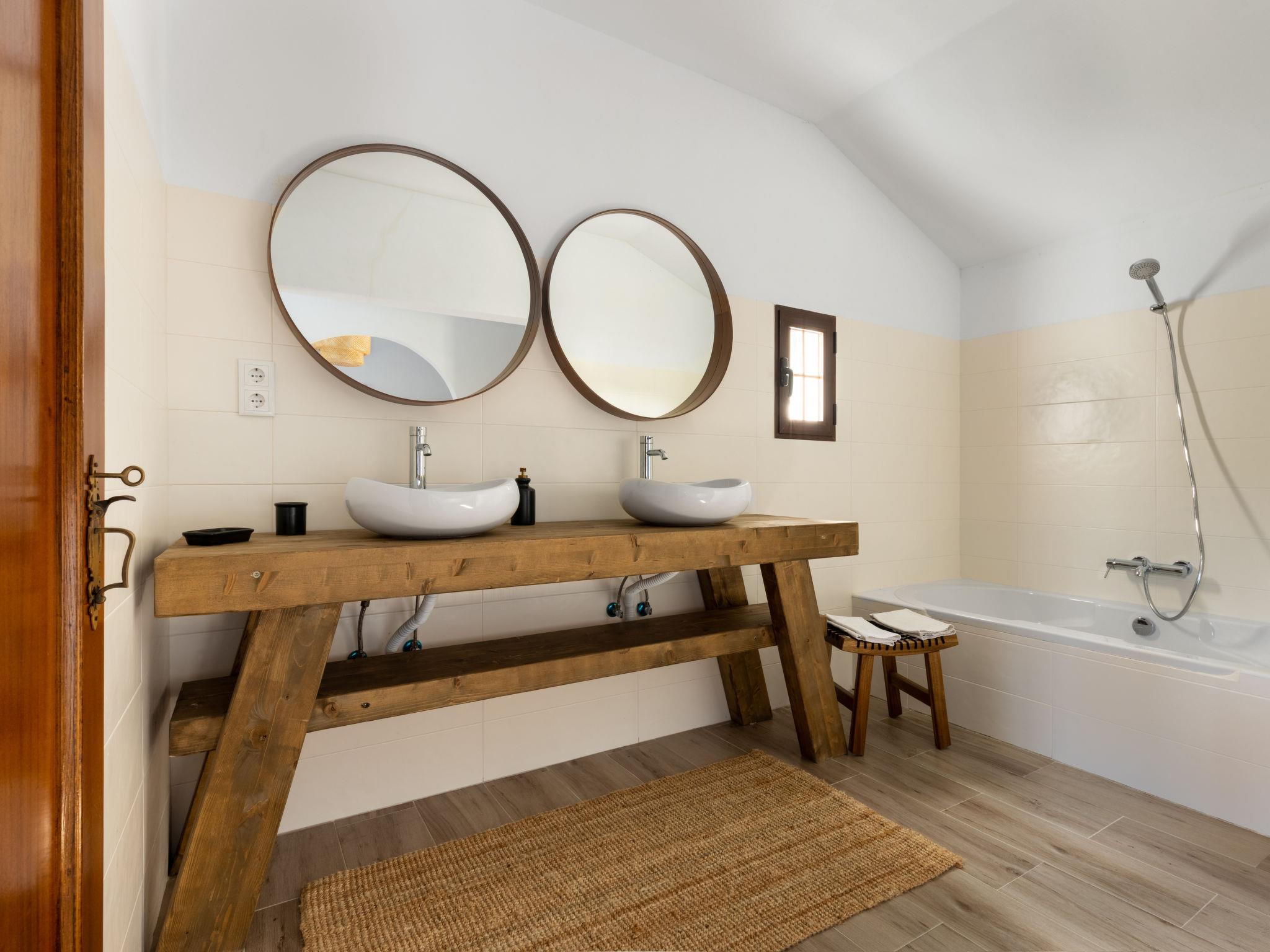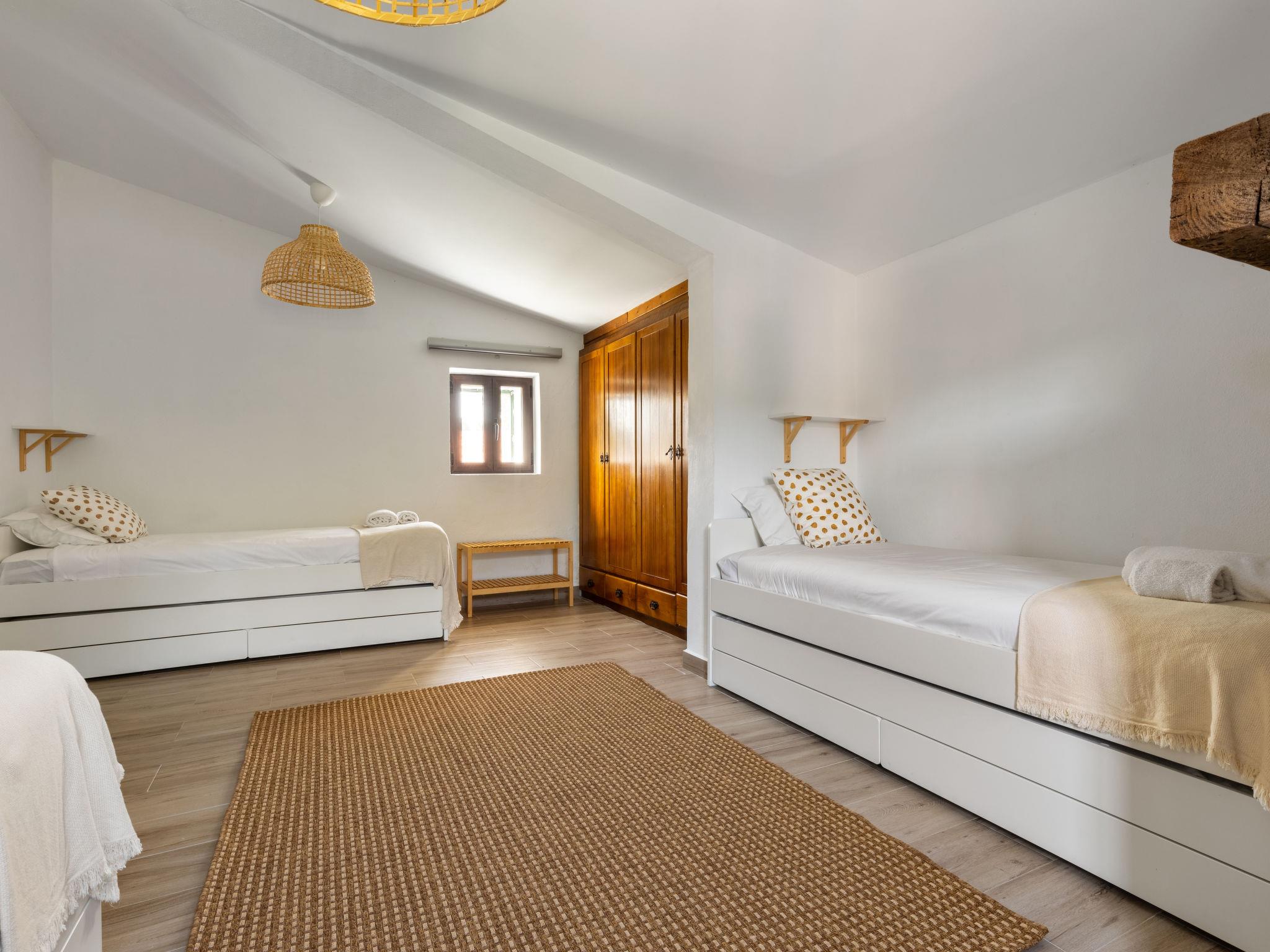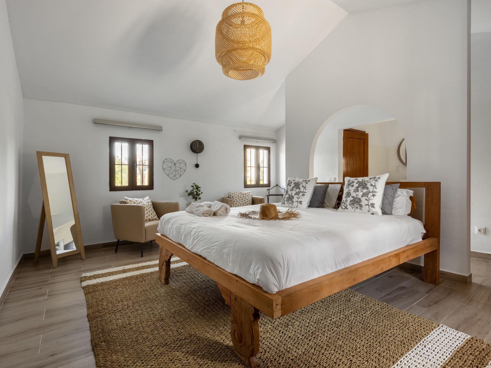 "Quinta de Santa Emilia 3", 4-room house 103 m2, on the ground floor. Modern and cosy furnishings: living/dining room 30 m2 with open-hearth fireplace, satellite TV, air conditioning and forced-air heating. Exit to the terrace. 1 large room 30 m2 with 1 double bed (180 cm, length 200 cm), separate WC, bath/shower, double hand-basin, air conditioning and forced-air heating. 1 room 12 m2 with 1 double bed (160 cm, length 200 cm), air conditioning and forced-air heating. 1 large room 22 m2 with 3 beds (90 cm, length 200 cm), air conditioning and forced-air heating. Open kitchen (oven, dishwasher, 4 ceramic glass hob hotplates, toaster, kettle, microwave, freezer, electric coffee machine, Capsules for coffee machine (Krups) extra). Shower/WC. Electric heating. Heating not available in all rooms. Terrace 24 m2, roofed terrace 30 m2. Terrace furniture, barbecue. Facilities: iron, children's high chair, baby cot for up to 2 year olds, hair dryer. Internet (WiFi, free). Please note: suitable for families. Non-smoking house. 123148/AL
