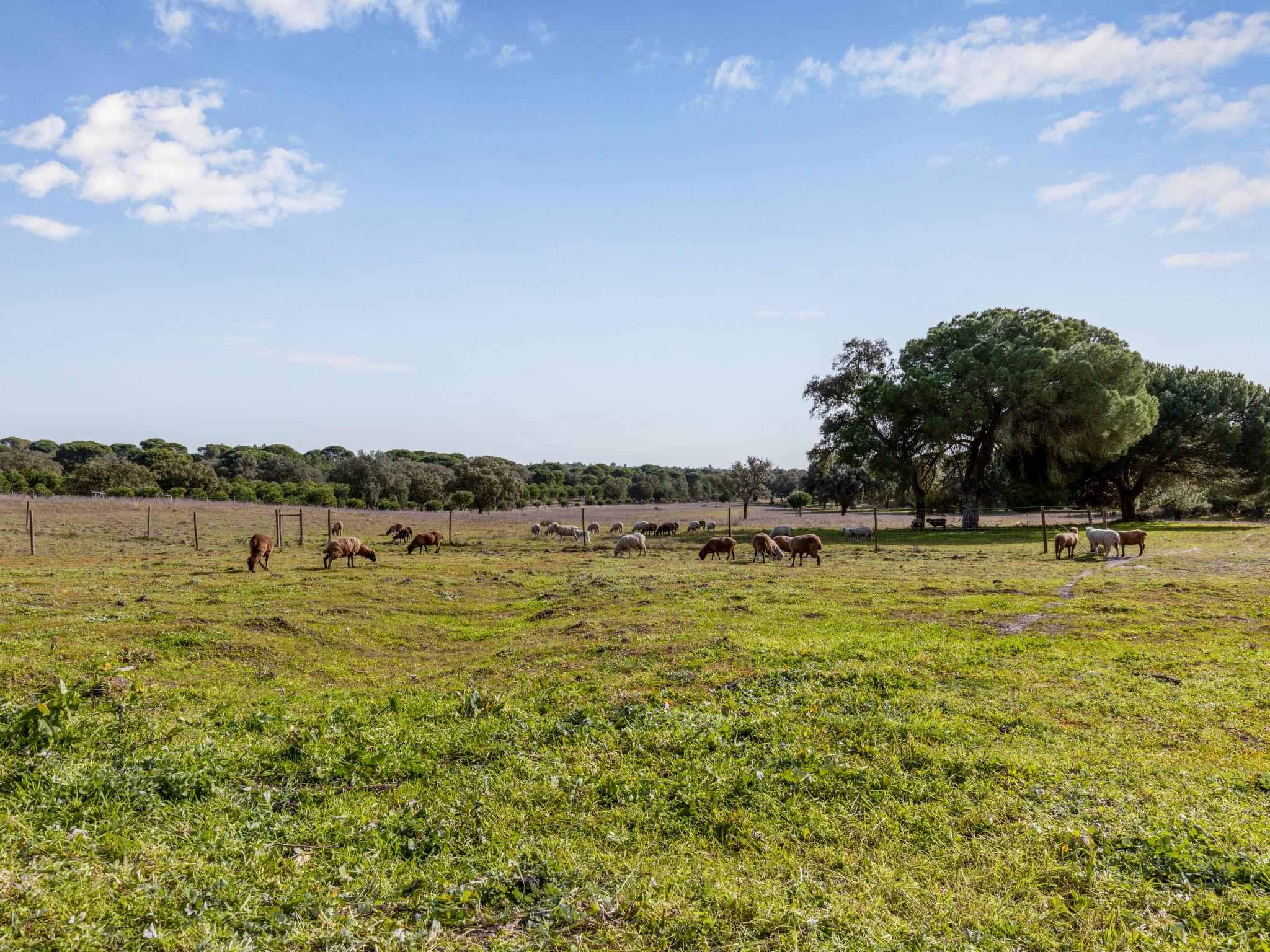 Very beautiful country house "Quinta de Santa Emilia", renovated in 2021. 5 houses in the residence. In the hamlet Monte do Vale, in a secluded position, 44 km from the sea, in the countryside, in the woods. For shared use: property 37 ha with lawn, lawn for sunbathing, natural pond, swimming pool angular (14 x 6 m, depth 90 - 200 cm, seasonal availability: 01.Jan. - 31.Dec.). Outdoor shower, terrace. In the house: lounge, billiard table, playroom, washing machine (for shared use). Motor access (3 km via unmade road). Parking on the premises. Supermarket 16 km, shopping centre 40 km, restaurant 7 km, sandy beach "Comporta" 44 km. Nearby attractions: Alcácer do Sal 15 km, Setúbal 40 km, Aeroporto Lisboa 80 km. The owner does not accept any youth groups. Please note: the owner lives on the same property. Motorway 100 m from the property. Additional accommodations can be booked. Property ref. PT7580.1&.1.2.3 is situated on the same property.