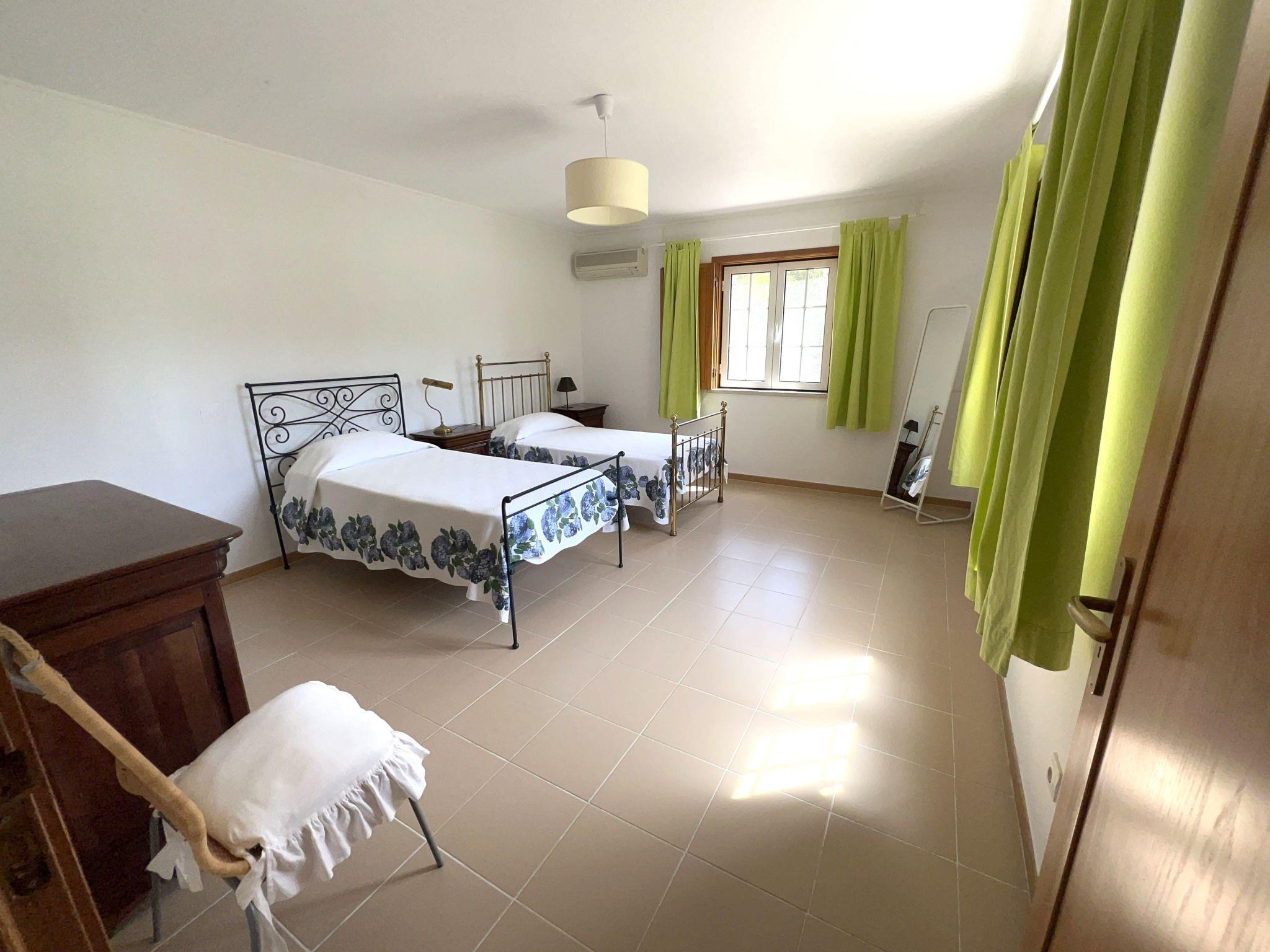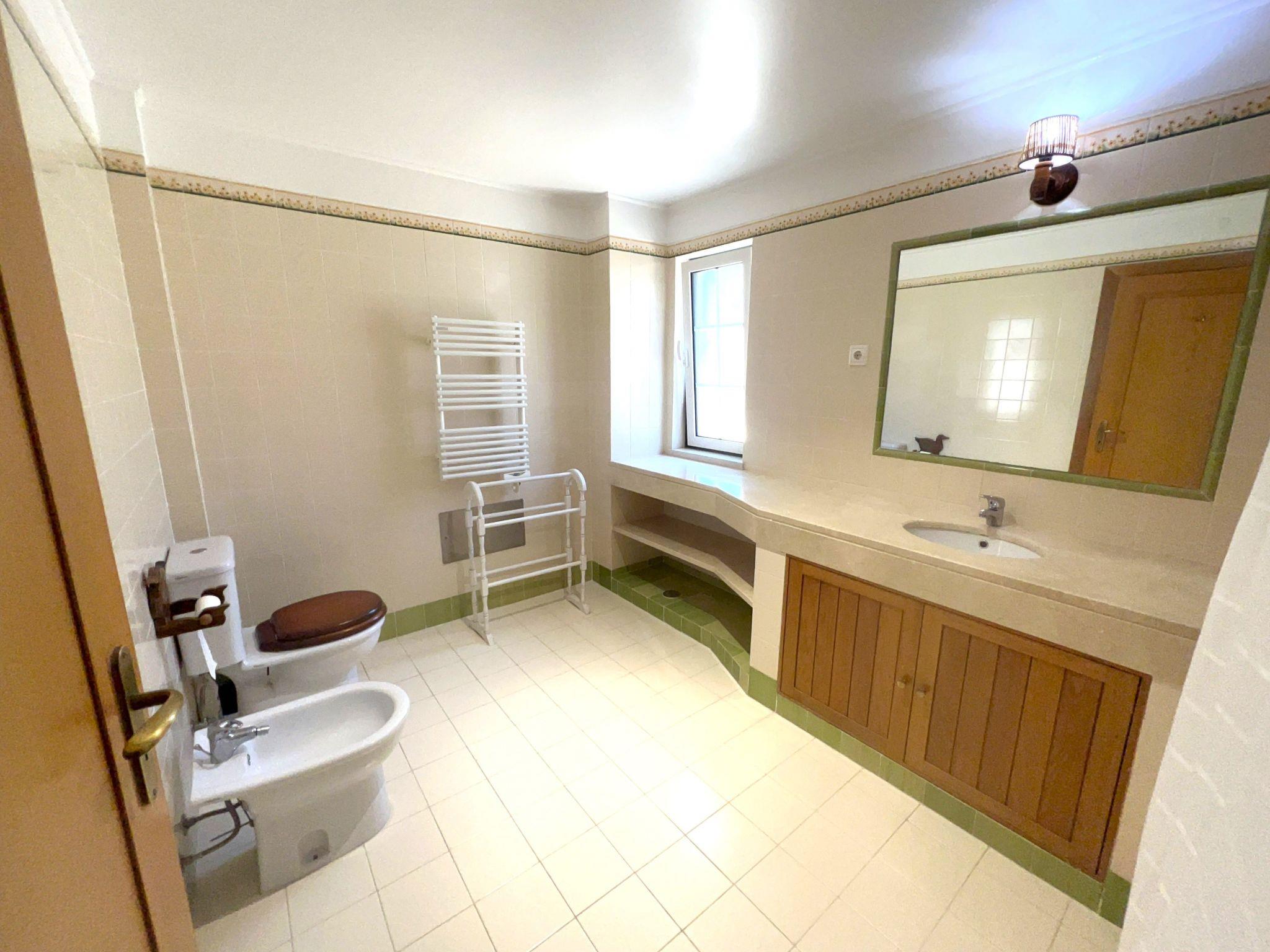 "Cegonha", 5-room villa 200 m2. Very cosy furnishings: living room with dining table, cable TV and flat screen. 2 rooms, each room with 2 beds (90 cm, length 200 cm). 2 rooms, each room with 1 french bed (160 cm, length 200 cm). Kitchen (oven, dishwasher, 4 ceramic glass hob hotplates, toaster, kettle, microwave, freezer, electric coffee machine, Capsules for coffee machine (Nespresso not incl)). 3 bathrooms. Terrace furniture, barbecue, deck chairs. View of the swimming pool and the garden. Facilities: washing machine, iron, children's high chair, baby cot for up to 2 year olds, hair dryer. Internet (WiFi, free). Parking at the house. Please note: suitable for families. Fire extinguisher. 89/AL