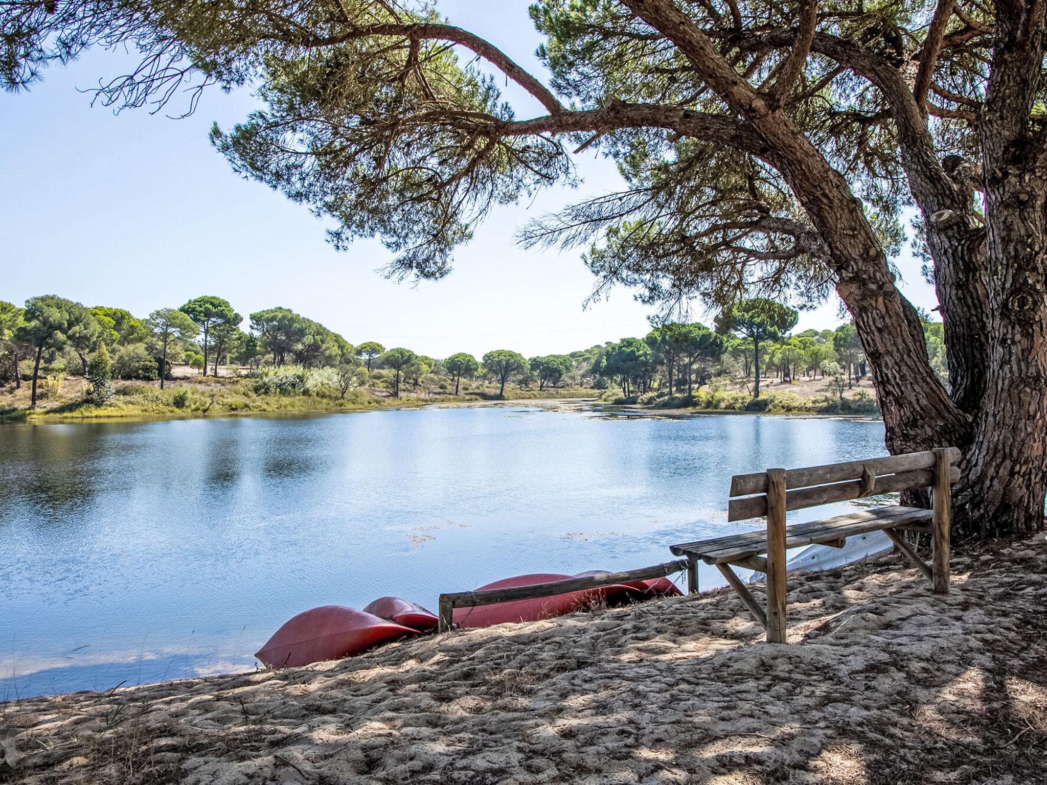 Large "rustico" cottage "Villa Cegonha". 102 houses in the resort. 14 km from the centre of Alcácer do Sal, 14 km from the centre of Comporta, in a secluded, quiet position, 16 km from the sea, 1.6 km from the river, in the countryside, in the woods. For shared use: property 997 ha (fenced). Tennis (2 x hard court) (extra), basketball (extra), children's playground. Private: property (fenced), swimming pool angular (6 x 12 m, depth 110 - 190 cm, seasonal availability: 01.Jan. - 31.Dec.). Outdoor shower, barbecue. In the complex: reception, restaurant, table tennis, table football, air conditioning, washing machine. Parking on the premises. Supermarket 2 km, restaurant 2 km, bus stop 15.1 km, sandy beach "Praia da Comporta" 16 km, lake Herdade de Montalvo 50 m. Marina 31 km, golf course (18 hole) 30 km, tennis, riding stable, walking paths from the house 50 m. Nearby attractions: Comporta 6200 km, Praia fluvial, da comporta 9.3 km, Estação Arqueológica de Abul 35.8 km, Tróia 30.1 km, Alcácer do Sal 14.4 km, Viveiro Florestal da Mata Nacional 16.8 km. Please note: car recommended. Suitable for families. Loading and unloading of baggage is possible at the holiday house. 24hr guard.