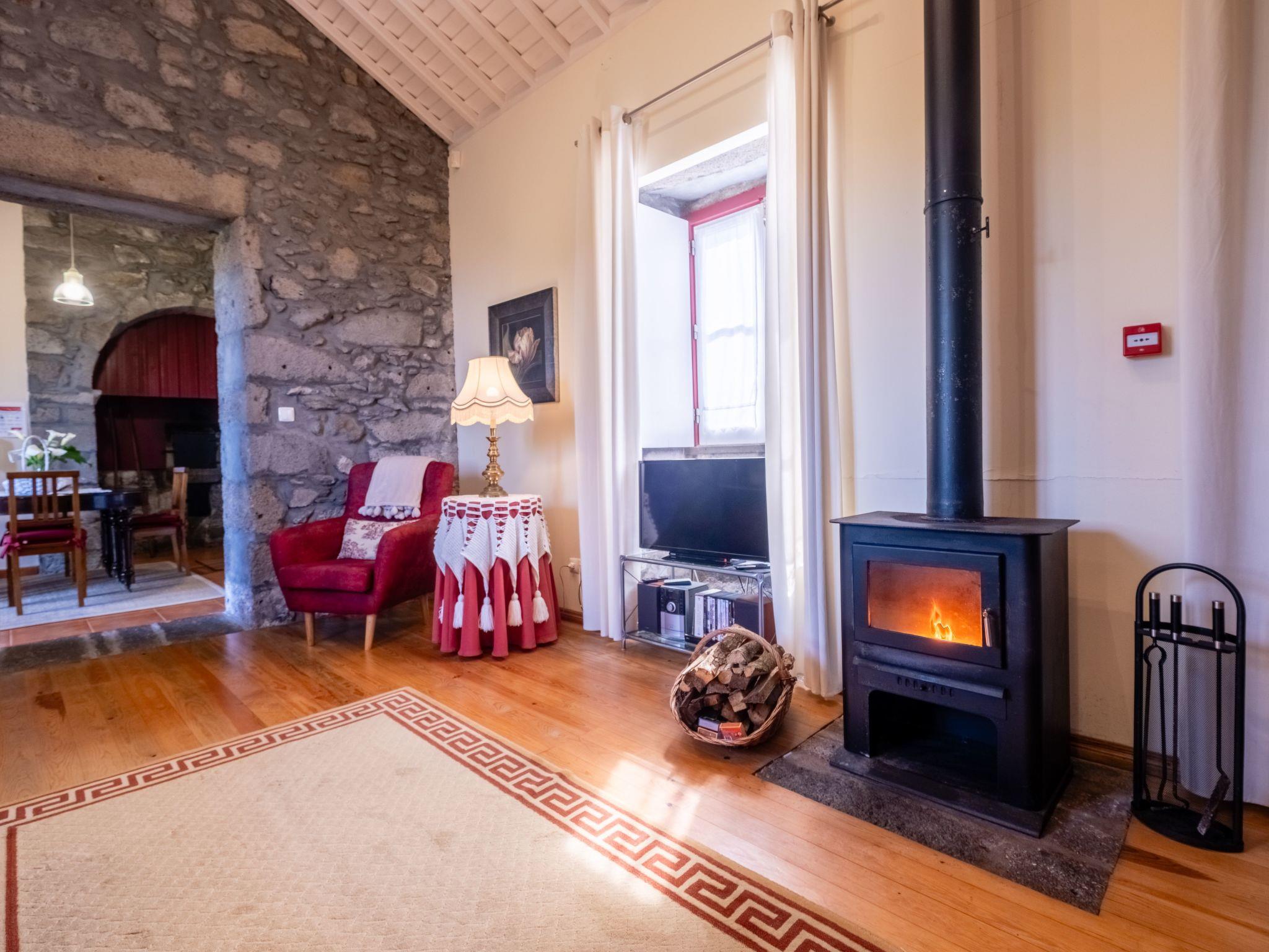 The interior of CASA DA FONTE features a harmony of past and present. Guests will be greeted by beautifully restored antique furniture perfectly coexisting with modern amenities and contemporary furnishings. The house is fully equipped for guests with reduced mobility and includes a cozy double bedroom, a living room adorned with a traditional wood-burning stove, a modern kitchen that still retains a traditional wood-burning oven, and a well-appointed bathroom. This seamless integration of elements ensures a stay that is both comfortable and steeped in history.