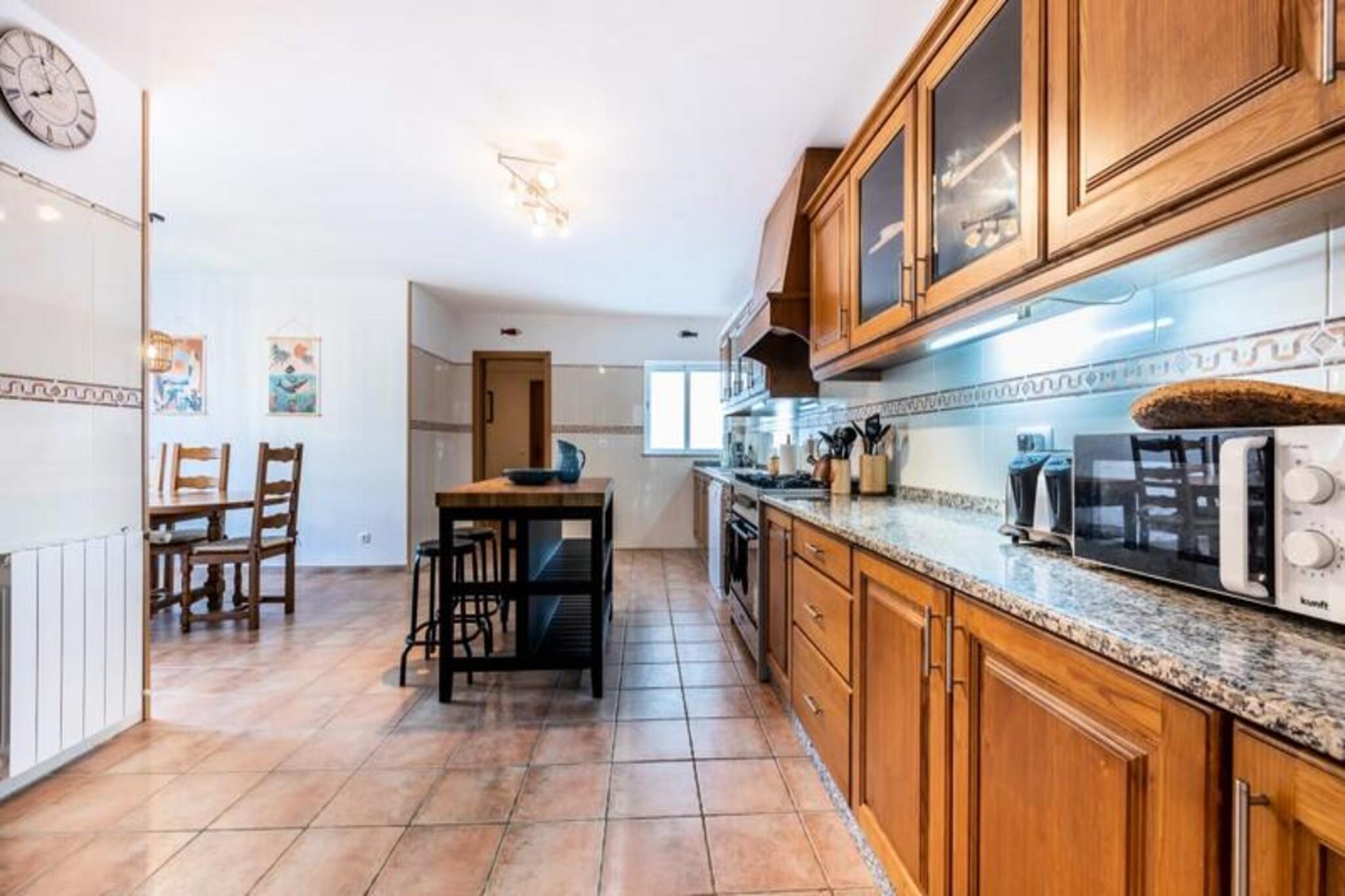 I hjertet af Costa Vicentina naturreservat inviterer Casa dos Sonhadores dig til at opleve Algarves fredfyldte skønhed. Denne middelhavsvilla er omgivet af frodige landskaber og ligger kun fem minutters kørsel fra uberørte strande, hvilket gør den til det perfekte tilflugtssted for familier eller grupper, der søger afslapning og eventyr. Forestil dig at vågne op til naturens blide lyde, nyde din morgenkaffe på den solbeskinnede terrasse og planlægge en dag med udforskning eller fritid ved poolen. Villaens interiør er designet med komfort og stil i tankerne. Den store entré fører til en rummelig stue med glasdøre, der åbner ud til poolterrassen. En hævet spiseplads har udsigt over dette rum og skaber en problemfri overgang mellem inde- og udeliv. Det fuldt udstyrede køkken er perfekt til at tilberede måltider, mens de fem soveværelser, hver med indbyggede skabe, tilbyder afslappende oaser for op til 12 gæster. Moderne badeværelser med eksklusive inventar bidrager til den luksuriøse følelse, og faciliteter som aircondition, højhastigheds-Wi-Fi og centralvarme sikrer et behageligt ophold året rundt. Gå udenfor og oplev en privat pool omgivet af terrasser og en frodig have, der vedligeholdes året rundt af et vandingssystem. Udendørskøkkenet, komplet med grill, pizzaovn og kogeplade, er ideelt til spisning under åben himmel. Uanset om du slapper af ved poolen, nyder en familiegrillfest eller nyder den delvise havudsigt fra den sydvendte terrasse, føles hvert øjeblik her specielt. Ud over villaen tilbyder naturreservatet Costa Vicentina utallige vandrestier gennem fyrreskove og langs dramatiske klipper. I nærheden tilbyder den historiske by Aljezur og den pulserende by Lagos kulturelle og kulinariske lækkerier, mens verdenskendte strande som Arrifana og Monte Clérigo er et paradis for både surfere og solbadere. Med Faro Lufthavn kun 75 minutter væk er Casa dos Sonhadores din port til en uforglemmelig Algarve-flugt.