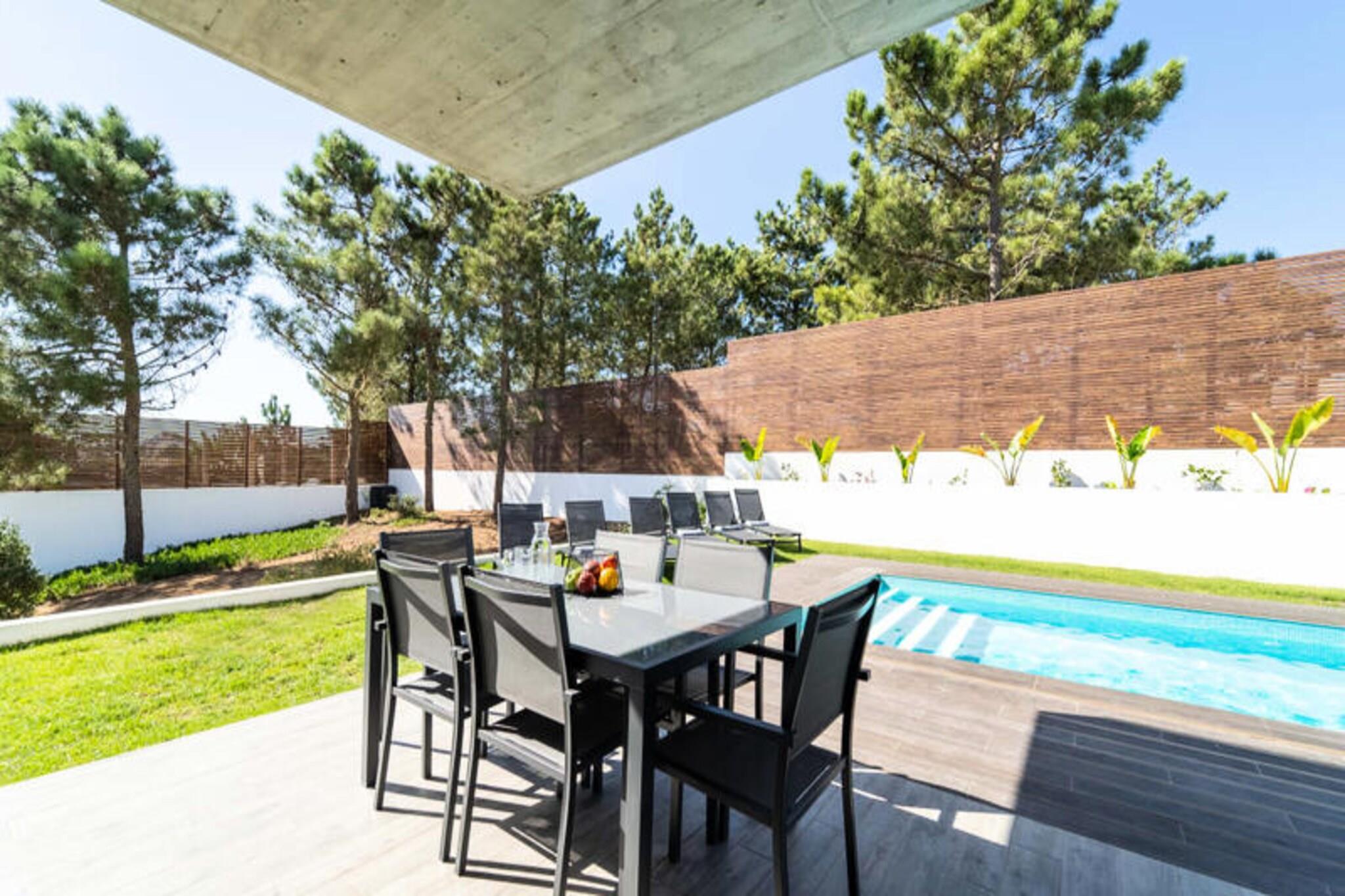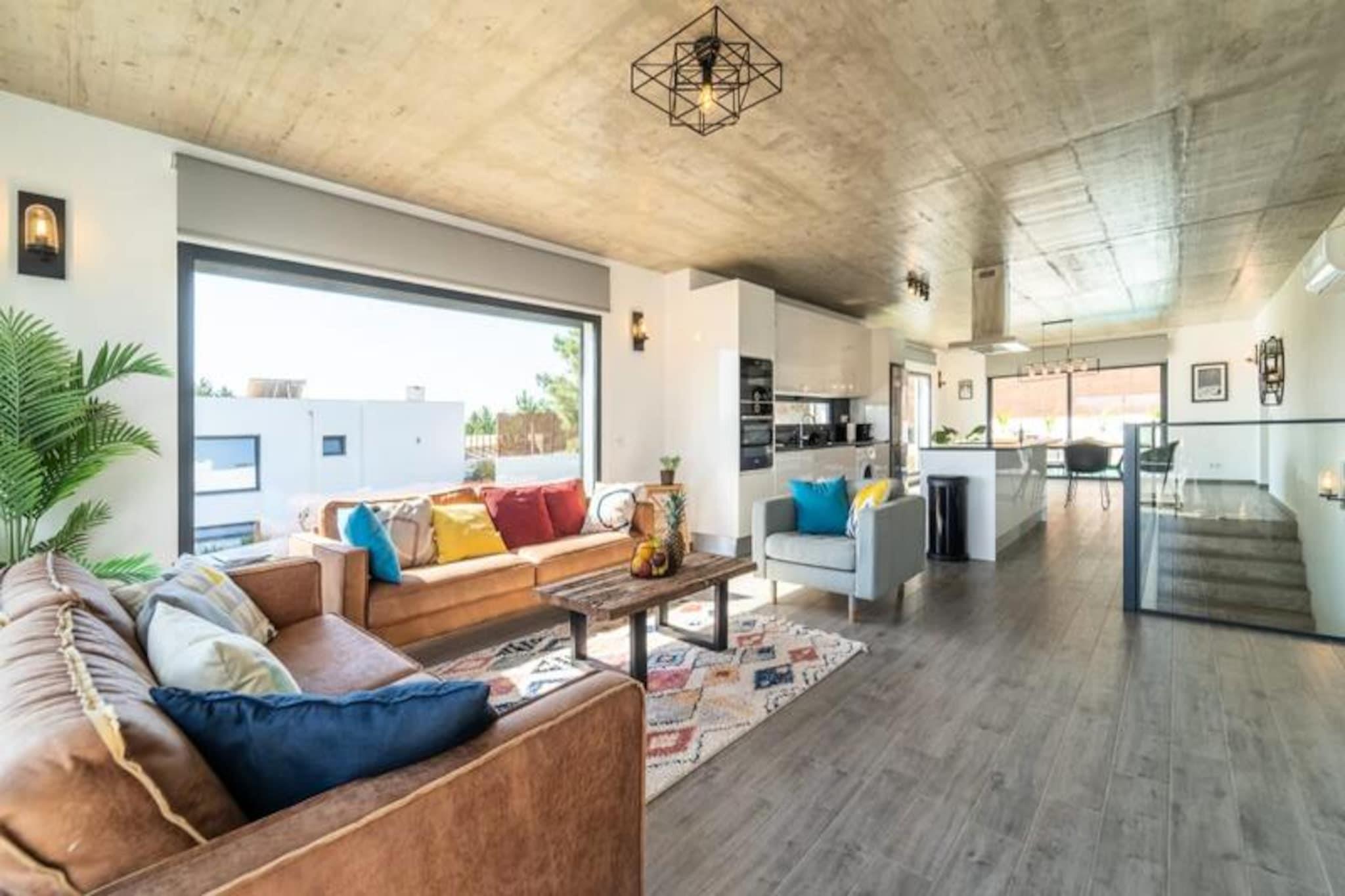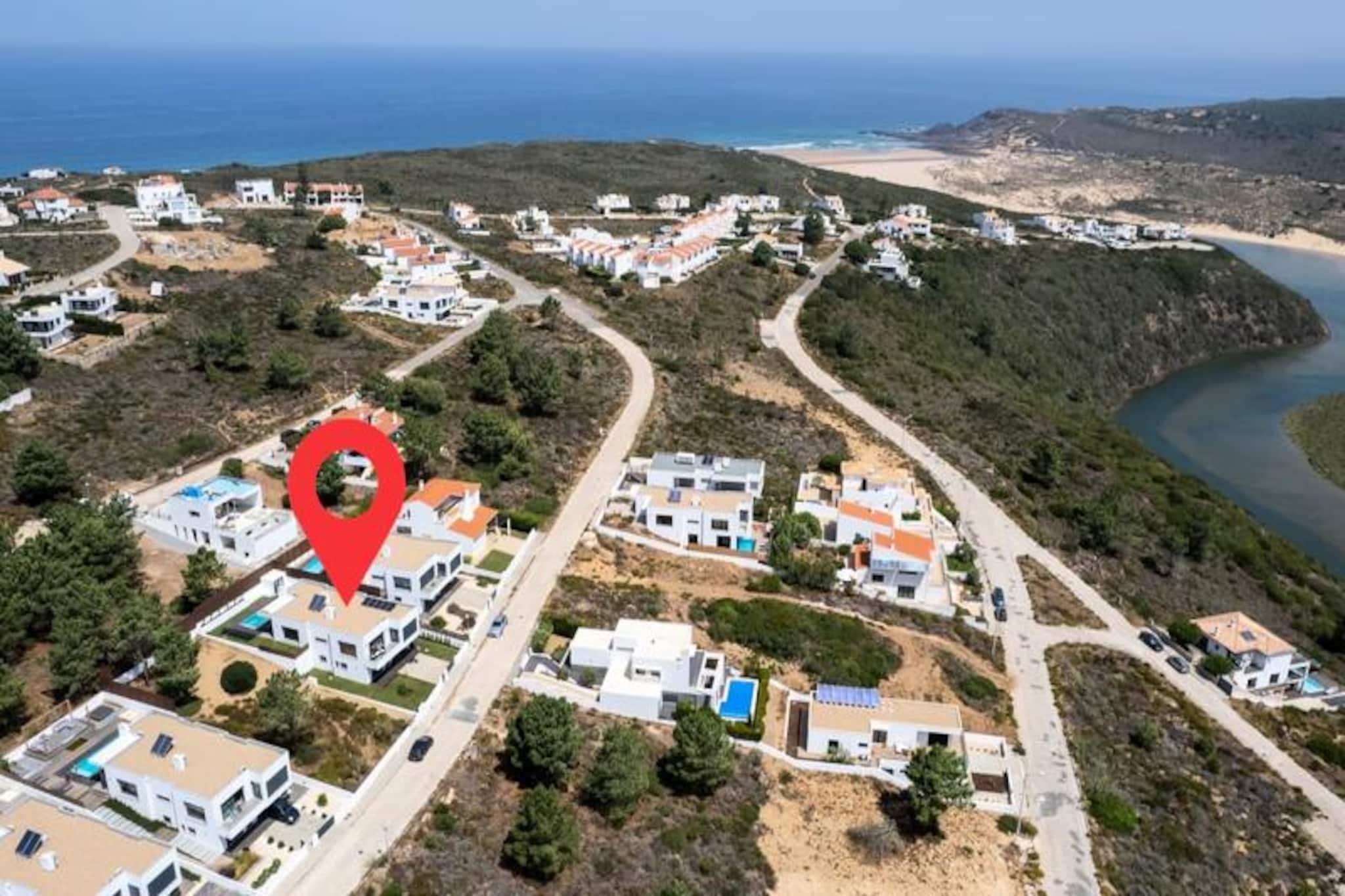Med udsigt over den fredfyldte Amoreira-flod og beliggende i den betagende naturpark Costa Vicentine, tilbyder denne fantastiske villa i Espartal en rolig oase kun få øjeblikke fra de gyldne sandstrande Monte Clérigo og Amoreira. Her skaber rytmen af ??Atlanterhavsbølgerne og den uspolerede naturs skønhed en idyllisk ramme for din næste ferie. Uanset om du søger eventyr eller afslapning, er denne villa en indgangsport til det bedste af Aljezurs kystcharme. Villaen kan prale af tre rummelige soveværelser, hver med eget badeværelse, hvilket sikrer privatliv og komfort for op til seks gæster. Det moderne åbne design forbinder problemfrit indendørs og udendørs opholdsrum med store panoramavinduer, der oversvømmer interiøret med naturligt lys og tilbyder en fantastisk udsigt over det omkringliggende landskab. Nyd den private pool, sauna og flere terrasser, perfekt til at nyde Algarve-solen. Det fuldt udstyrede køkken, komplet med high-end Samsung-apparater og gennemtænkte detaljer som en Nespresso-maskine og lokal kunst, sikrer et luksuriøst og hjemligt ophold. For digitale nomader er der højhastigheds-Wi-Fi tilgængeligt overalt på ejendommen. Gå udenfor og oplev en privat oase med grillplads, udendørs bruser, surfbrætstativ og tørreplads til våddragter, der henvender sig til surfere og friluftsentusiaster. Villaens beliggenhed i Espartal giver nem adgang til områdets surfspots i verdensklasse, naturskønne kyststier og charmerende lokale restauranter. Monte Clérigo-stranden ligger kun en kort gåtur væk, og den maleriske Amoreira-strand kan nås ved lavvande for et unikt eventyr. Ved at vælge denne villa forkæler du ikke kun dig selv med et luksuriøst ophold, men bidrager også til en større sag. Alt overskud fra din booking doneres til Luena Foundation, der støtter børns rettigheder verden over. Skab uforglemmelige minder i dette fredelige tilflugtssted, hvor harmonien mellem naturen og komfort venter.