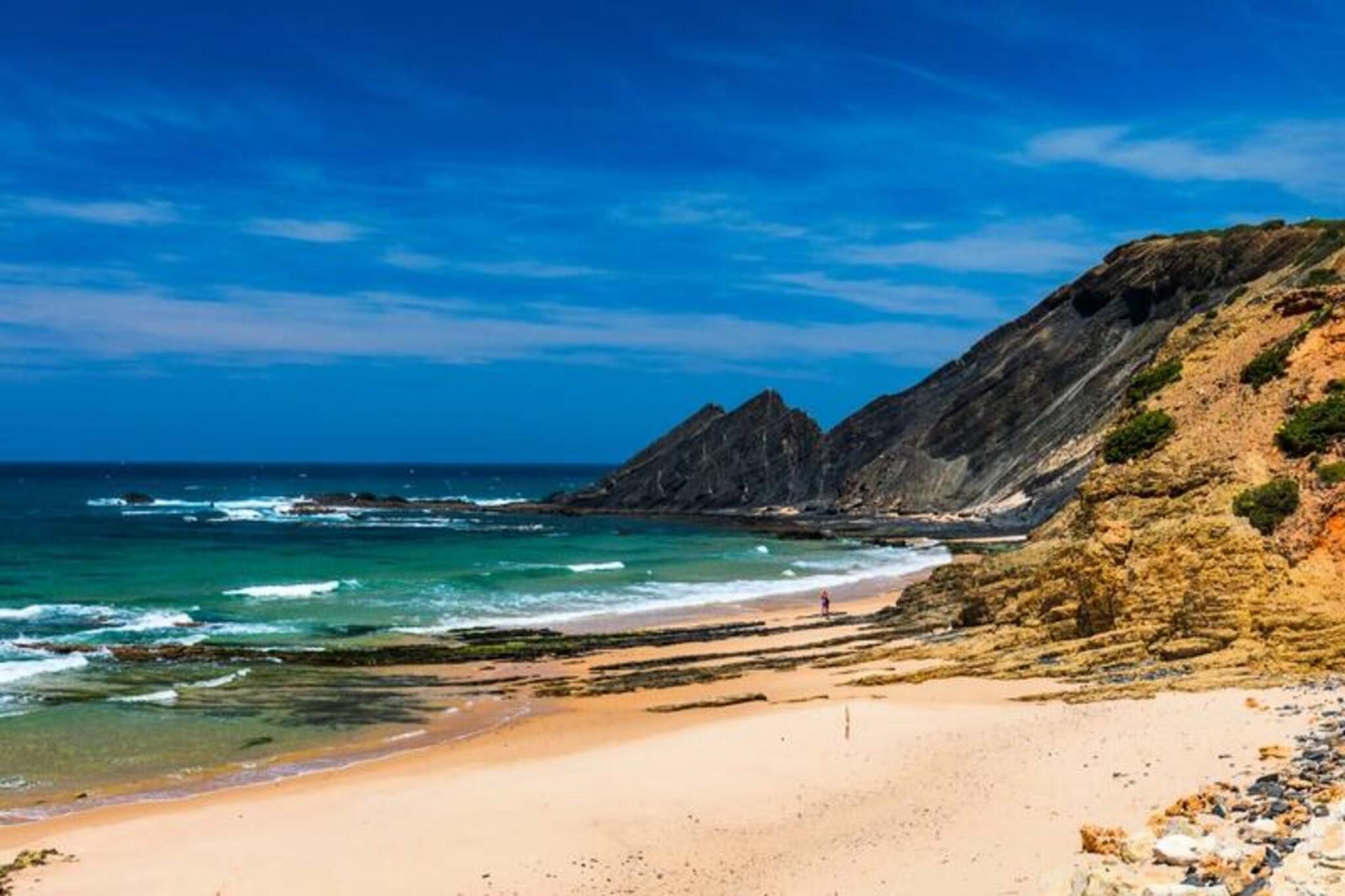 Væk dine sanser til skønheden ved Portugals Algarvekyst i denne fantastiske toetagers villa, hvor havets melodi hilser dig velkommen hver morgen. Beliggende i den fredfyldte Vale da Telha, tilbyder dette hjem en perfekt blanding af ro og eventyr, med de barske klipper og naturskønne stier i Rota Vicentina kun en kort gåtur væk. Uanset om du er naturelsker, en familie, der søger kvalitetstid, eller et par, der søger romantik, lover denne villa en uforglemmelig flugt. Træd indenfor i Casa Da Bauhinia og lad dig omfavne af dens varme og indbydende atmosfære. Stueetagen kan prale af et rummeligt, fuldt udstyret køkken, der åbner op til en spiseplads med udsigt over den private saltvandspool. En hyggelig tv-stue, to dobbeltværelser og et familiebadeværelse fuldender denne etage. Ovenpå tilbyder soveværelset panoramaudsigt over havet, et ensuite badeværelse og adgang til en privat terrasse. Yderligere soveværelser har også ensuite badeværelser og balkoner med udsigt over havet, hvilket sikrer komfort og privatliv for alle gæster. Udenfor er villaen et paradis for afslapning og sjov. Dyk ned i saltvandspoolen, nyd en grillfest på den overdækkede terrasse, eller udfordr dine ledsagere til et spil boccia eller tennis i den store, indhegnede have. Med en petanquebane, fodboldnet og poolbord er der underholdning for alle. Ejendommen inkluderer også privat parkering, Wi-Fi og alt det nødvendige for en ubekymret ferie. Denne villa, der ligger i Vicentina Naturpark, er en indgangsport til Algarves uspolerede skønhed. Udforsk de nærliggende strande Arrifana og Monte Clérigo, kun 5-10 minutters kørsel væk, eller besøg den charmerende by Aljezur for lokale restauranter og shopping. Med Faro Lufthavn kun 80 minutter væk er dit drømmekystparadis tættere på, end du tror. Book dit ophold på Casa Da Bauhinia og skab minder for livet.