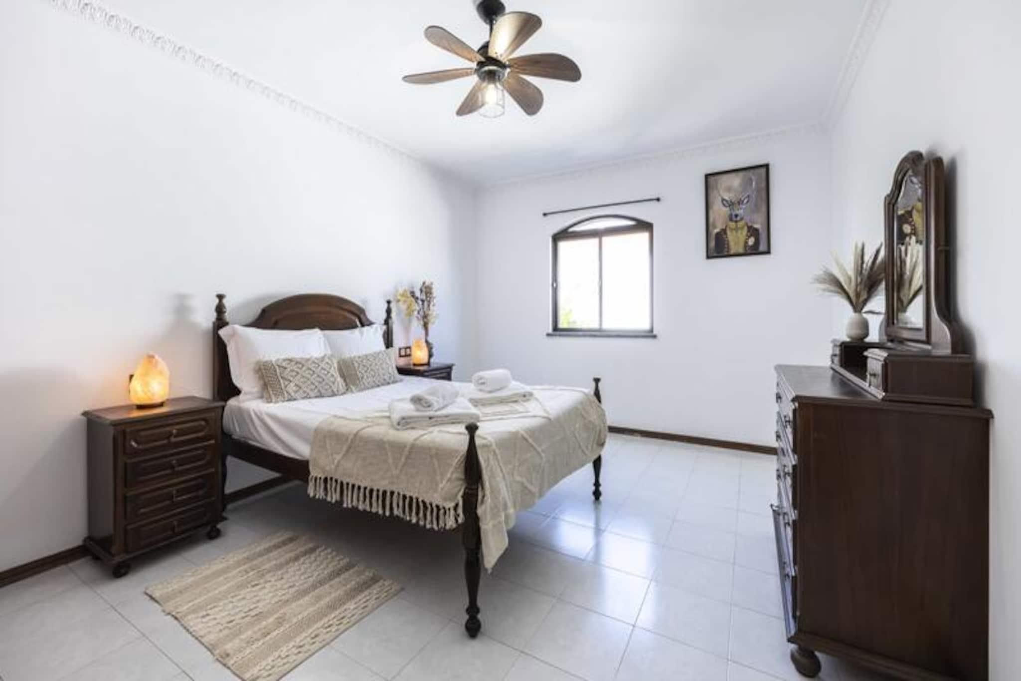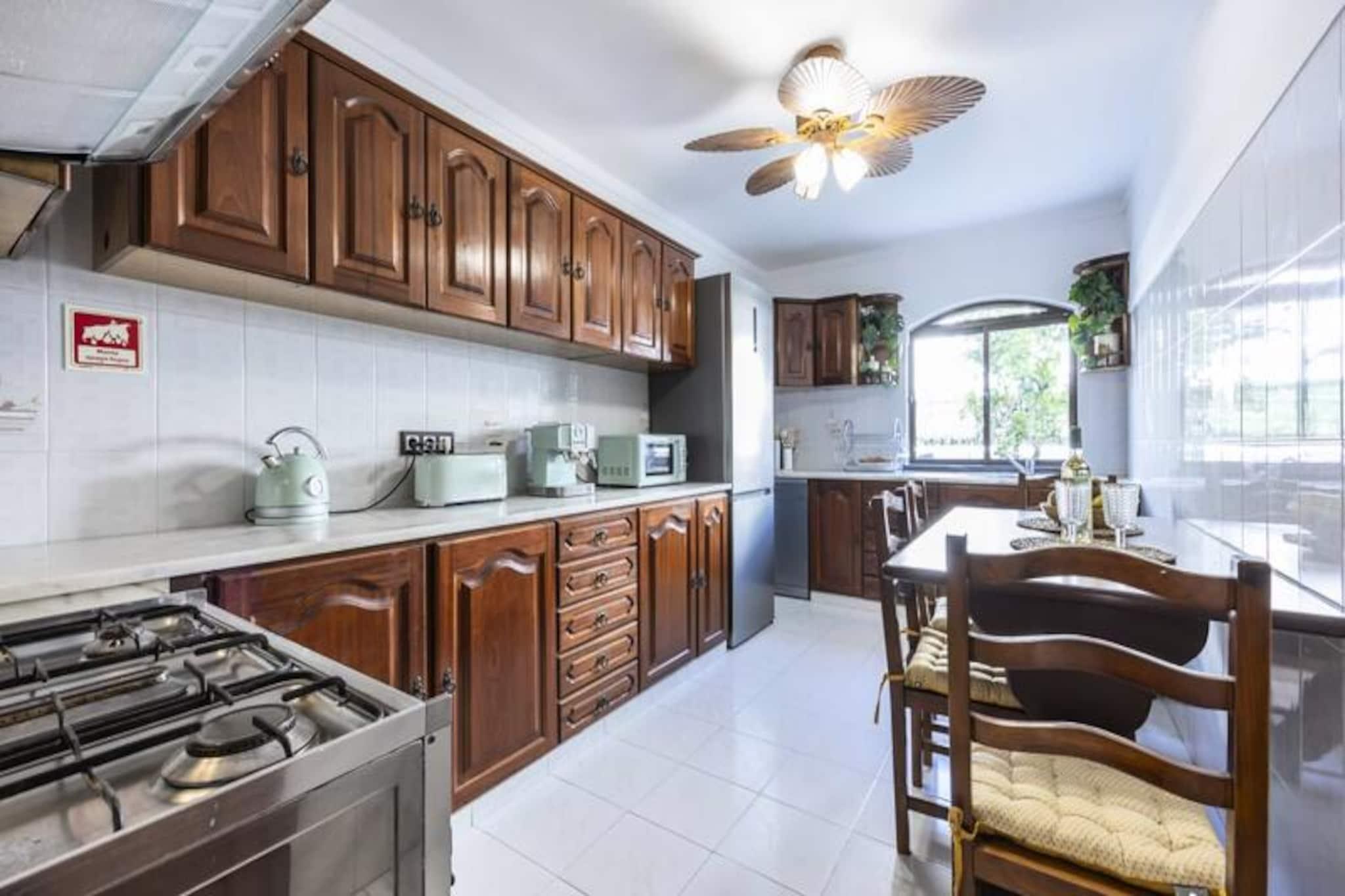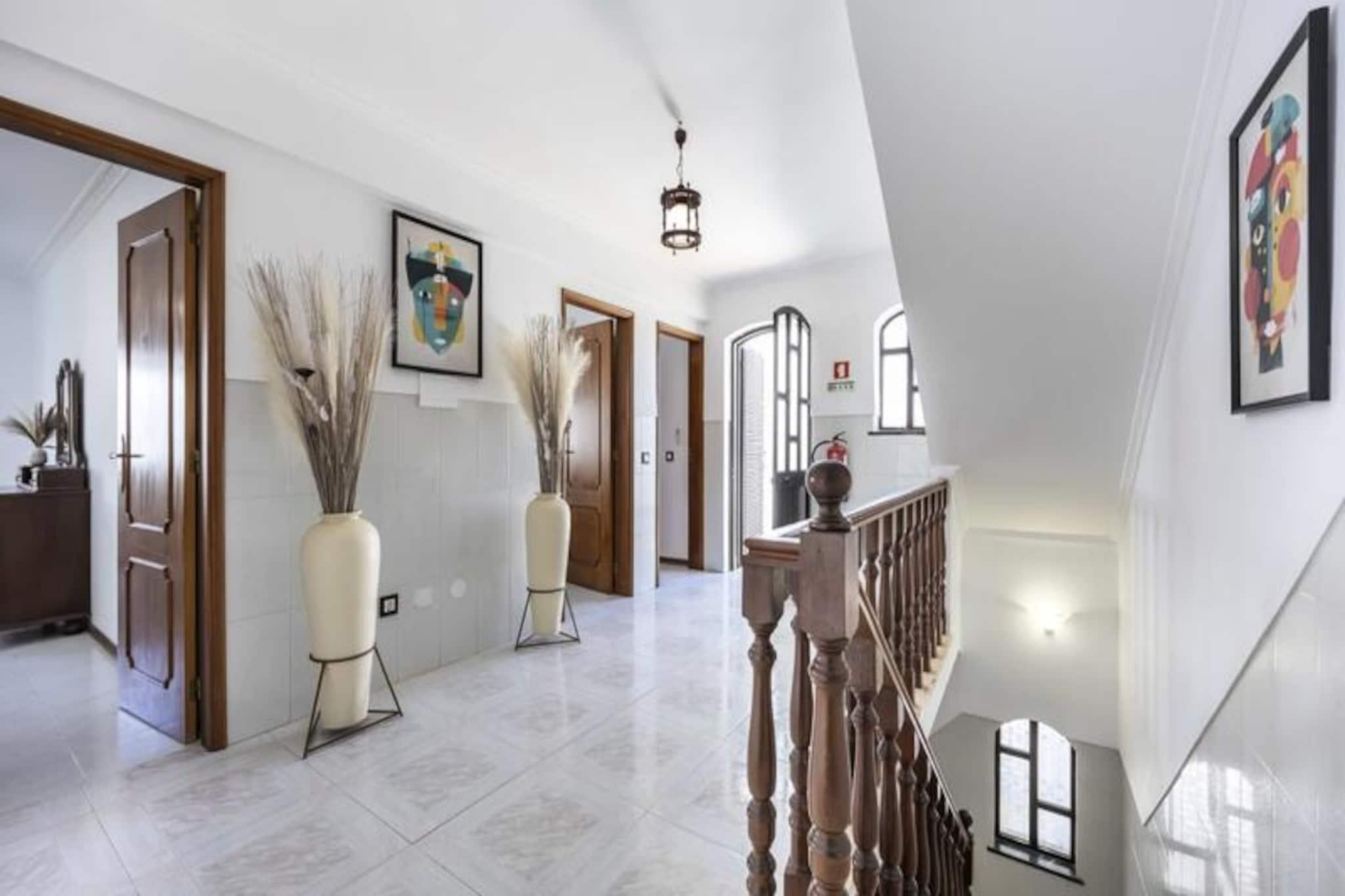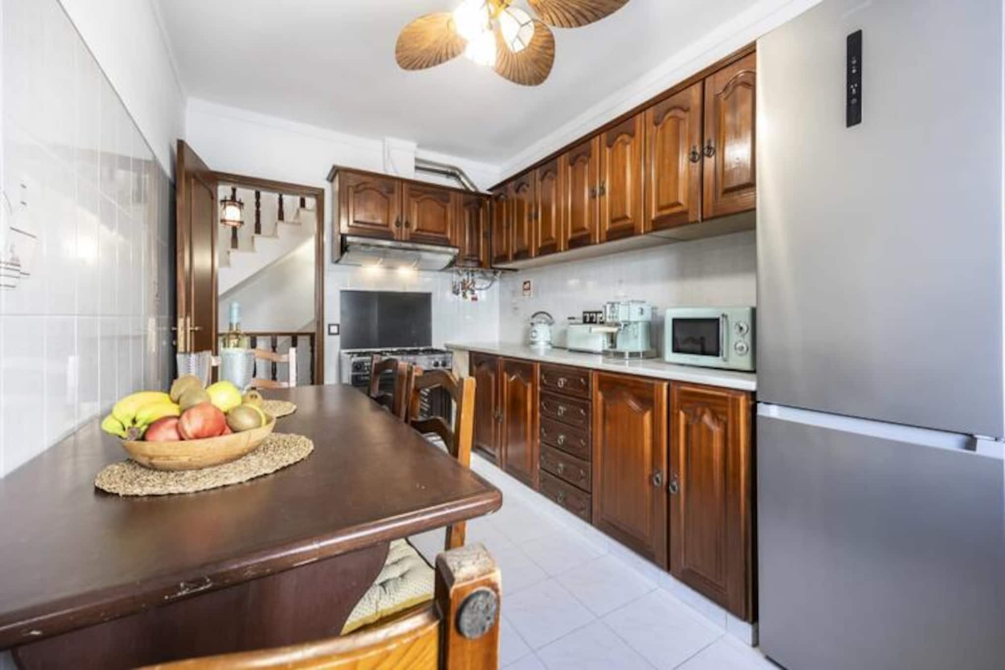 I den fredfyldte kystby Altura inviterer dette rummelige rækkehus med 4 soveværelser dig til at slappe af under Algarves sol. Kun en kort 10-15 minutters gåtur fra den gyldne sandstrand er dette hjem et paradis for familier eller vennegrupper, der søger en blanding af afslapning og eventyr. Med sin sydøstvendte orientering er ejendommen badet i sollys hele dagen, hvilket skaber en varm og imødekommende atmosfære. Træd indenfor og oplev et gennemtænkt designet rum. Stueetagen har en lys og luftig stue med komfortable siddepladser og en spiseplads, perfekt til at samles efter en dag med udforskning. Det fuldt udstyrede køkken gør madlavning til en leg, mens soveværelset i stueetagen med eget badeværelse og kontorområde tilbyder både komfort og praktisk anvendelighed. Ovenpå er der tre smukt møblerede soveværelser og to ekstra badeværelser, der giver rigelig plads til alle. Private balkoner på øverste etage er ideelle til at nippe til morgenkaffen eller nyde eftermiddagssolen. Loftsventilatorer i alle værelser sikrer et køligt og behageligt ophold, selv på de varmeste dage. Udenfor venter et grillområde på dejlige sommeraftener, og sikker parkering er tilgængelig for din bekvemmelighed. Rækkehuset er perfekt placeret, kun en kort gåtur fra Alturas livlige bymidte, hvor du kan udforske lokale butikker, restauranter og caféer. For naturelskere tilbyder den nærliggende naturpark Ria Formosa betagende landskaber og muligheder for kajaksejlads eller paddleboarding. En kort køretur tager dig til Tavira eller endda over grænsen til Spanien, hvilket gør dette til en fremragende base for at udforske Algarve og omegn. Uanset om du er her for at slappe af på stranden, udforske regionens naturlige skønhed eller blot nyde kvalitetstid med dine kære, lover dette charmerende rækkehus i Altura en uforglemmelig ferieoplevelse.