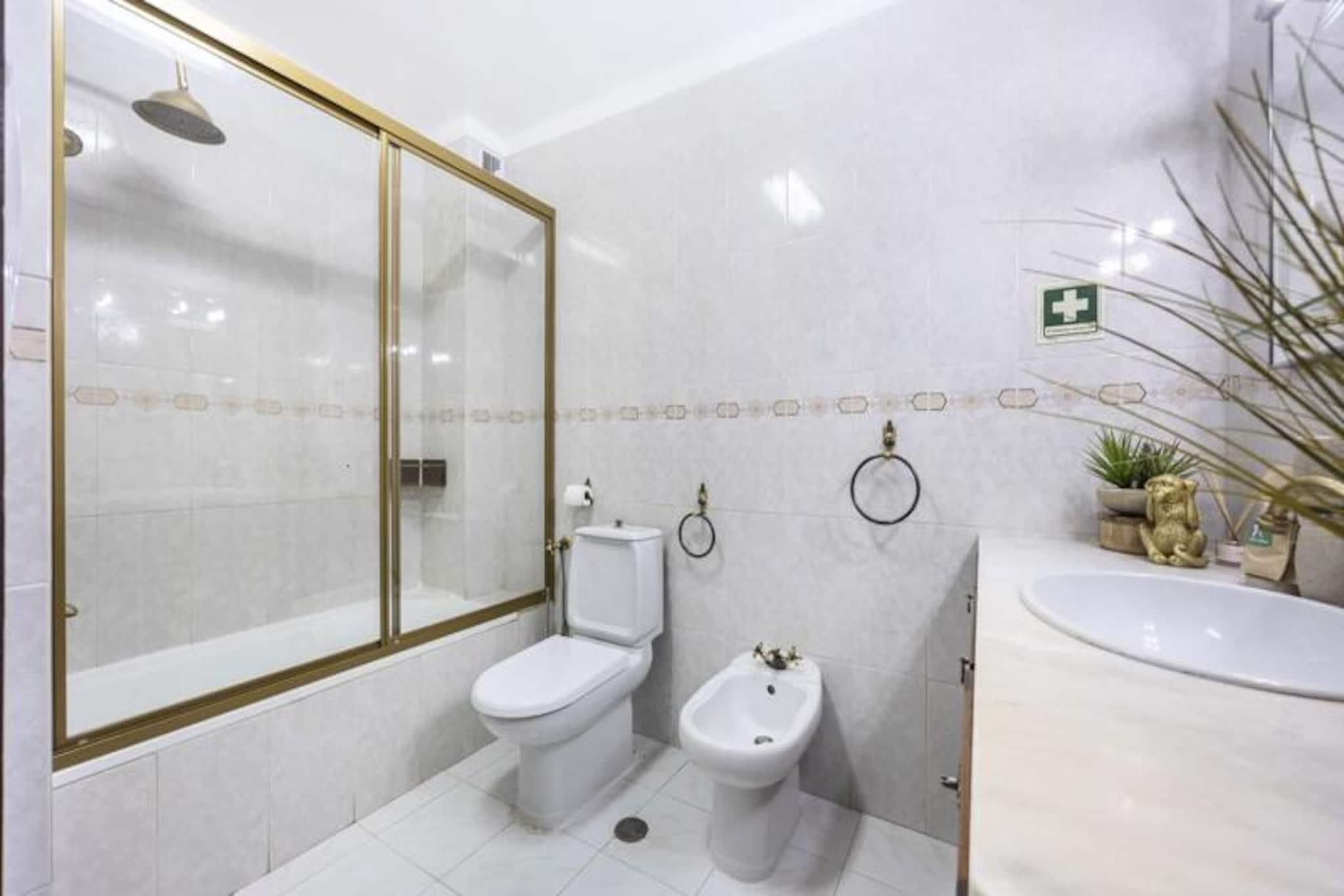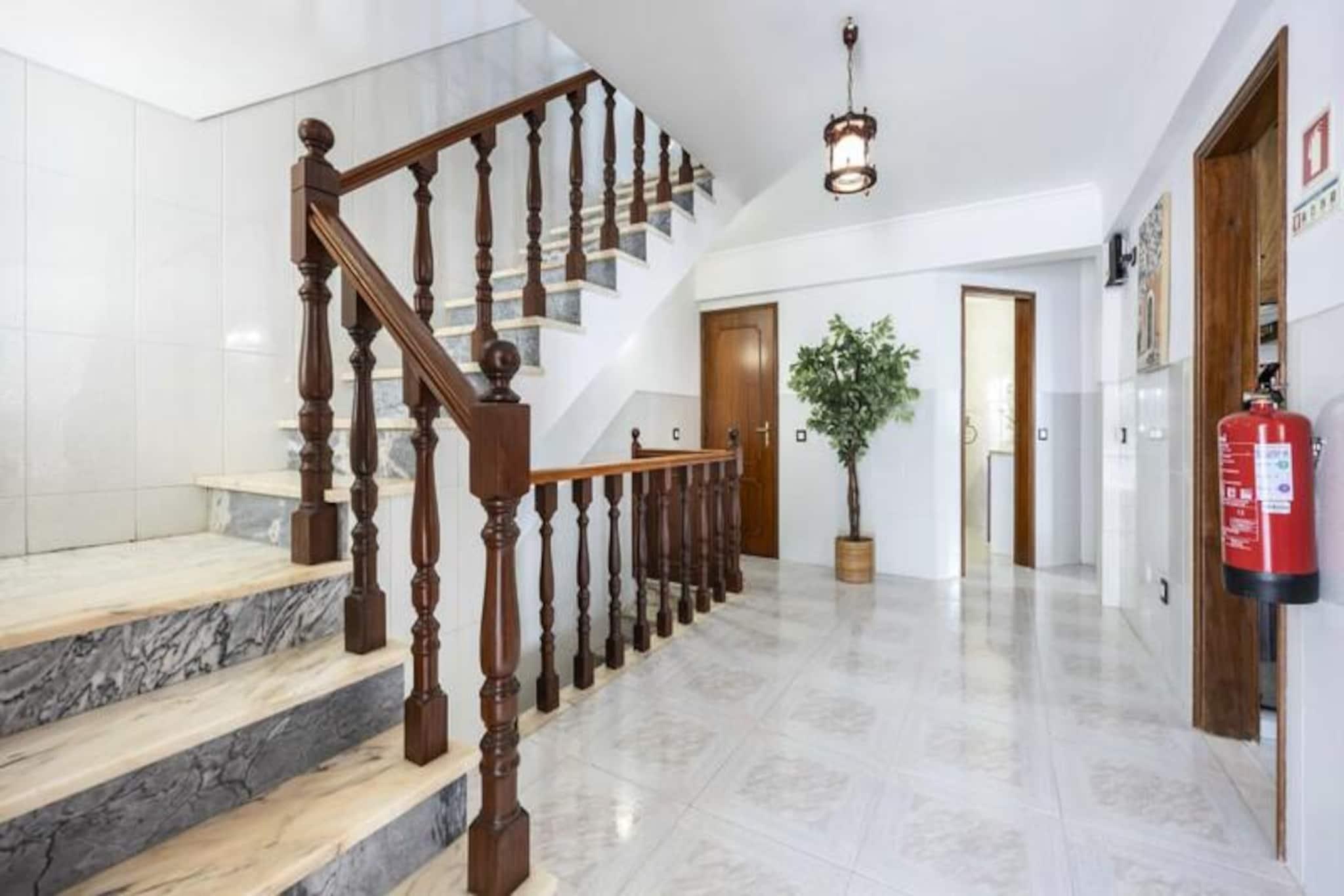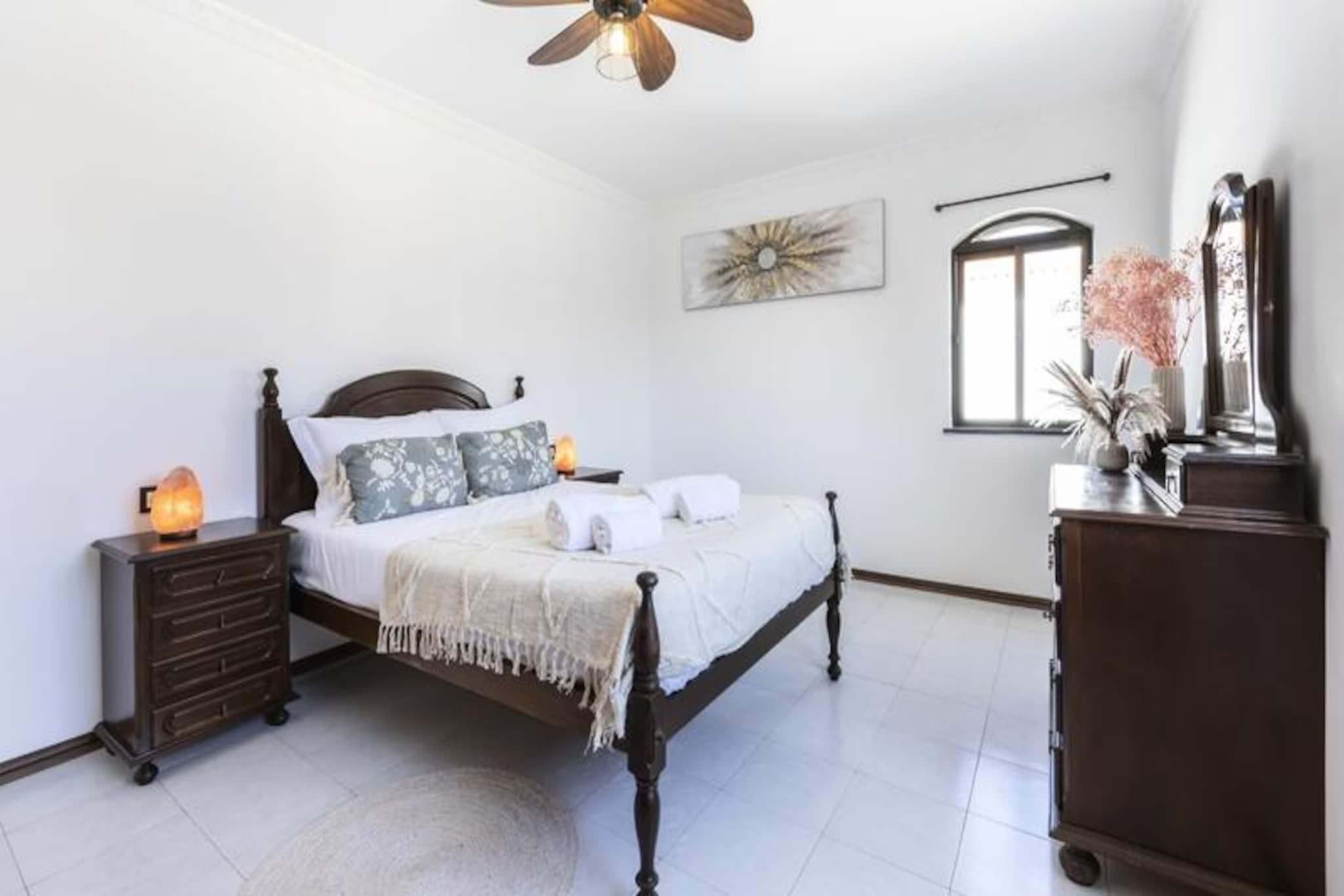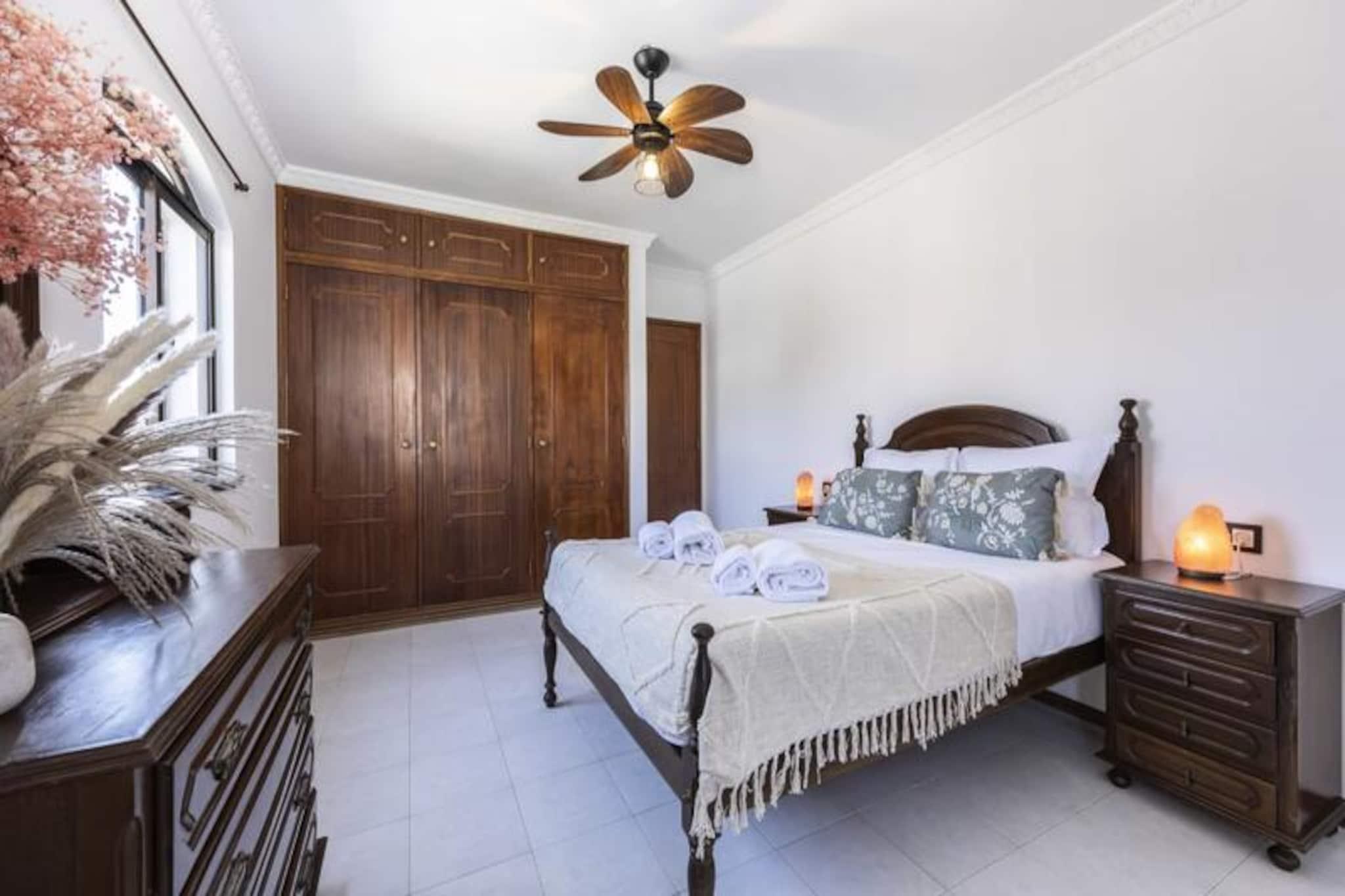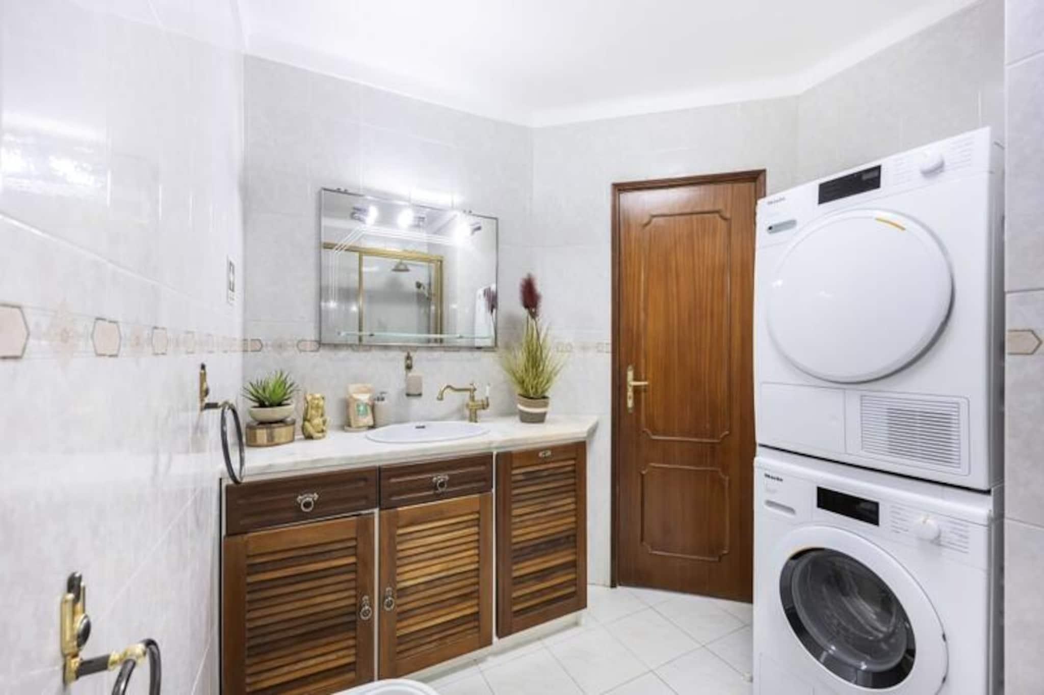 I den fredfyldte kystby Altura inviterer dette rummelige rækkehus med 4 soveværelser dig til at slappe af under Algarves sol. Kun en kort 10-15 minutters gåtur fra den gyldne sandstrand er dette hjem et paradis for familier eller vennegrupper, der søger en blanding af afslapning og eventyr. Med sin sydøstvendte orientering er ejendommen badet i sollys hele dagen, hvilket skaber en varm og imødekommende atmosfære. Træd indenfor og oplev et gennemtænkt designet rum. Stueetagen har en lys og luftig stue med komfortable siddepladser og en spiseplads, perfekt til at samles efter en dag med udforskning. Det fuldt udstyrede køkken gør madlavning til en leg, mens soveværelset i stueetagen med eget badeværelse og kontorområde tilbyder både komfort og praktisk anvendelighed. Ovenpå er der tre smukt møblerede soveværelser og to ekstra badeværelser, der giver rigelig plads til alle. Private balkoner på øverste etage er ideelle til at nippe til morgenkaffen eller nyde eftermiddagssolen. Loftsventilatorer i alle værelser sikrer et køligt og behageligt ophold, selv på de varmeste dage. Udenfor venter et grillområde på dejlige sommeraftener, og sikker parkering er tilgængelig for din bekvemmelighed. Rækkehuset er perfekt placeret, kun en kort gåtur fra Alturas livlige bymidte, hvor du kan udforske lokale butikker, restauranter og caféer. For naturelskere tilbyder den nærliggende naturpark Ria Formosa betagende landskaber og muligheder for kajaksejlads eller paddleboarding. En kort køretur tager dig til Tavira eller endda over grænsen til Spanien, hvilket gør dette til en fremragende base for at udforske Algarve og omegn. Uanset om du er her for at slappe af på stranden, udforske regionens naturlige skønhed eller blot nyde kvalitetstid med dine kære, lover dette charmerende rækkehus i Altura en uforglemmelig ferieoplevelse.