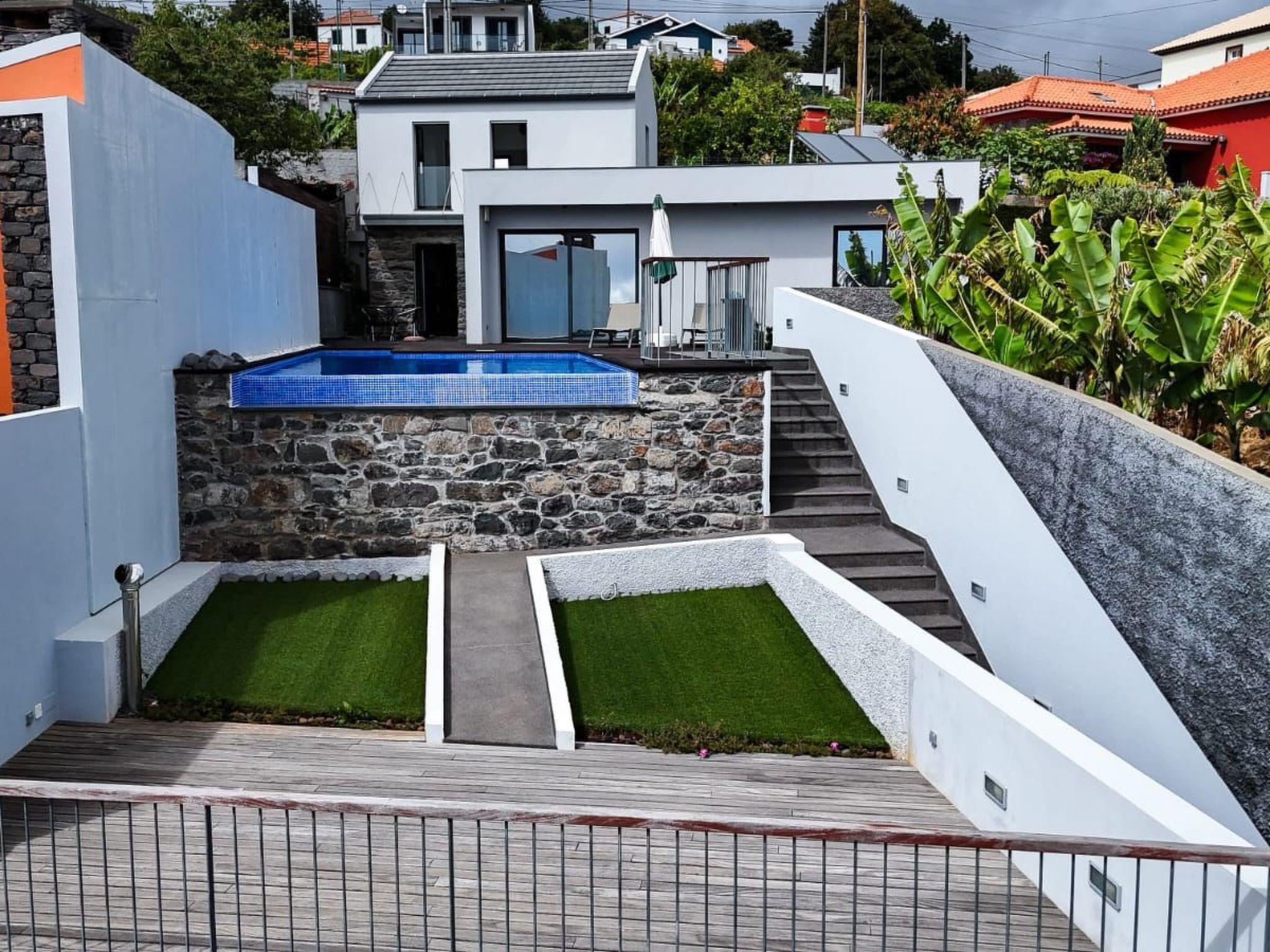This exclusive holiday villa with modern decor is located in the enchanting parish of Estreito da Calheta, on the southwest coast of the sunny Portuguese island of Madeira. It stands out for its minimalist style, relaxing environment and green spaces, where silence and rest predominate.