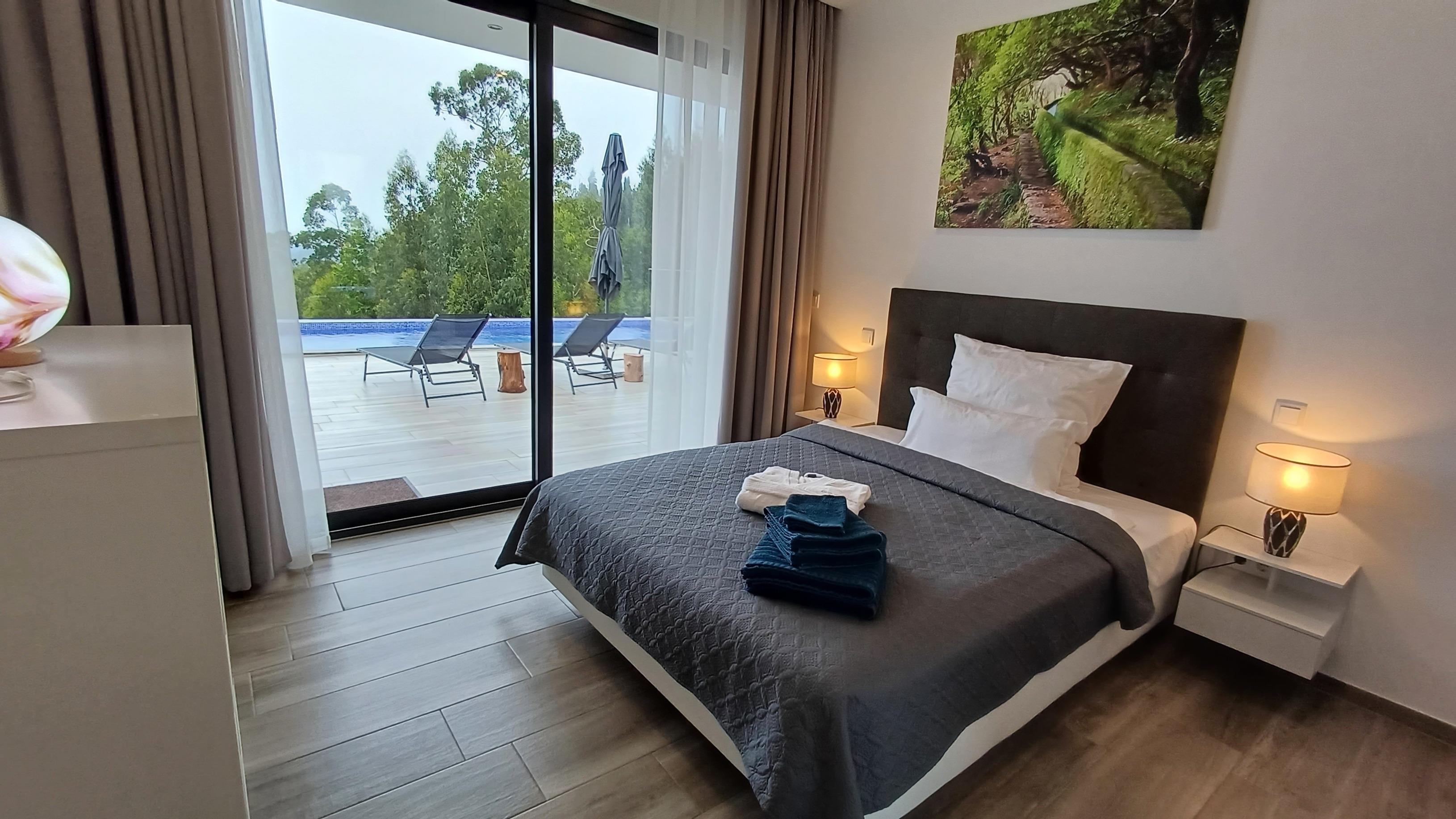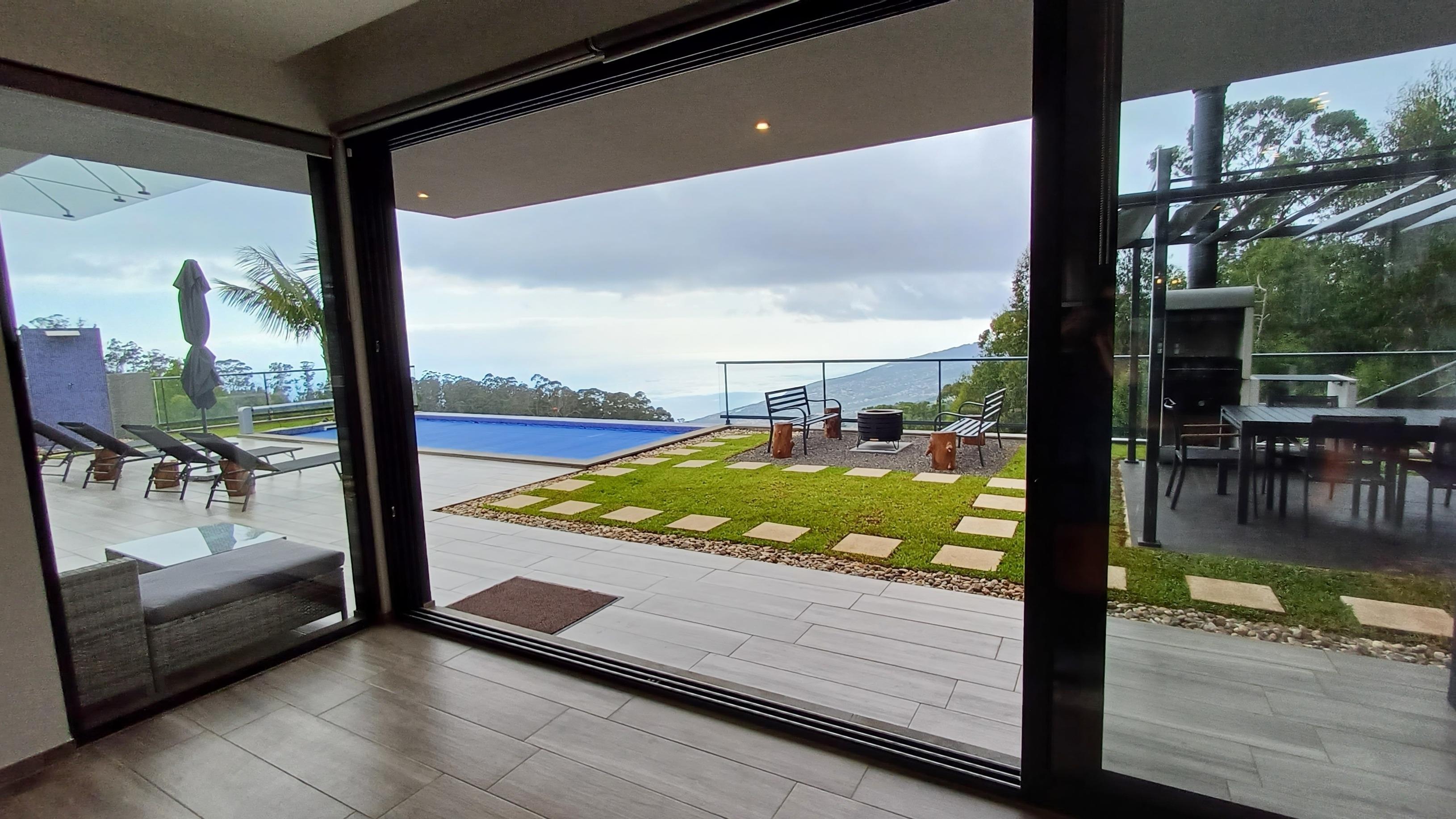 Neubau über den Dächern von Calheta in Mitten des örtlichen Eukalyptuswaldes. Genießen Sie die traumhafte Aussicht, egal ob im beheizbaren Pool, an der Feuerstelle oder beim Grillen. Die Außenanlagen und großzügige Terrasse lässt keine Wünsche offen.