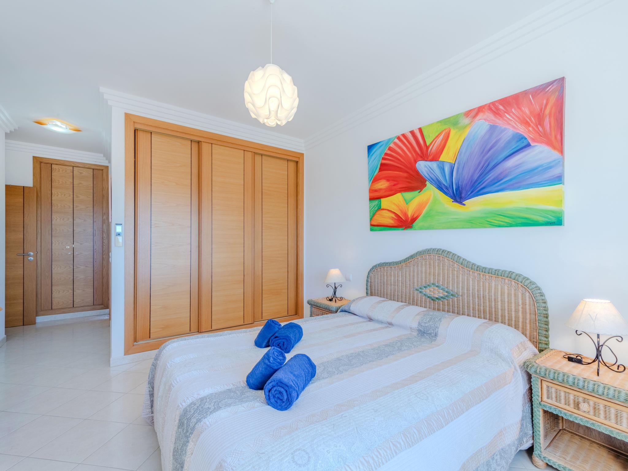 "Mira Praia", 3-room apartment 109 m2 on 1st floor. Very comfortable and cosy furnishings: living/dining room with dining table, TV, flat screen, air conditioning and forced-air heating. Exit to the terrace. 1 room with 1 french bed (140 cm, length 200 cm), bath/bidet/WC. 1 room with 1 french bed (140 cm, length 200 cm). Kitchen (4 hot plates, oven, dishwasher, toaster, kettle, microwave, electric coffee machine) with dining table. Bath/WC. Balcony furniture. View of the ocean and the bay. Facilities: washing machine, iron, children's high chair, baby cot for up to 2 year olds, hair dryer. Internet (WiFi). Suitable for families. 166590/AL