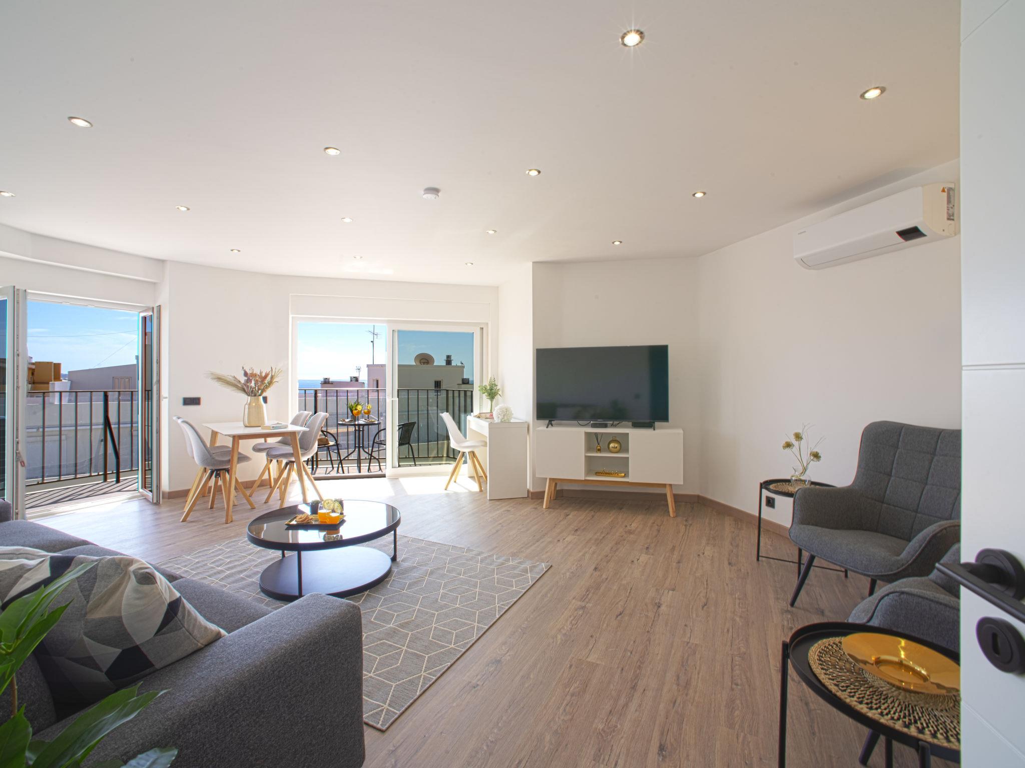 "Lovely Sea View", 2-room apartment 75 m2. Very beautiful and cosy furnishings: living room with 1 sofabed (140 cm, length 190 cm), dining table, TV, international TV channels, flat screen, air conditioning and forced-air heating with 1 french bed (140 cm, length 200 cm), air conditioning and forced-air heating. Small kitchen (oven, 4 ceramic glass hob hotplates, toaster, kettle, microwave). Shower/WC. Balcony furniture. Very beautiful view of the sea and the city. Facilities: washing machine, iron, children's high chair, baby cot for up to 2 year olds, hair dryer. Internet (WiFi, free). Please note: suitable for families. Non-smokers only. 139984/AL