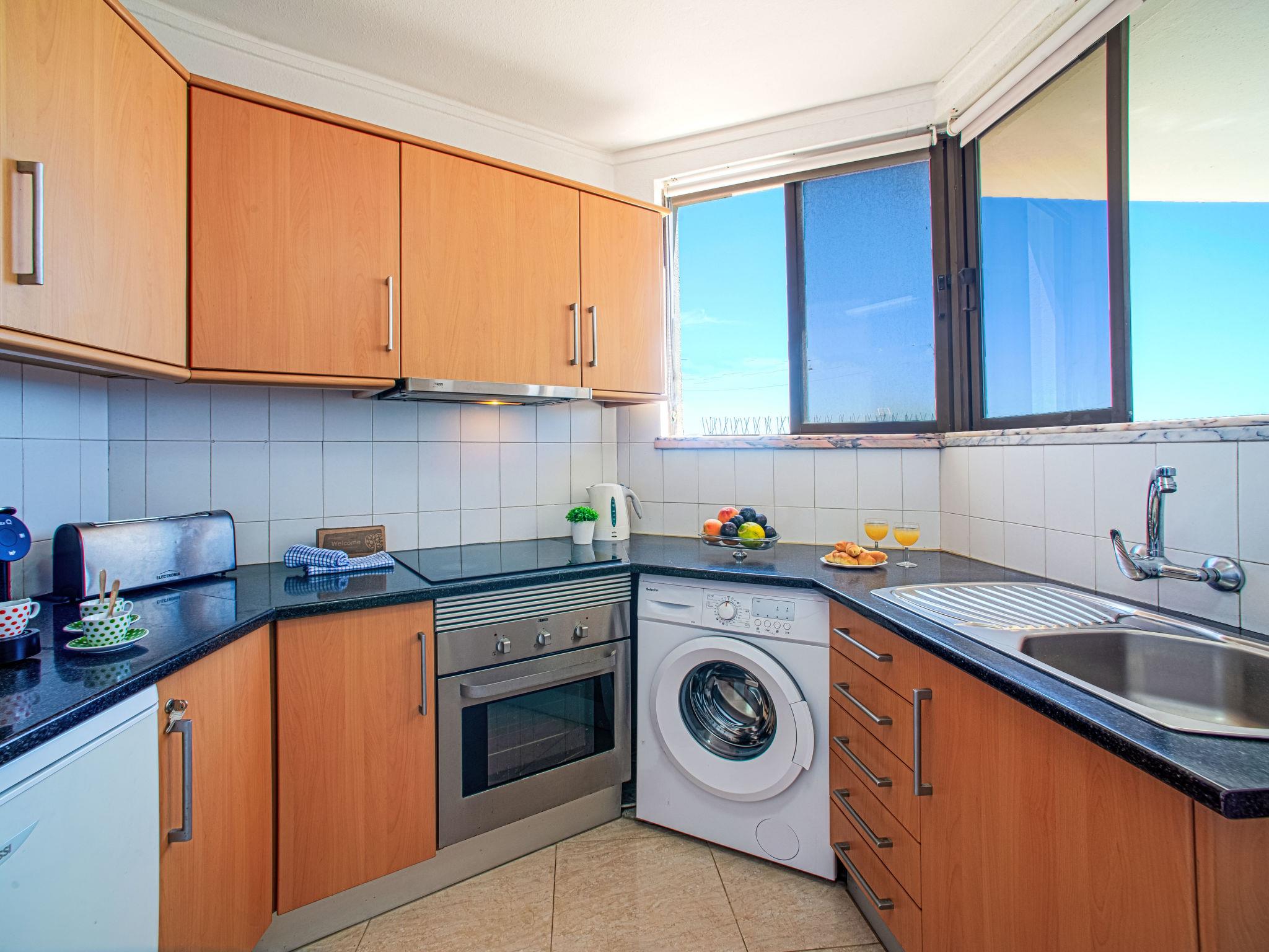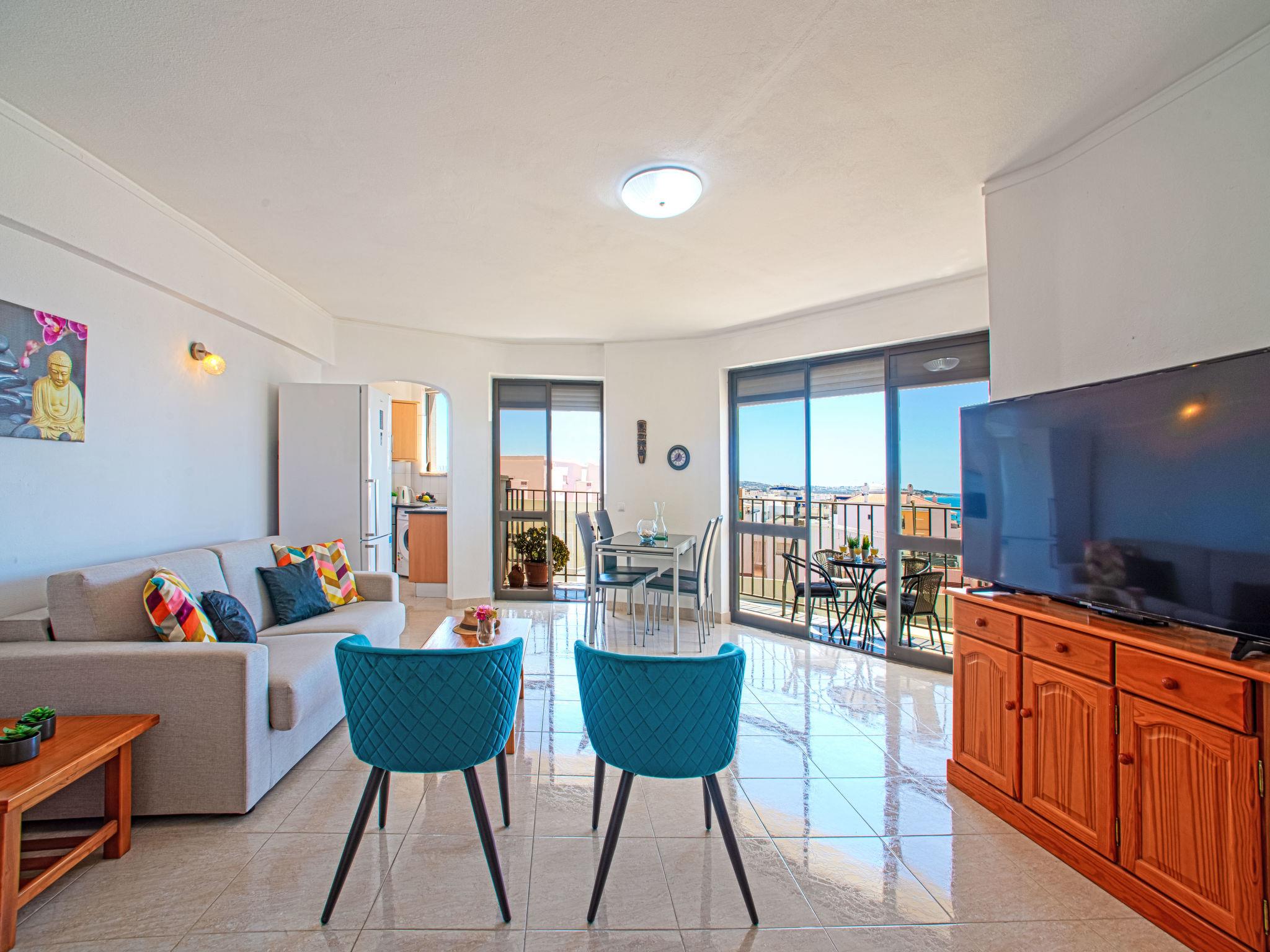 "Fabulous Sea View", 2-room apartment 75 m2. Very simple and cosy furnishings: open living/sleeping room with 1 sofabed (140 cm, length 190 cm), dining table, cable TV and flat screen. Exit to the balcony. 1 room with 1 french bed (140 cm, length 200 cm). Open kitchen (oven, 4 ceramic glass hob hotplates, toaster, kettle, microwave). Shower/WC. Small balcony. Balcony furniture. Side view of the sea, the resort and the city. Facilities: washing machine, iron, children's high chair, baby cot for up to 2 year olds, hair dryer. Internet (WiFi, free). Please note: suitable for families. Non-smokers only. Fire extinguisher. 152095/AL