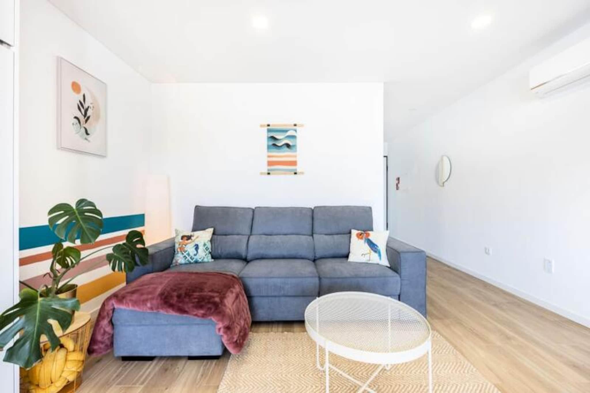 Væk dine sanser i den fredfyldte landsby Burgau, hvor den gyldne Algarve-kystlinje møder Atlanterhavets azurblå bølger. Denne moderne, solrige lejlighed er en oase af komfort og stil, der tilbyder et roligt tilflugtssted kun få skridt fra stranden. Uanset om du søger en romantisk ferie eller en familieferie, inviterer denne ejendom dig til at fordybe dig i charmen ved Portugals sydkyst. Træd indenfor og oplev et gennemtænkt designet rum, der blander moderne elegance med hyggelige detaljer. Det luksuriøse soveværelse har udsigt over de bølgende Burgau-bakker, mens det rummelige badeværelse har et dobbelt håndvask, et stort brusebad og et bidet for ultimativ bekvemmelighed. Den åbne stue og spisestue er badet i naturligt lys, komplet med en blød L-formet sovesofa, mørklægningsgardiner og et fuldt udstyret køkken. Nyd en afslappet morgenmad ved spisebordet eller slap af på balkonen, hvor hængestole tilbyder et perfekt sted at slappe af med et glimt af havet. Ud over lejligheden venter Burgaus herligheder. Kun 200 meter fra stranden kan du tilbringe dine dage med at svømme, surfe eller paddleboarde i de blide bølger. Landsbyen er fyldt med karakter og tilbyder et udvalg af restauranter og barer, der serverer alt fra traditionelle portugisiske retter til internationale retter. Udforsk de nærliggende Luz og Lagos, eller tag til surfstrandene, der ligger kun en kort køretur væk. Uanset om du nipper til en cocktail i strandbaren, slentrer gennem de charmerende gader eller blot nyder den fredelige atmosfære i dit private tilflugtssted, er denne lejlighed din indgang til en uforglemmelig Algarve-oplevelse. Med privat parkering, aircondition og et dedikeret ledelsesteam, der sikrer, at dit ophold er problemfrit, er alt, hvad der er tilbage, at du ankommer og skaber varige minder.