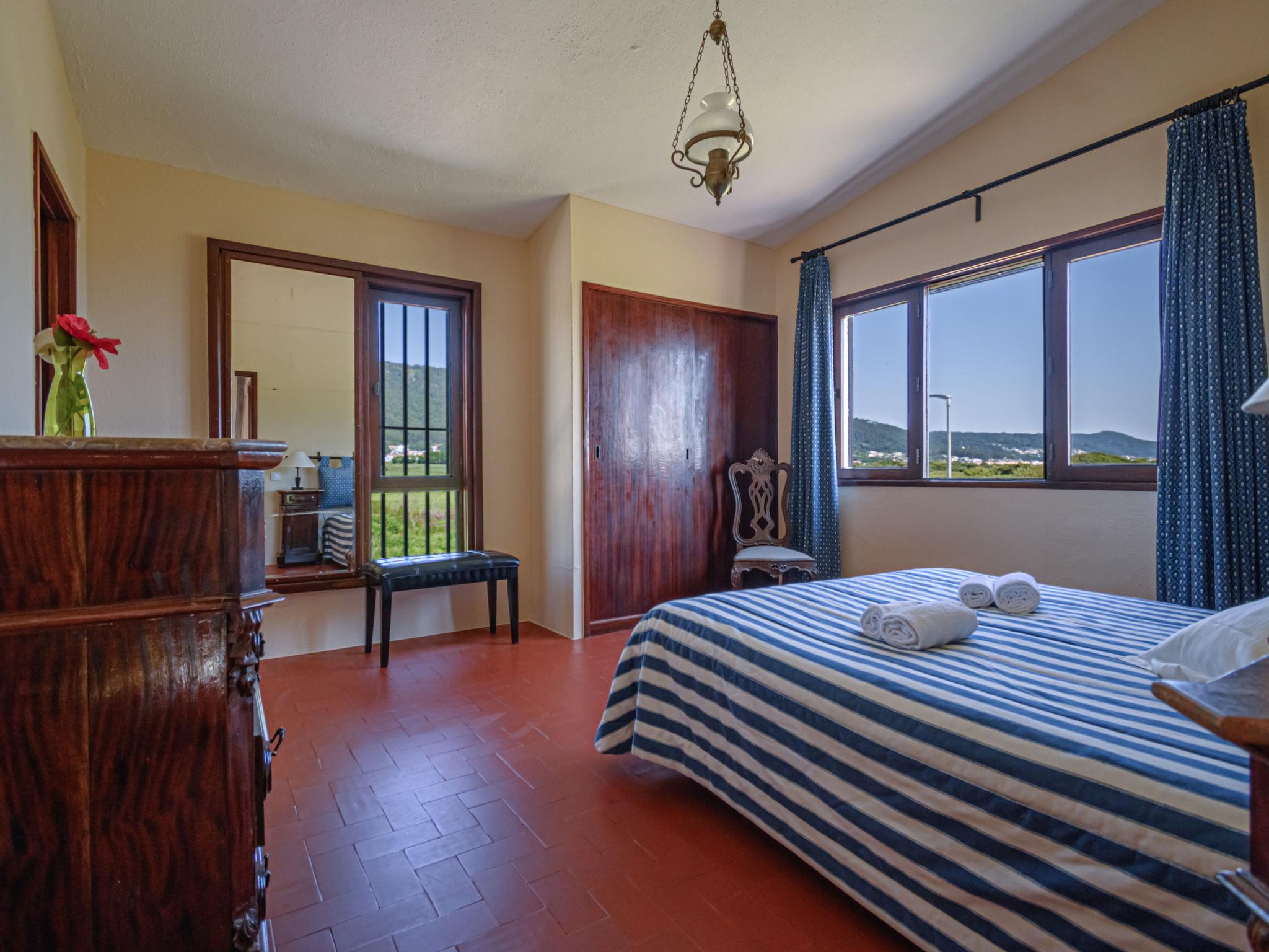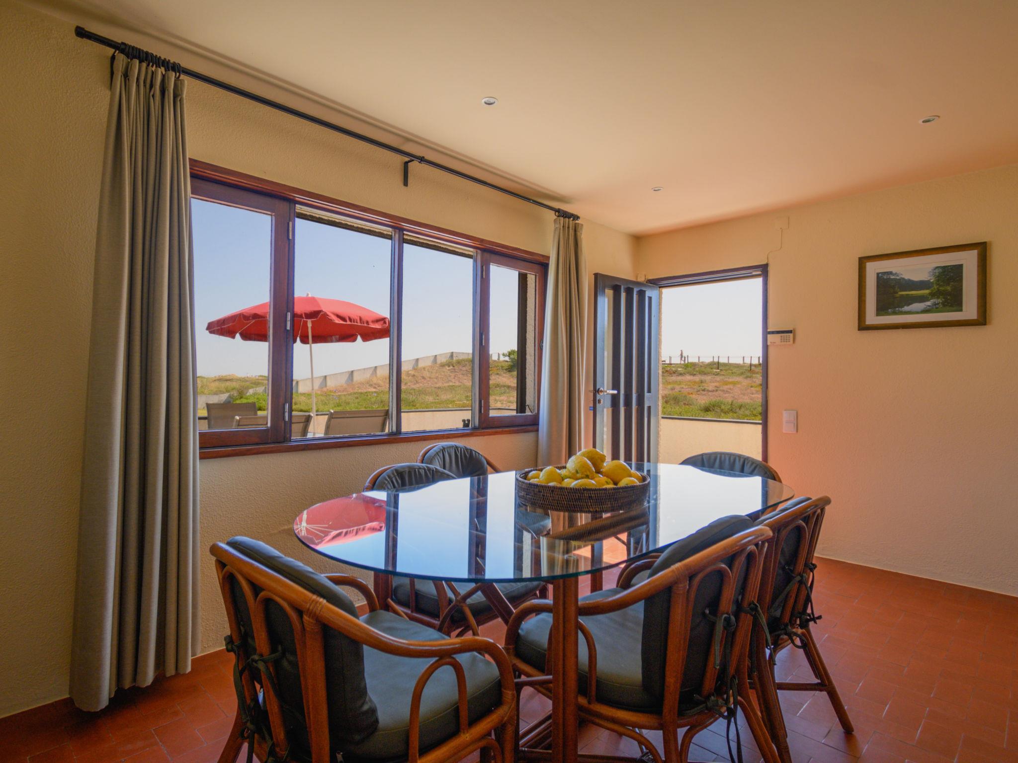 "De Carreço", 7-room house 190 m2 on 2 levels. Bright, practical furnishings: living/dining room with open-hearth fireplace, dining table and satellite TV. 1 room with 1 bed and shower/WC. 1 room with 1 french bed (165 cm). Dining room with dining table. Exit to the terrace. Kitchen (4 hot plates, oven, dishwasher, toaster, microwave, freezer, electric coffee machine). Exit to the garden. Upper floor: 1 room with 1 french bed (160 cm), bath/WC. 2 rooms, each room with 2 beds (95 cm). Bath/WC. Balcony, 2 terraces. Terrace furniture, deck chairs (4). View of the sea. Facilities: washing machine, children's high chair, baby cot. Internet (WiFi, extra). 145464/AL