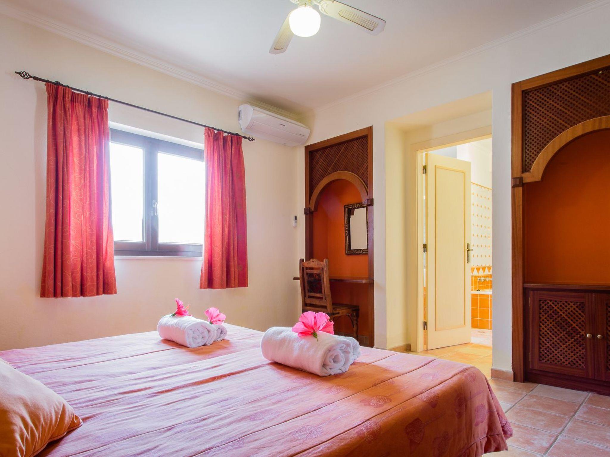 Impressive Moorish-style villa near the beach, with pool and tennis court The Moroccan-style villa is located in a residential area on a large private plot (with two other villas). The villa can accommodate 16 people (including the studio), and the nearest shops and restaurants can be reached within 5 car minutes. The nearest beach is Praia Centianes is 500 m. Three golf courses within 10 car minutes. Faro Airport approx 45 car minutes.