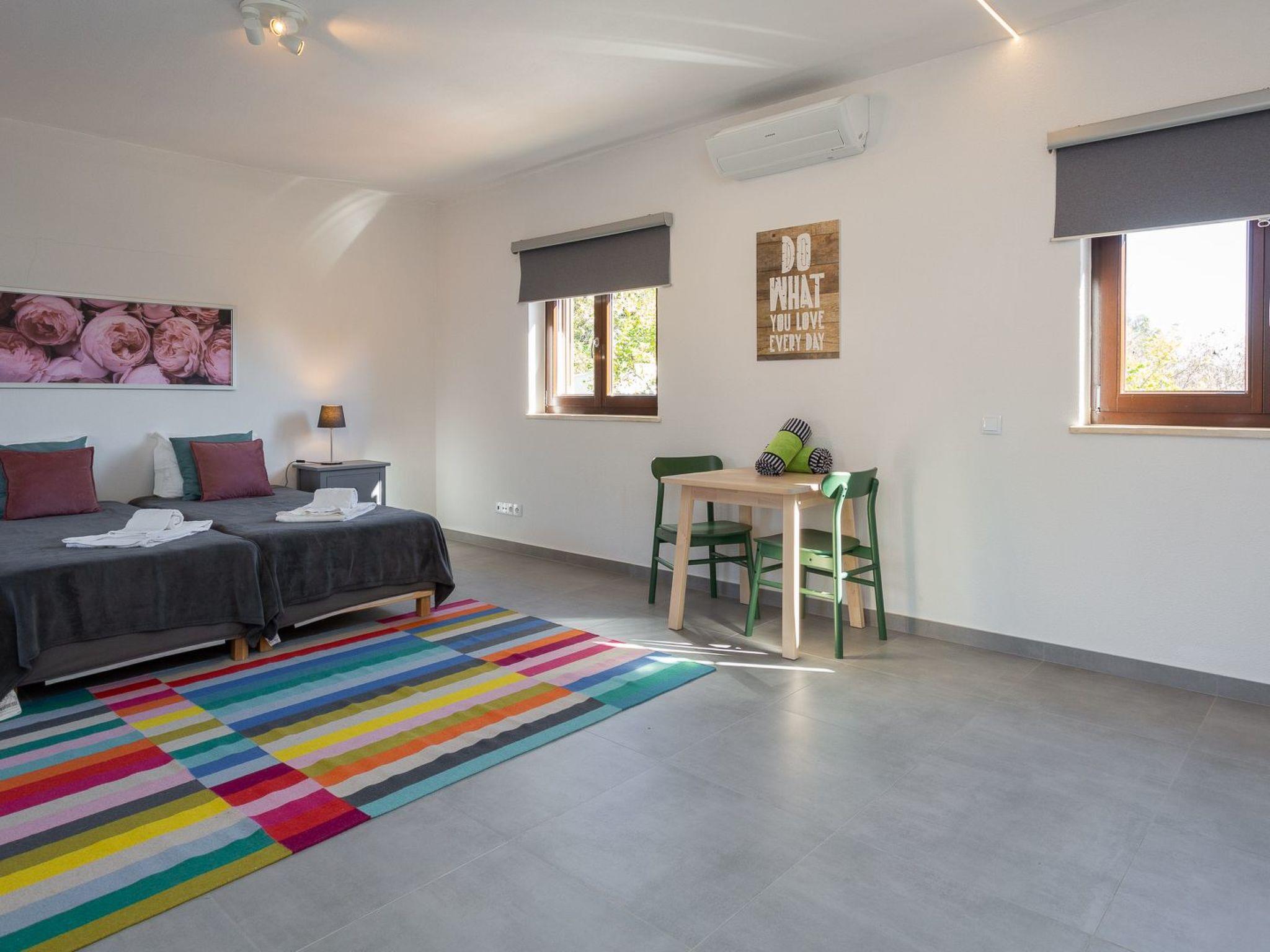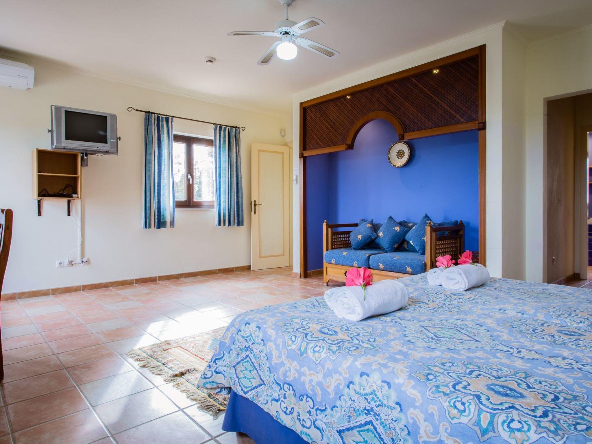 The villa has seven (double) bedrooms with en-suite bathrooms. Four bedrooms are on the ground floor and three bedrooms on the first floor. All bedrooms have air conditioning and ceiling fans. The master bedroom downstairs (upstairs is a second one) has French doors to the terrace and swimming pool In the studio (approx. 25 m2) is the eighth (double) bedroom with bathroom (incl. shower and toilet), kitchen and sitting/bedroom.