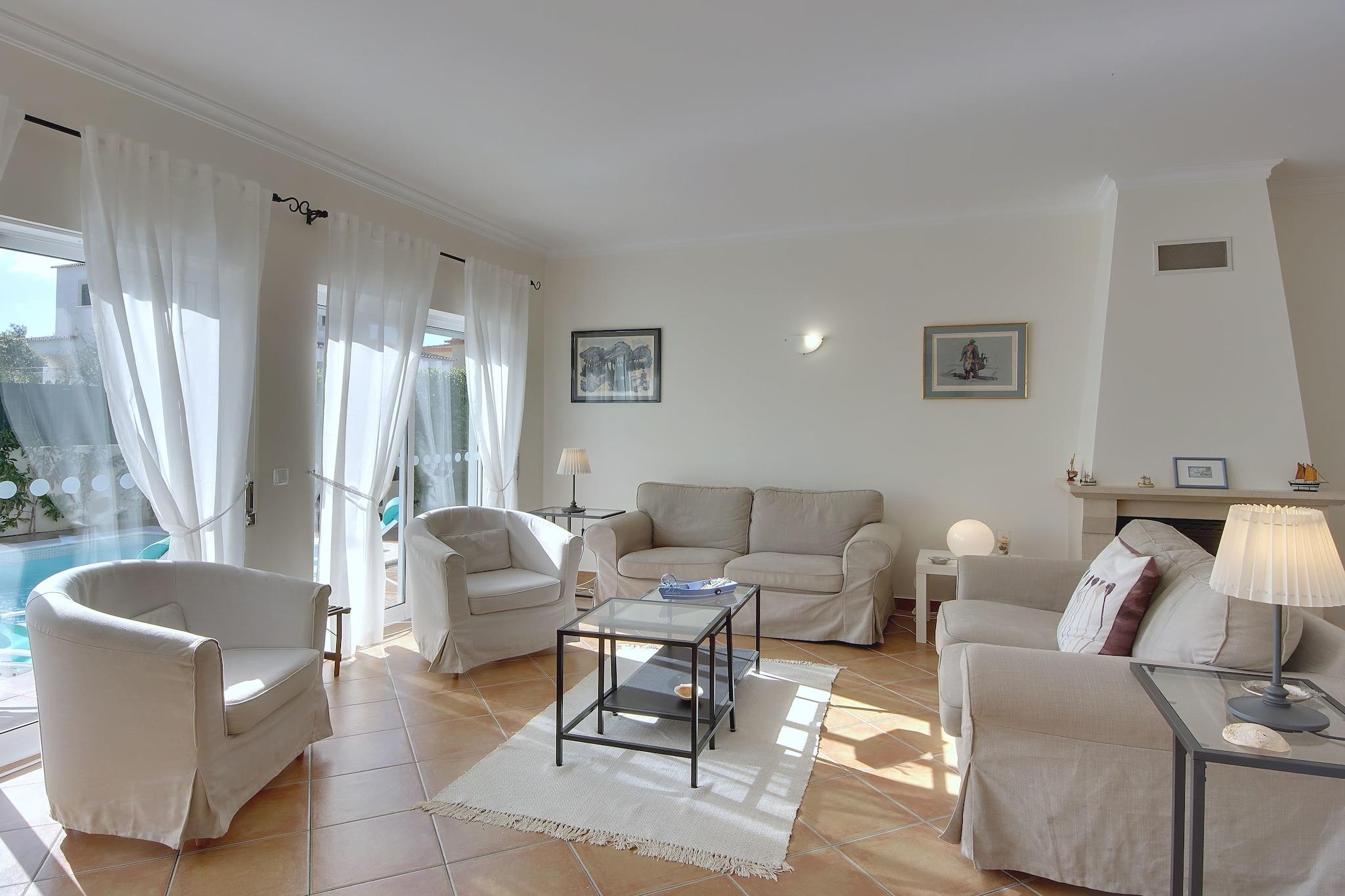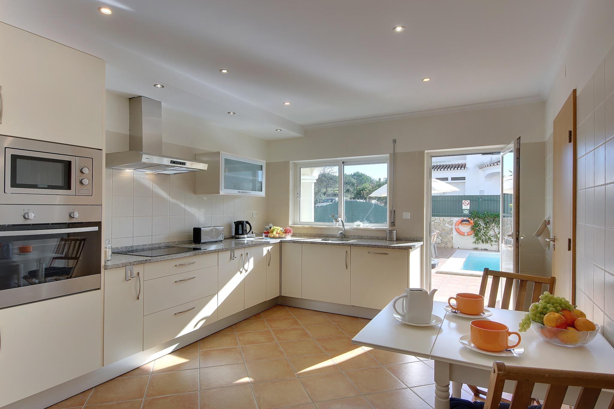 Denne moderne og velholdte villa har en ideel beliggenhed kun 2 km fra den hyggelige by Carvoeiro. Denne vidunderlige, lyse villa er meget komfortabel og har 3 soveværelser og 3 badeværelser. Stuen har terrassedøre, der åbner ud mod solterrassen ved den private swimmingpool (7 x 4 m). Gør dig komfortabel på liggestolene! Denne villa ligger i et roligt beboelsesområde i udkanten af landsbyen, og der er et par faciliteter inden for gåafstand. Byens centrum af Carvoeiro ligger lidt længere væk, og det er her, hvor du kan finde en bred vifte af butikker, restauranter, barer og udendørs caféer. Carvoeiros strand ligger i en beskyttet bugt med høje klipper, som er populære steder at tage et billede. Og med sine mange fantastiske bugter, er der mange flere maleriske steder at finde langs Algarve kystlinjen! Tænk for eksempel på Benagil, Da Marina, Carvalho ... Gå en lille køretur, og du vil finde nogle fantastiske steder.